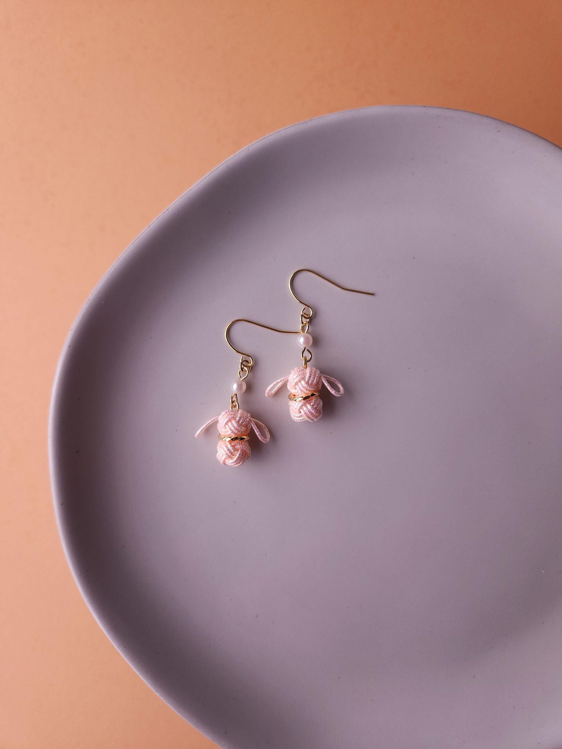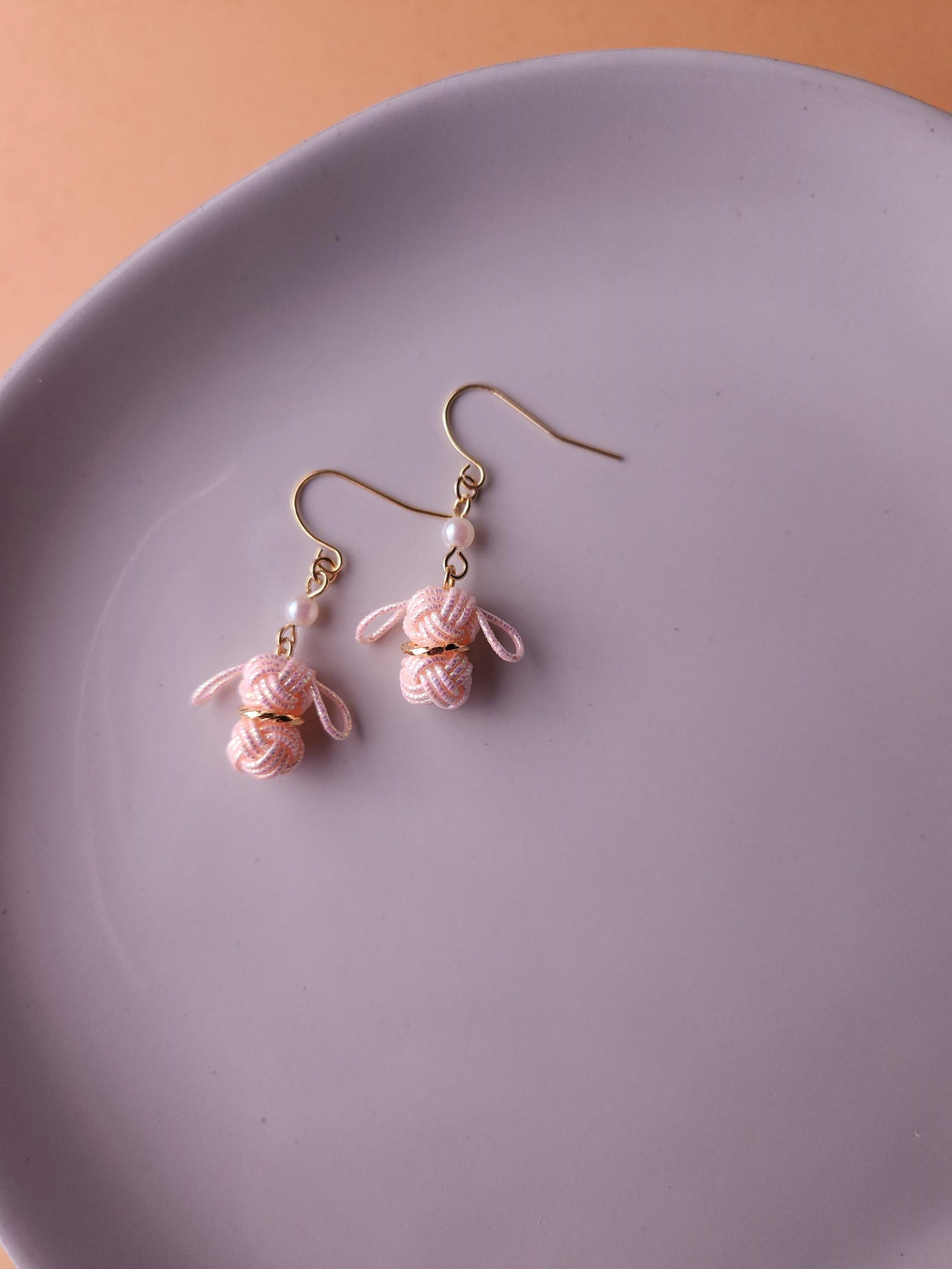 Dreamy Cute bunny inspired earrings handwoven with traditional Japanese Mizuhiki Paper cord. Floppy ear design create an irresistibly sweet silhouette.