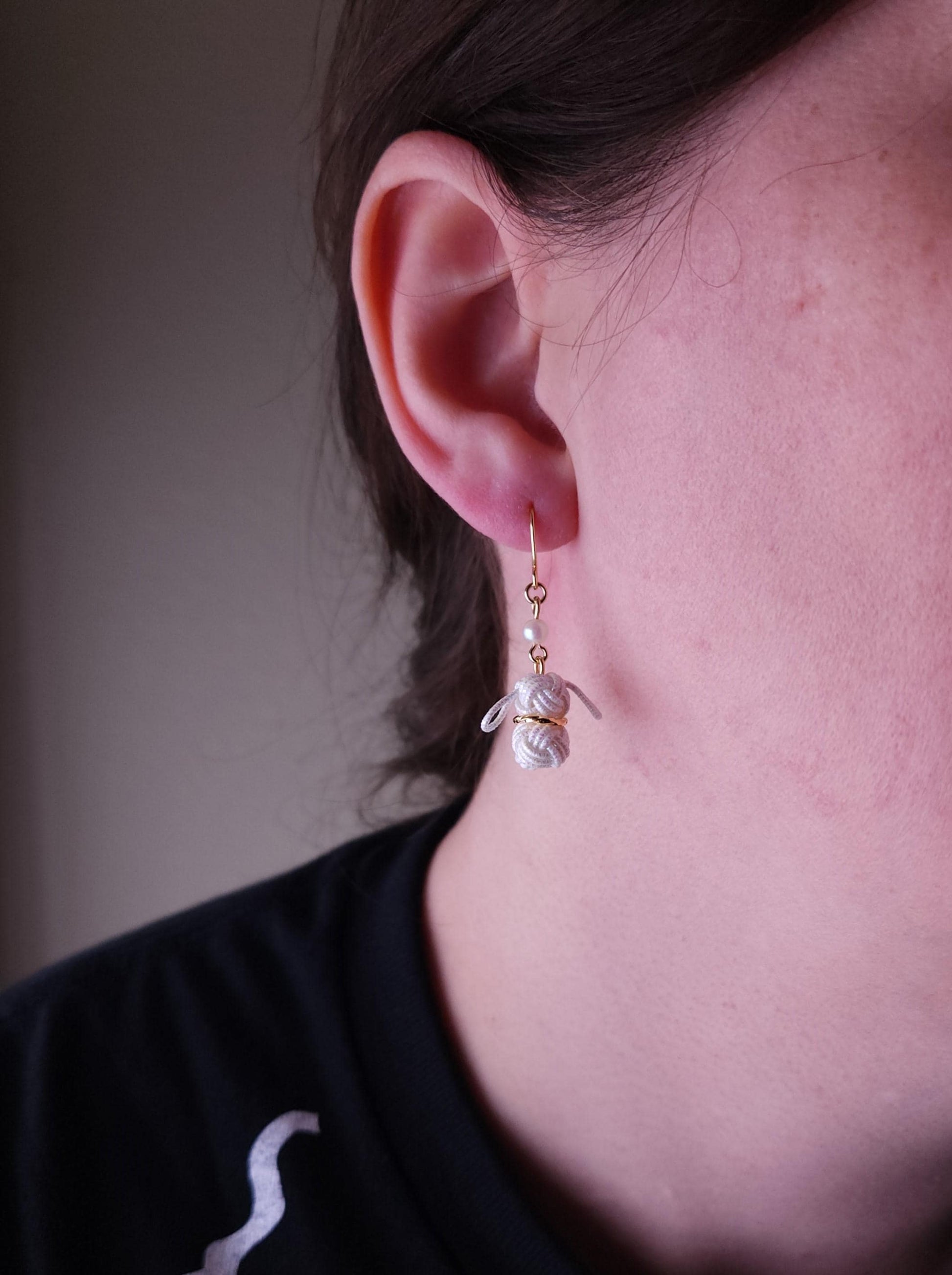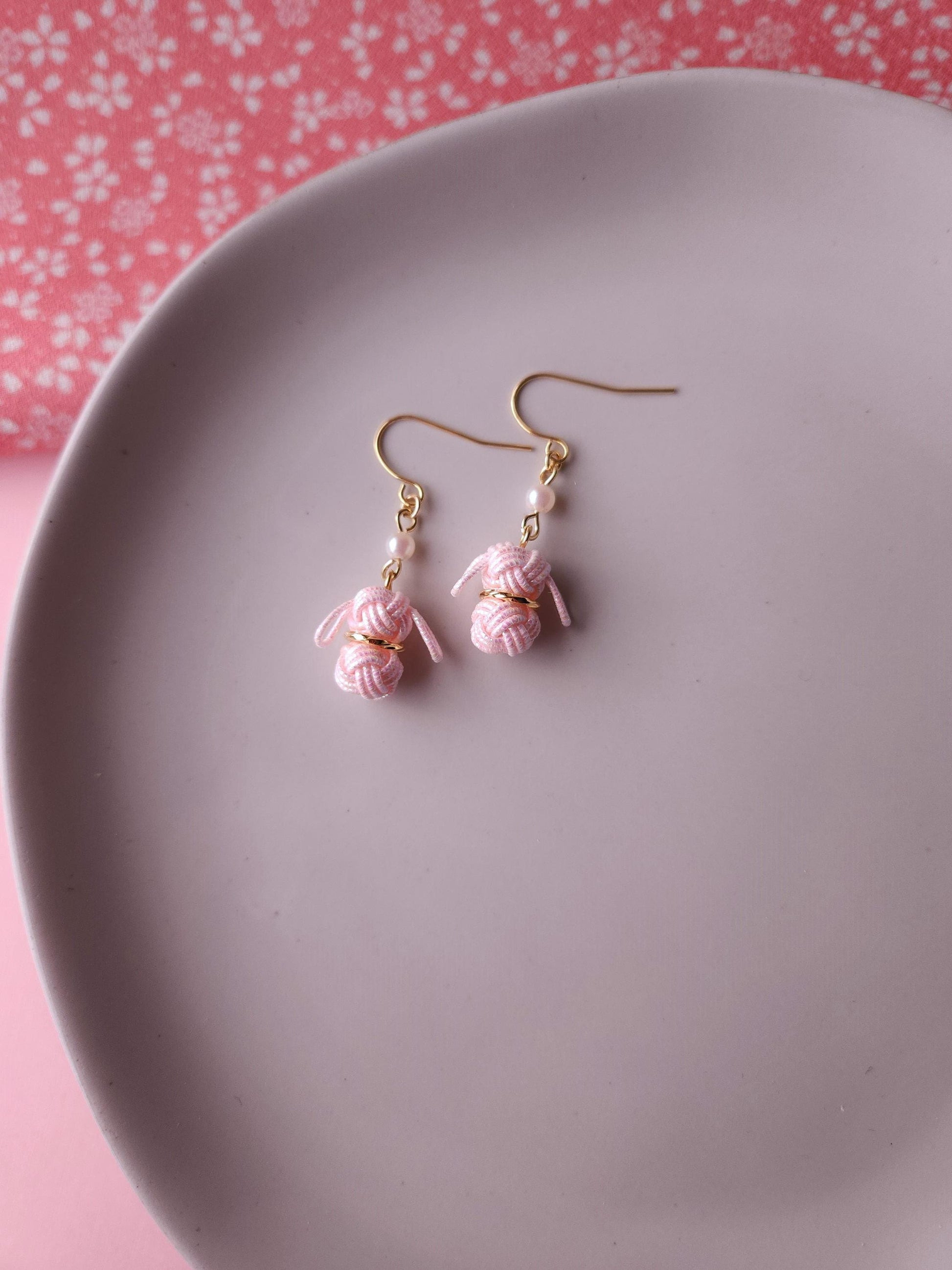 Dreamy Cute bunny inspired earrings handwoven with traditional Japanese Mizuhiki Paper cord. Floppy ear design create an irresistibly sweet silhouette.