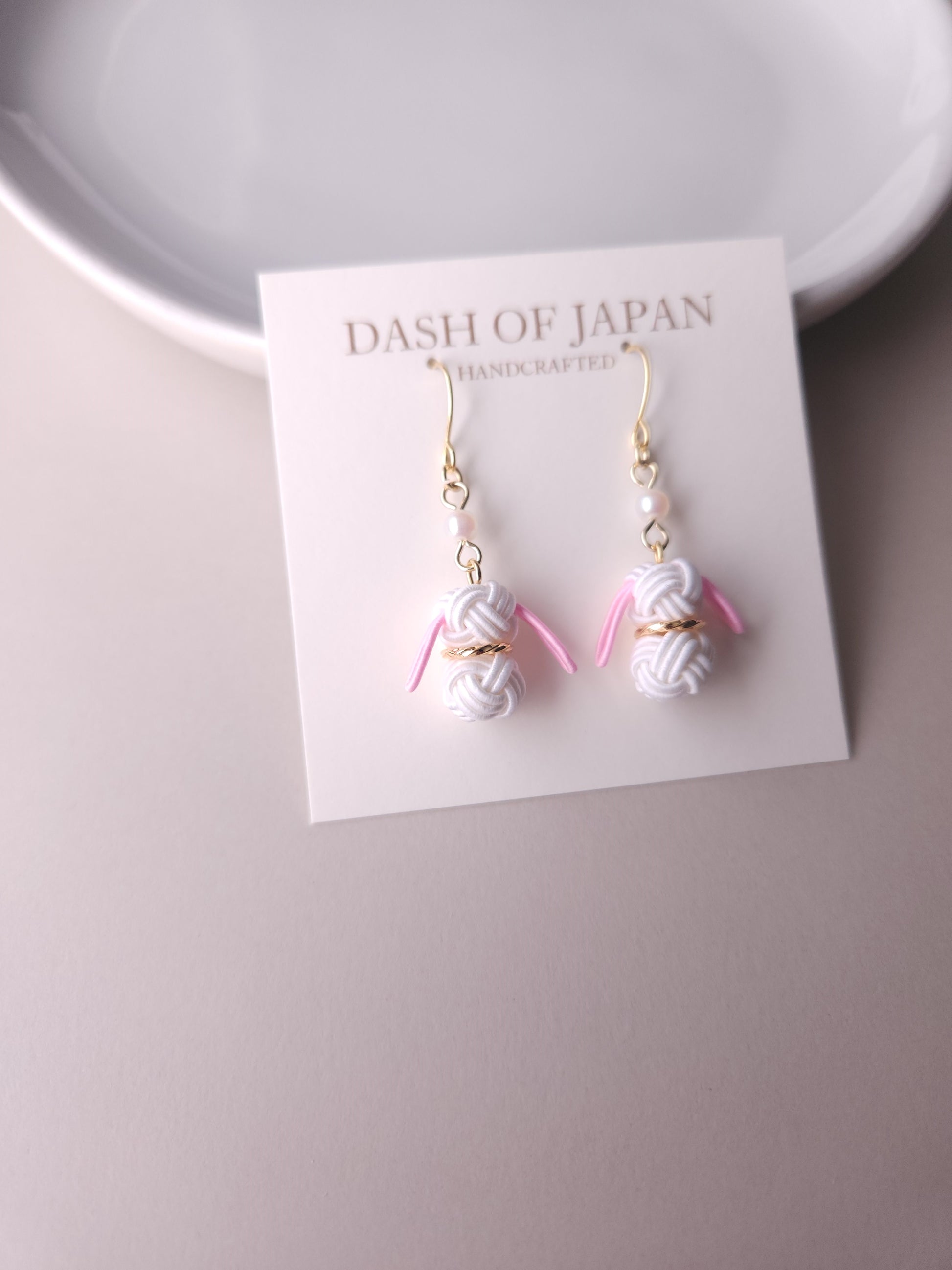 Dreamy Cute bunny inspired earrings handwoven with traditional Japanese Mizuhiki Paper cord. Floppy ear design create an irresistibly sweet silhouette.