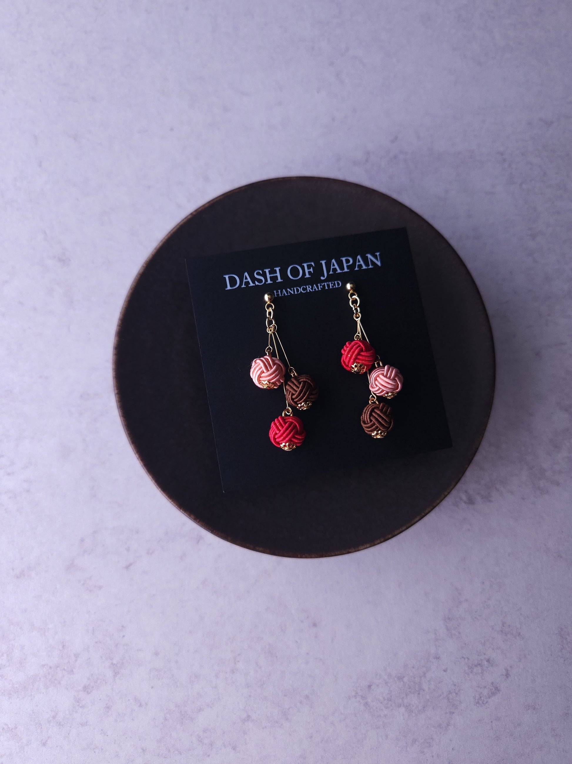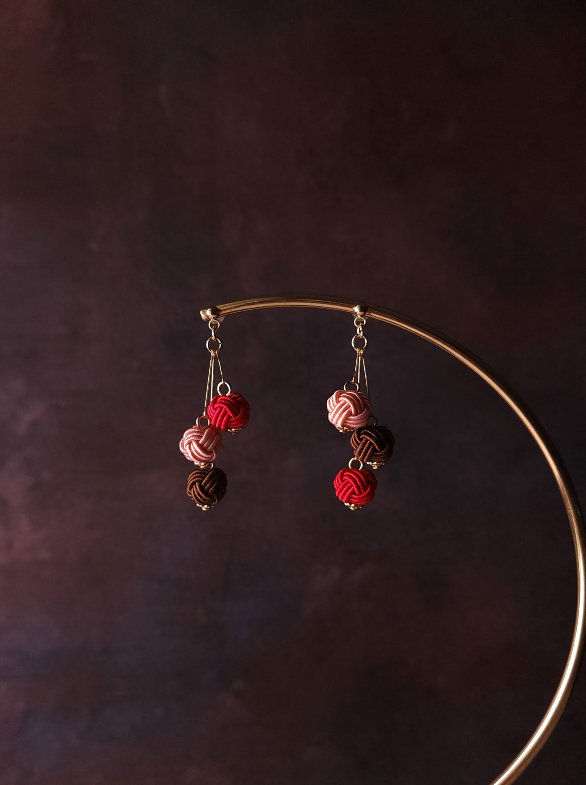 Each ball knots are meticulously handwoven with Mizuhiki, connected with wire, resembling sweet candies. The colors are also matched in soft and pop hues reminiscent of candies.
