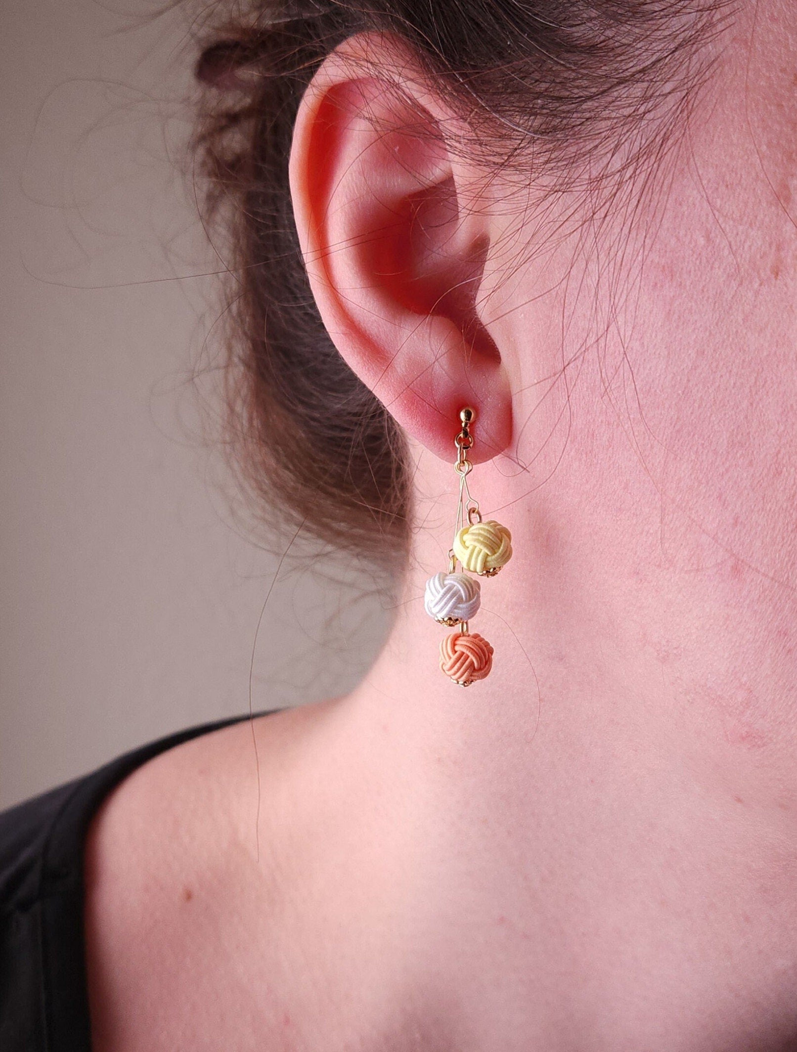 These earrings are handcrafted with traditional Japanese paper cord called Mizuhiki.