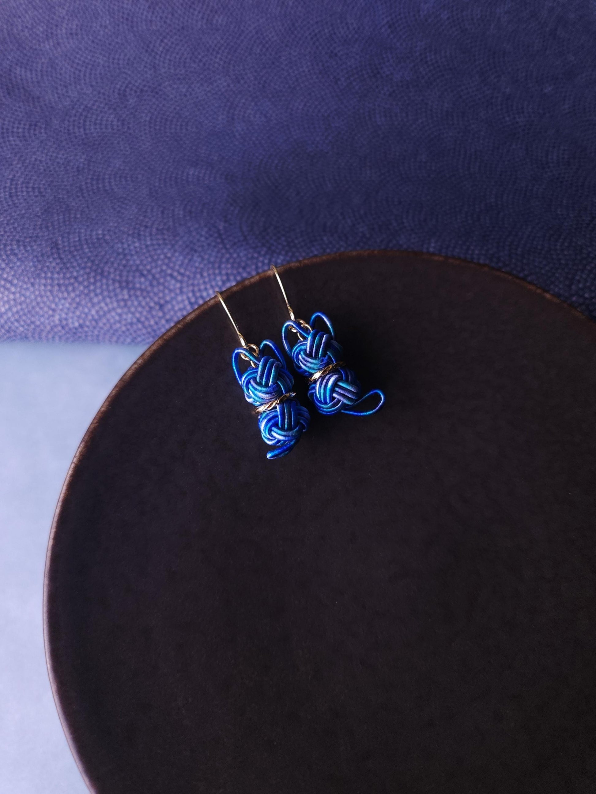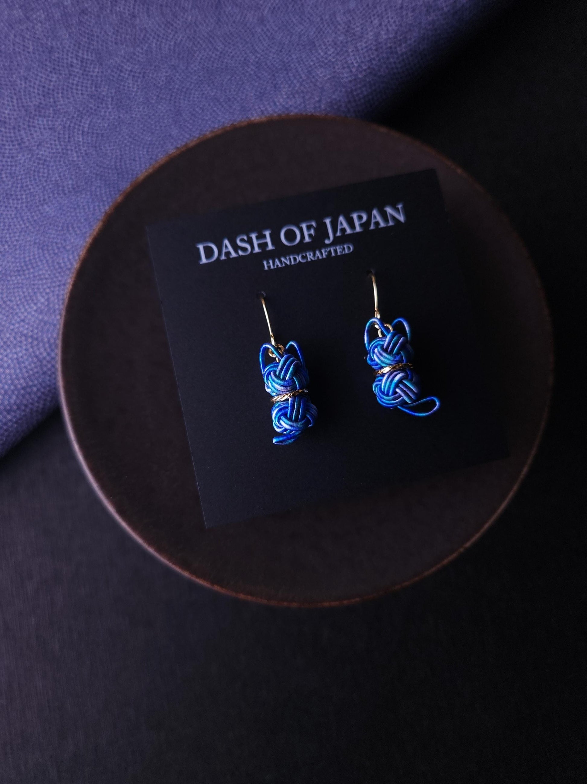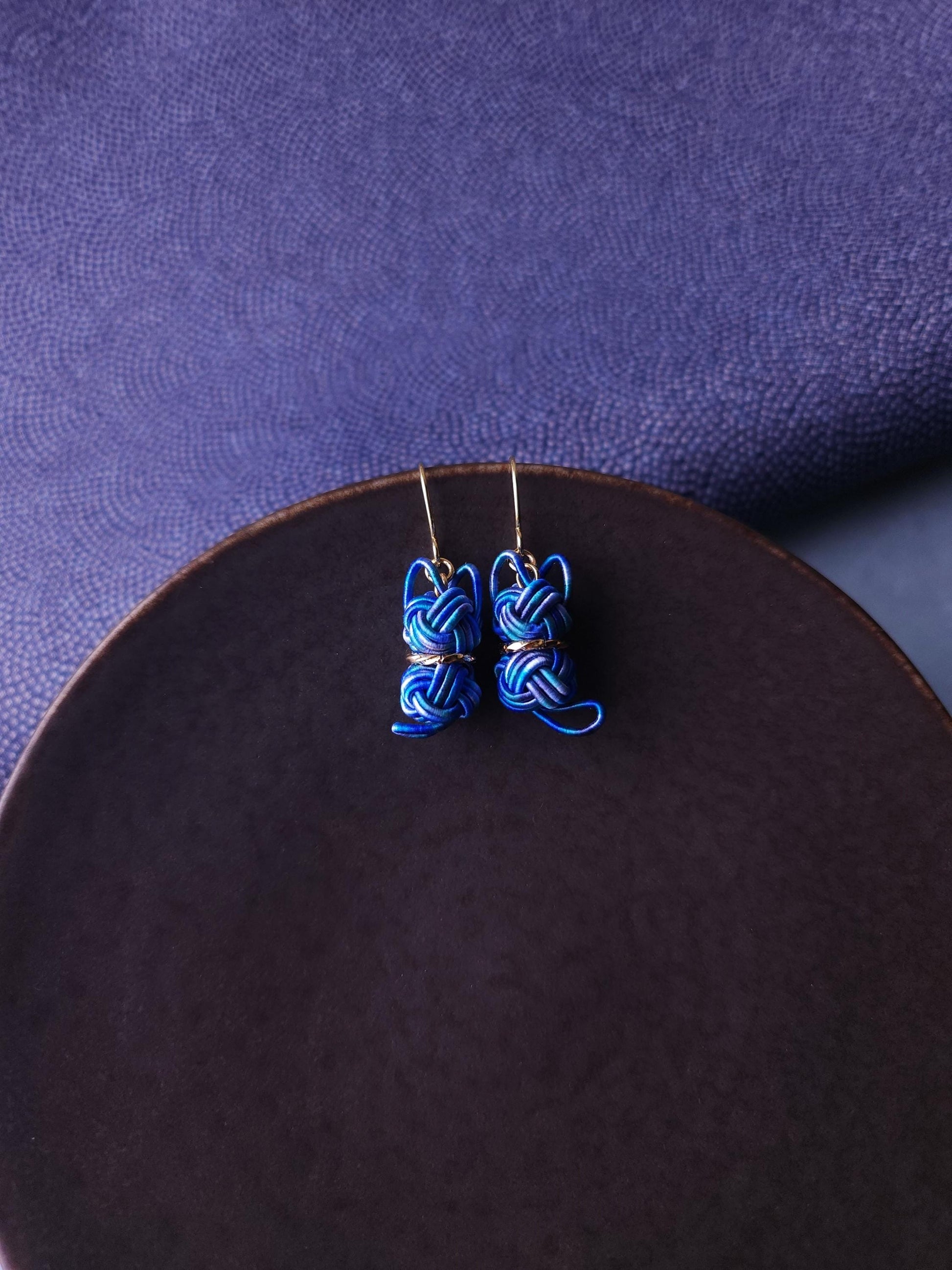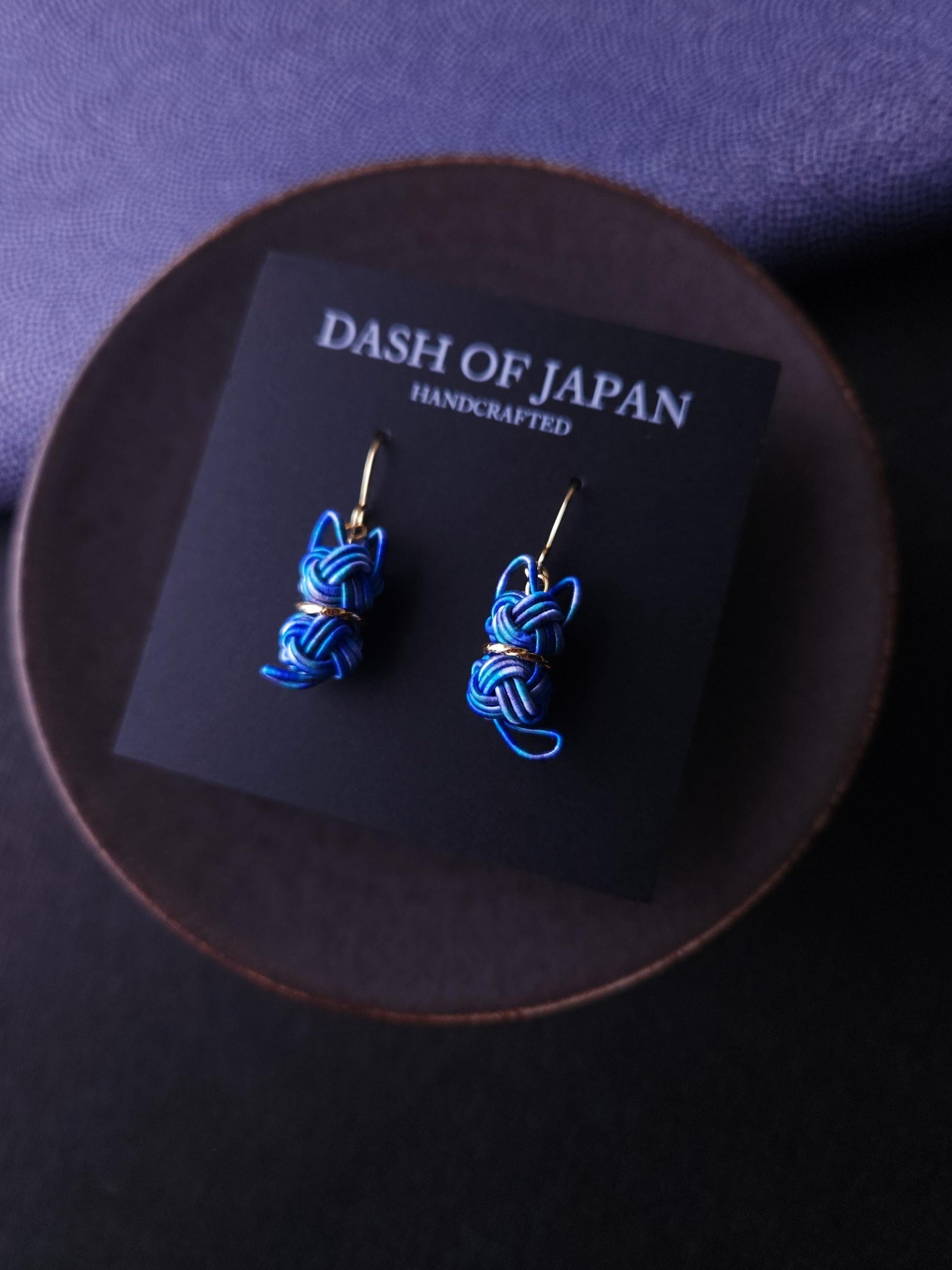 Charming Cat earrings made with Japanese Mizuhiki paper cord. Each delicate feline silhouette is expertly formed using the ancient art of Japanese Mizuhiki paper cord.