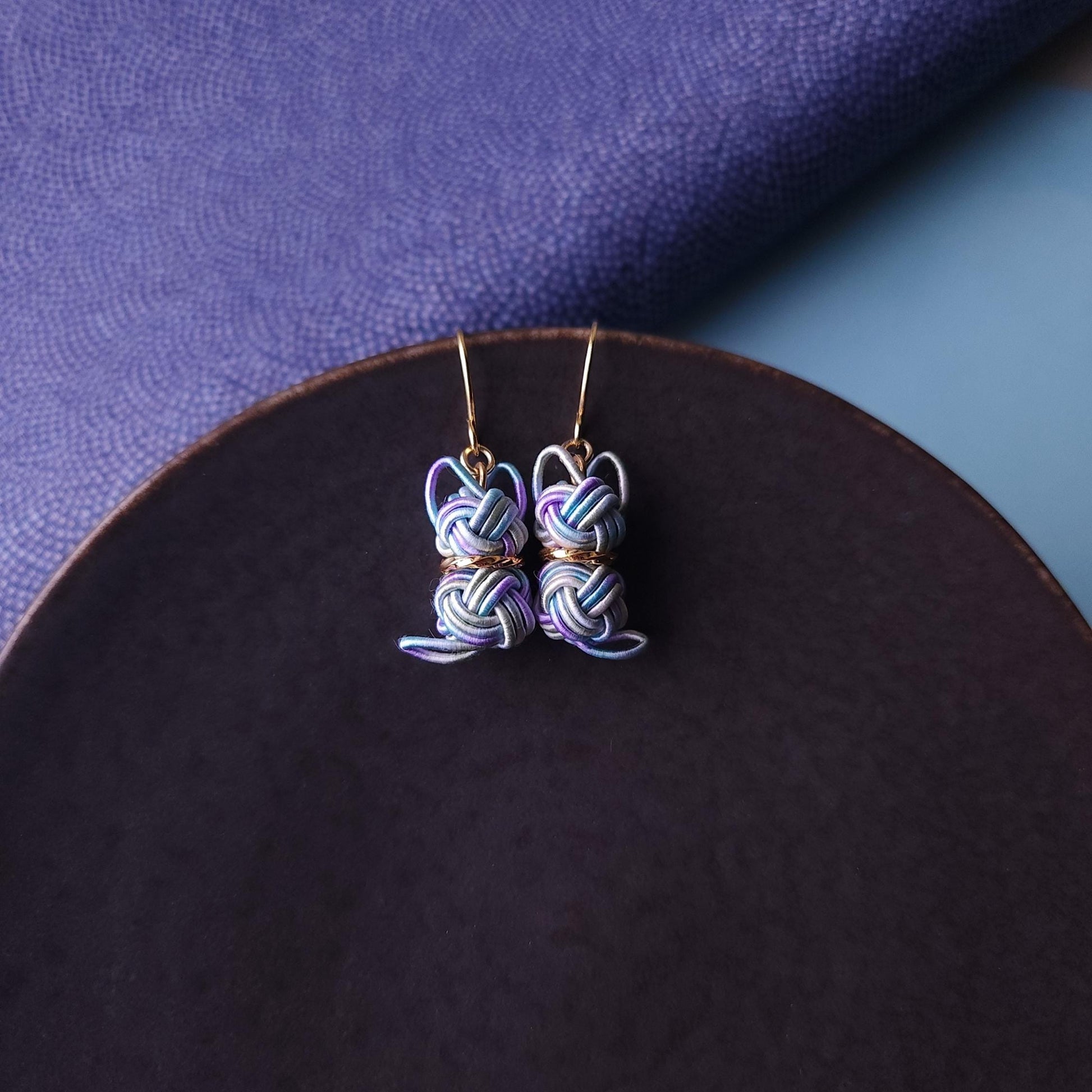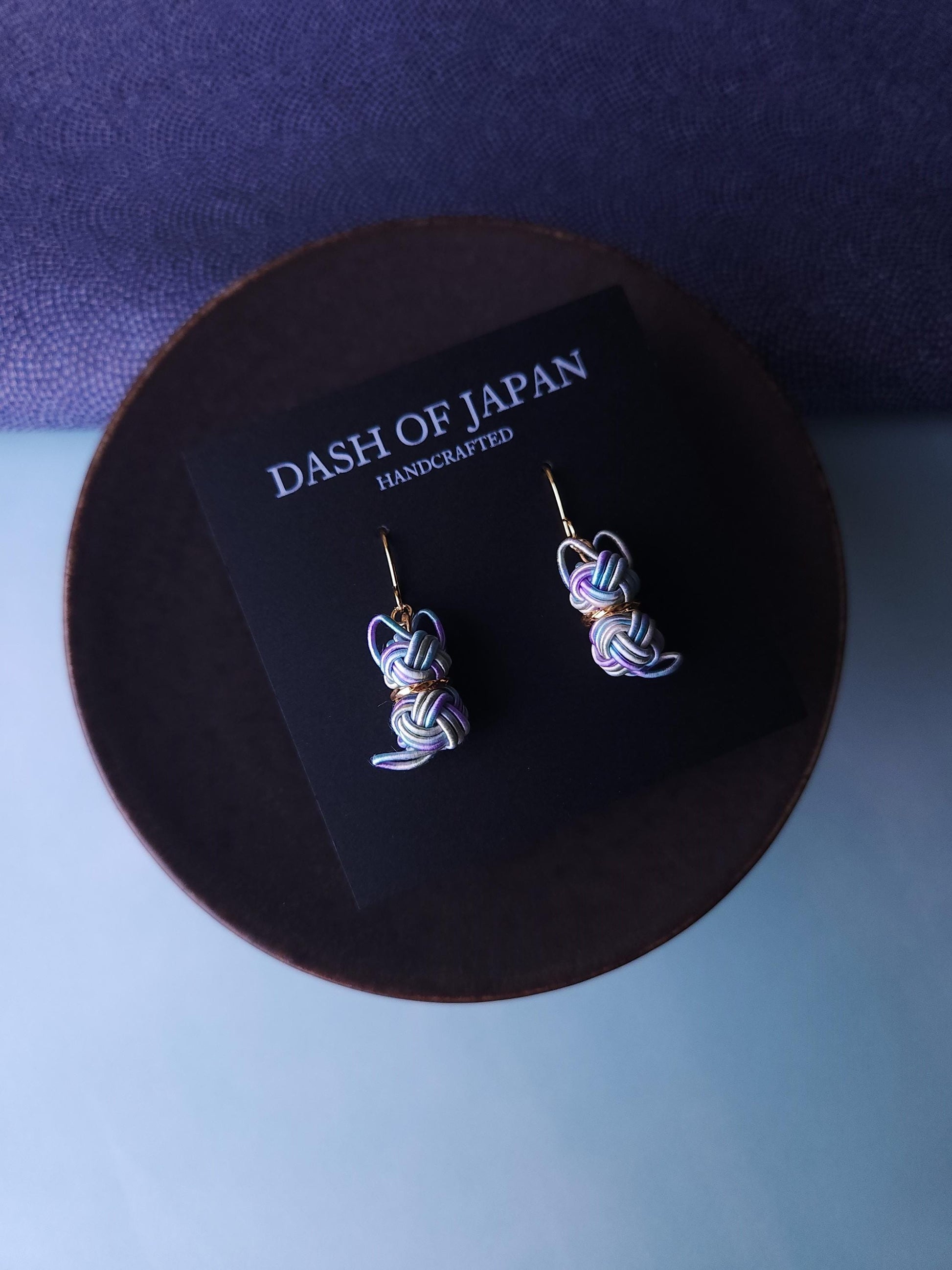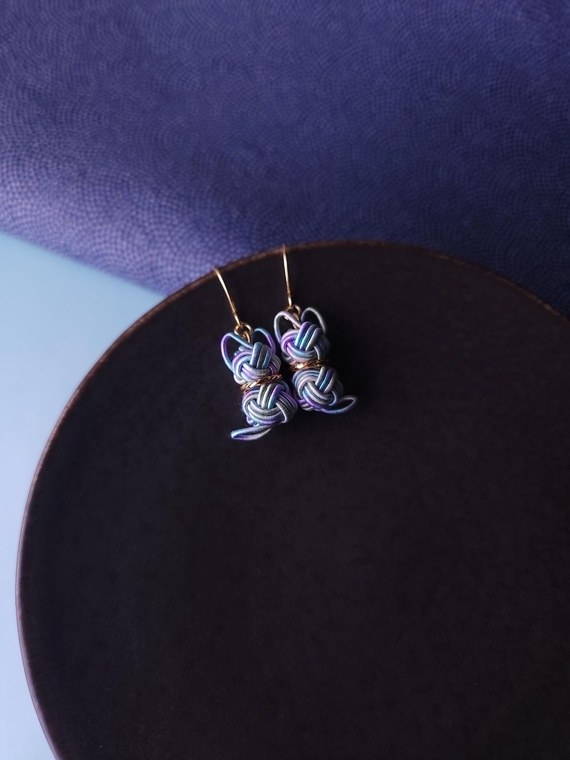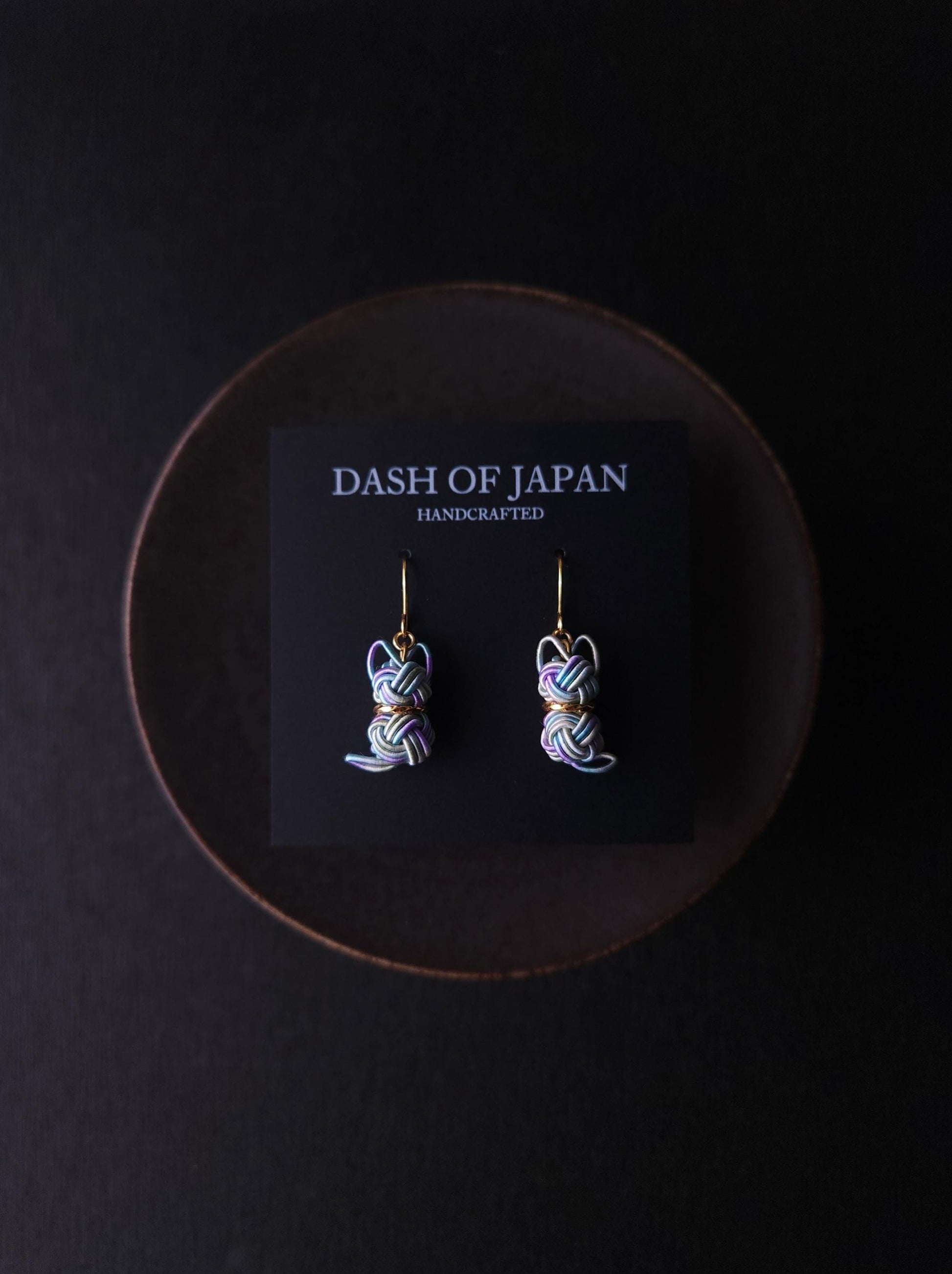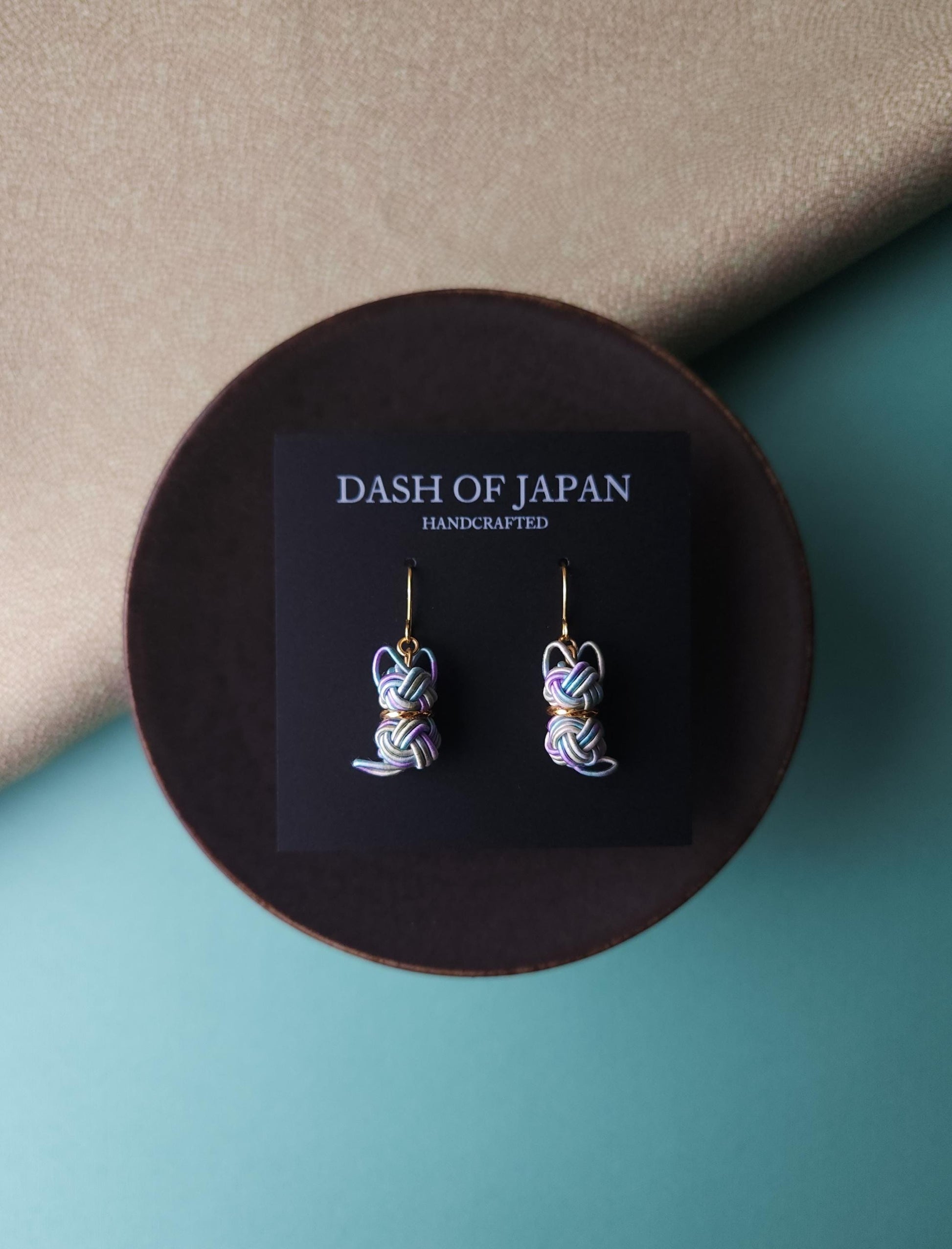Charming Cat earrings made with Japanese Mizuhiki paper cord. Each delicate feline silhouette is expertly formed using the ancient art of Japanese Mizuhiki paper cord.