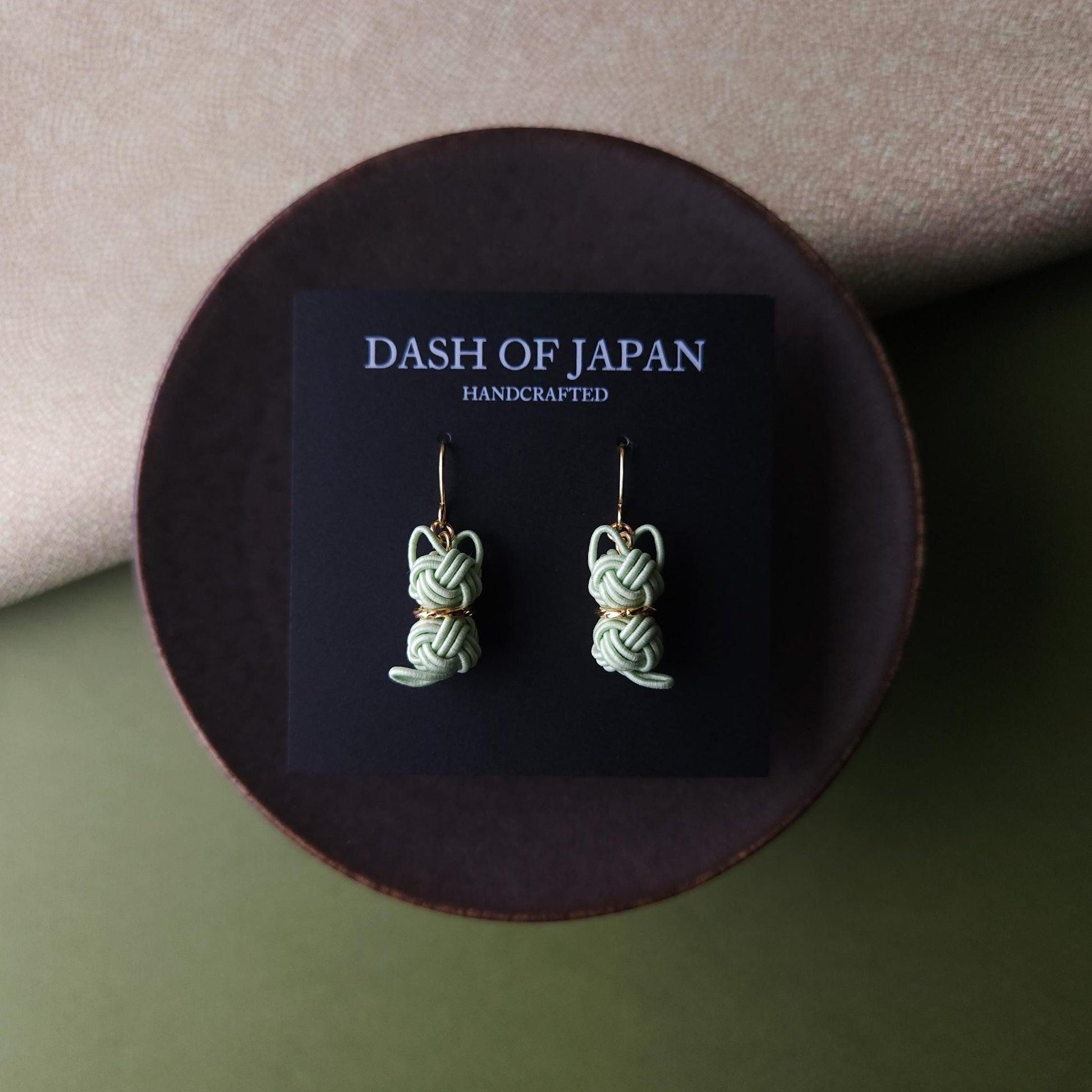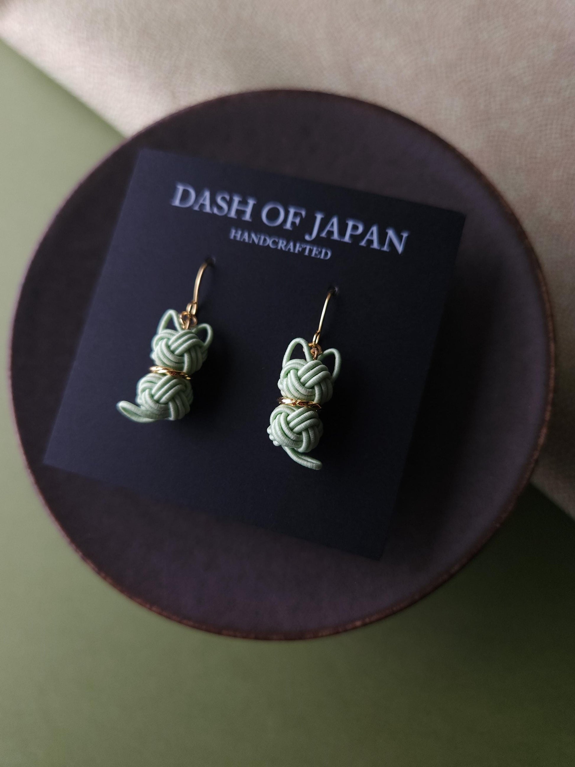 Charming Cat earrings made with Japanese Mizuhiki paper cord. Each delicate feline silhouette is expertly formed using the ancient art of Japanese Mizuhiki paper cord.