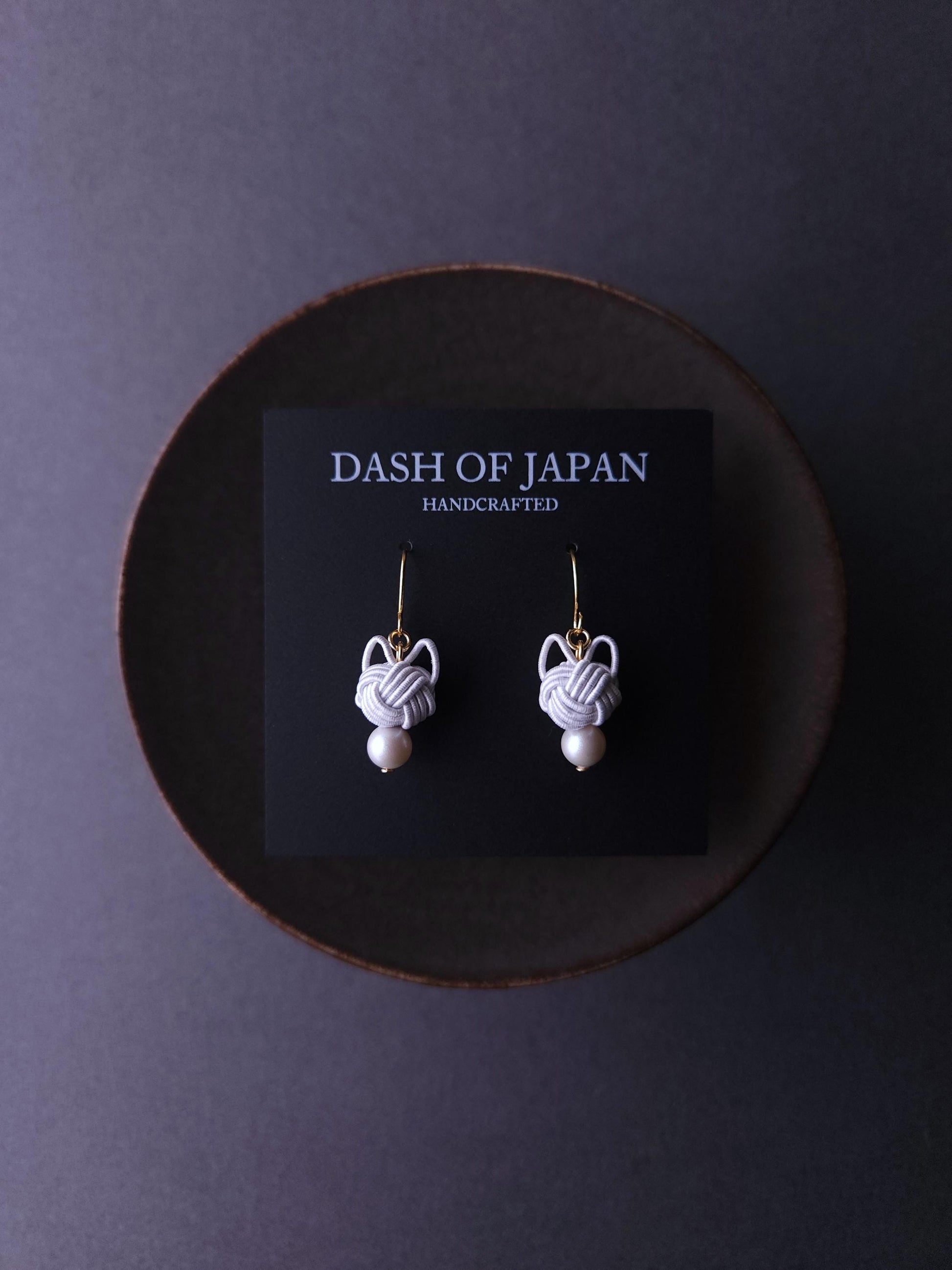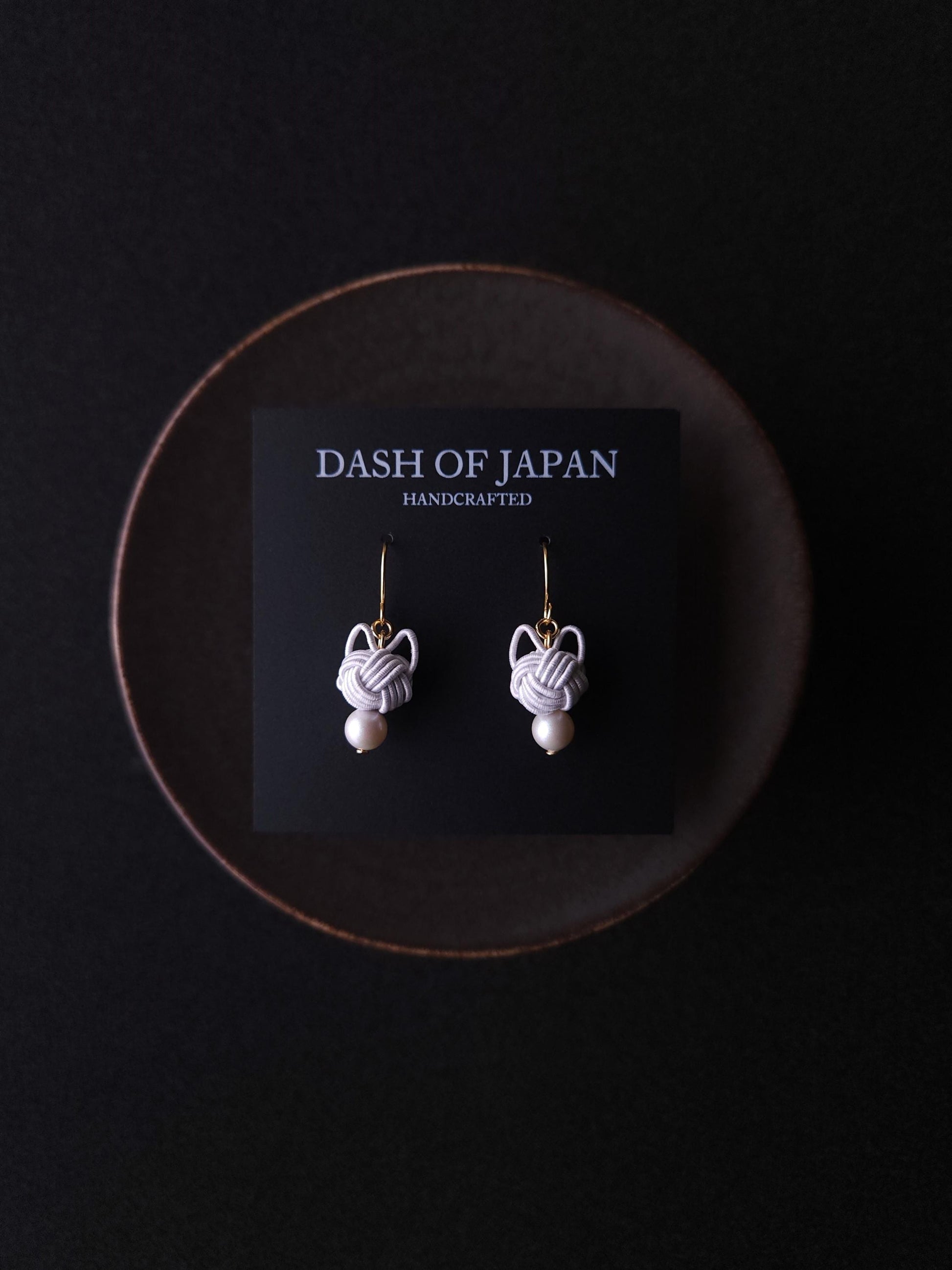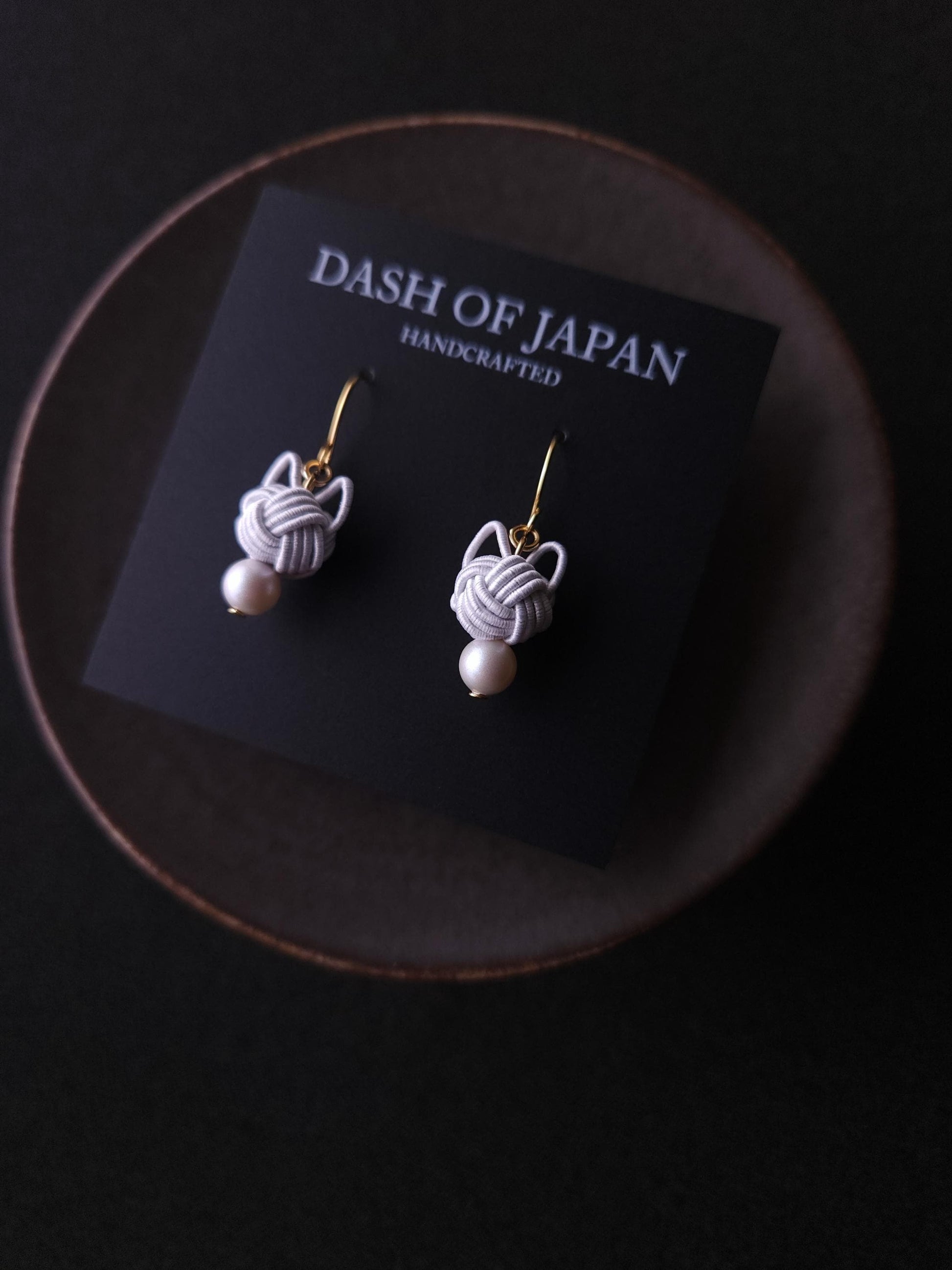 Cute cat earrings crafted with traditional Japanese Mizuhiki. A lightweight design for everyday wear or special occasions.