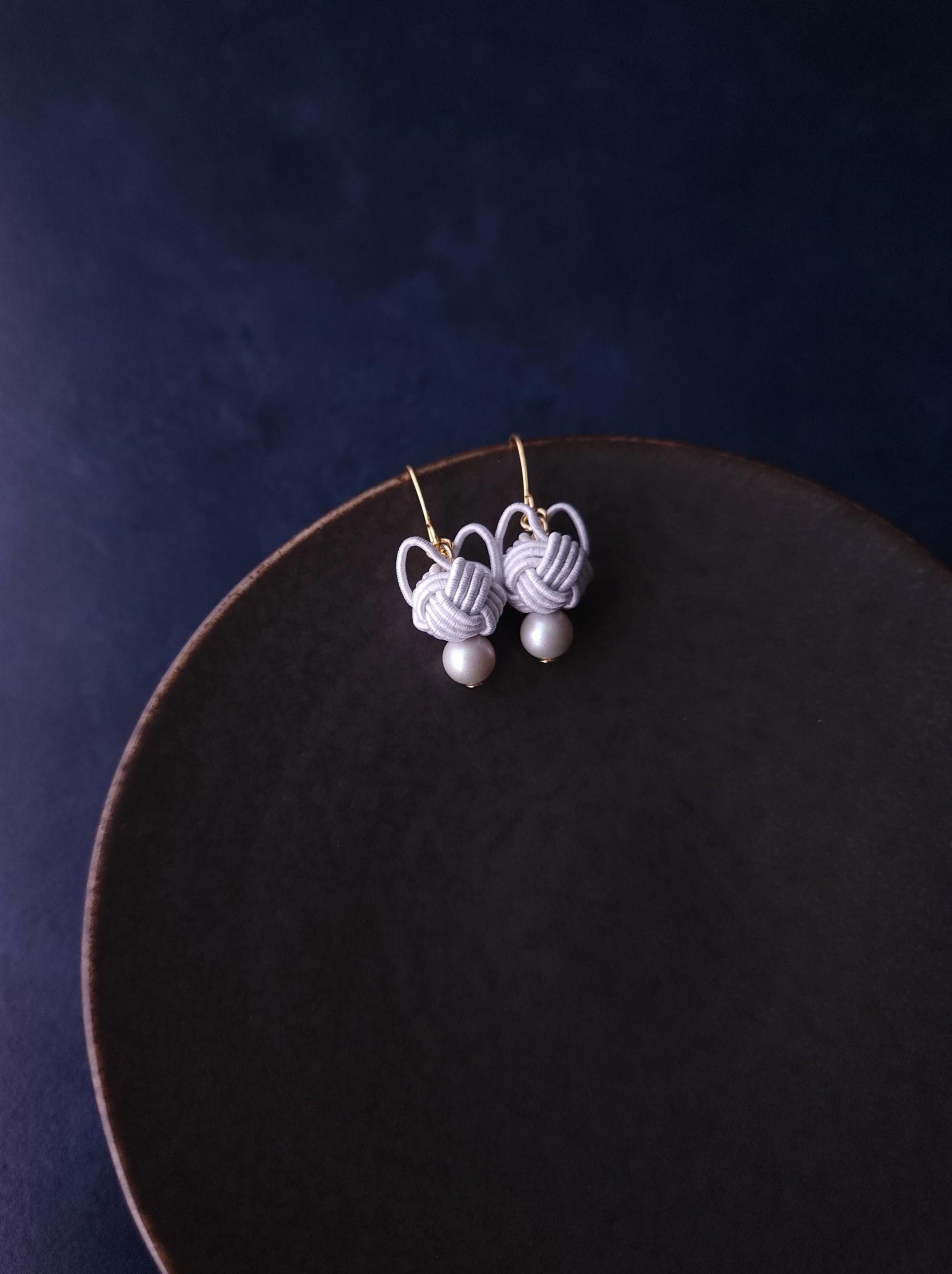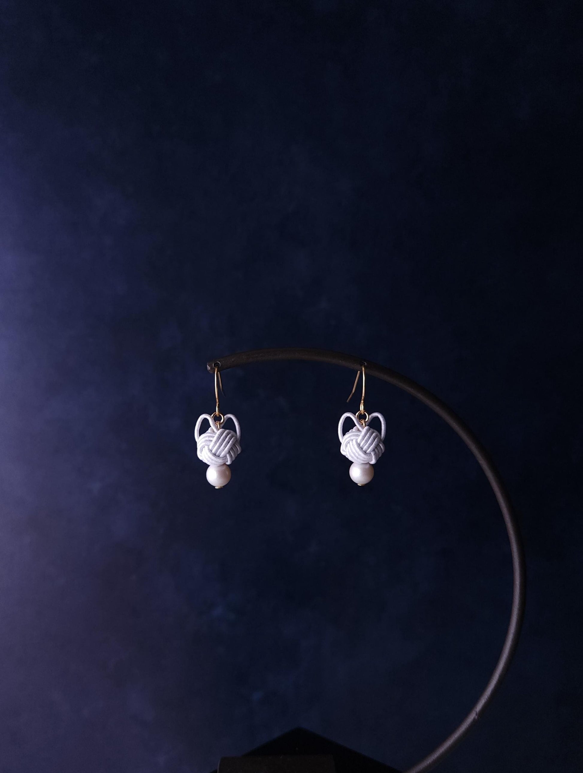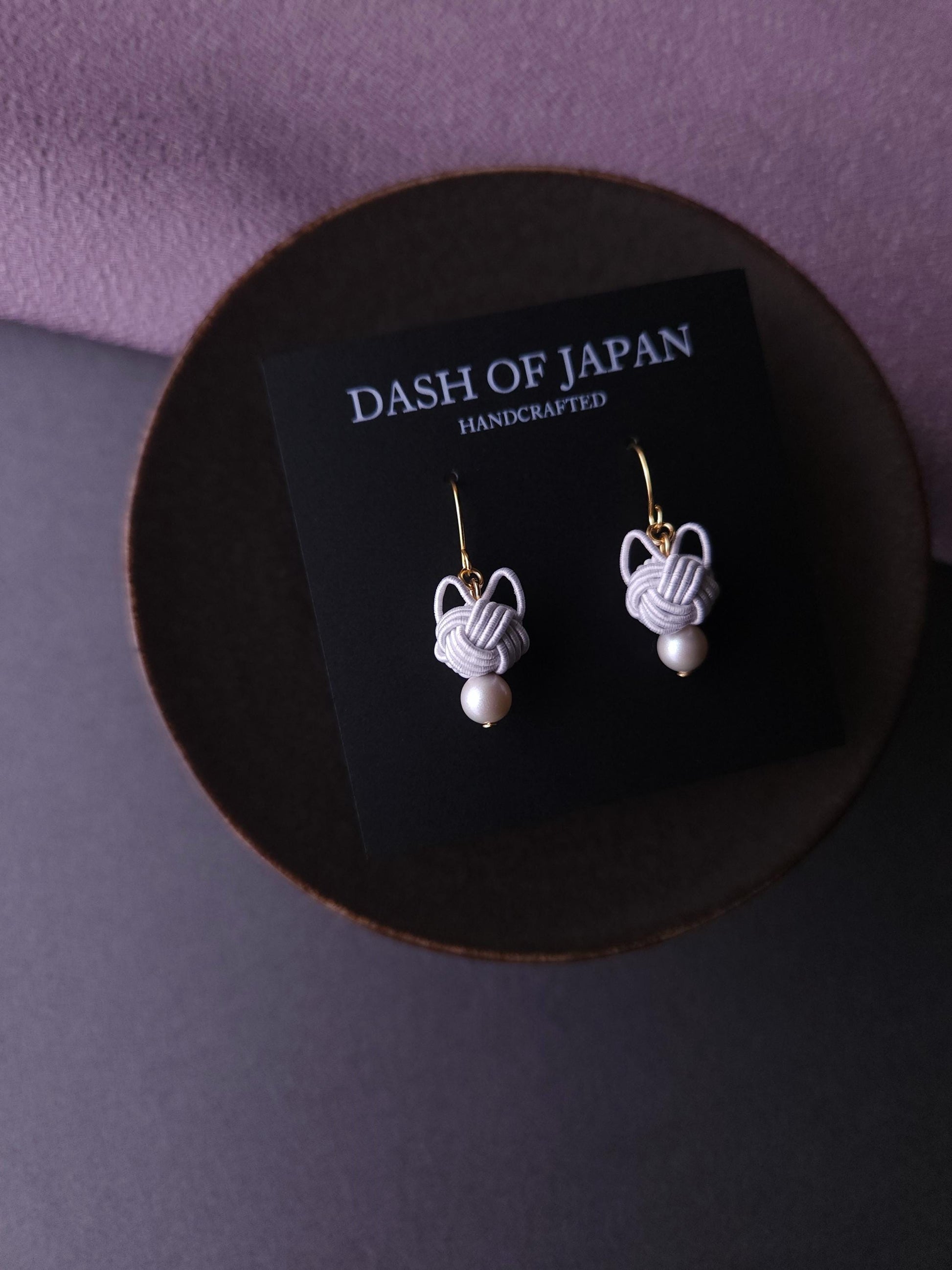 Cute cat earrings crafted with traditional Japanese Mizuhiki. A lightweight design for everyday wear or special occasions.