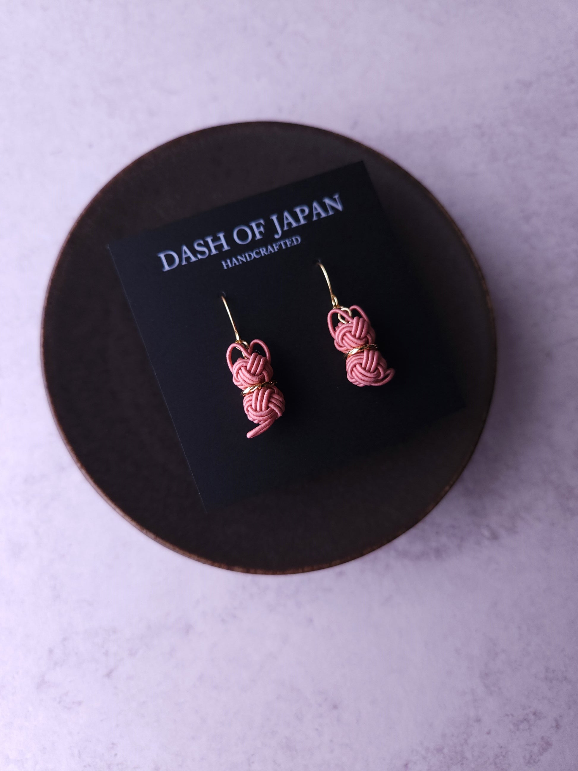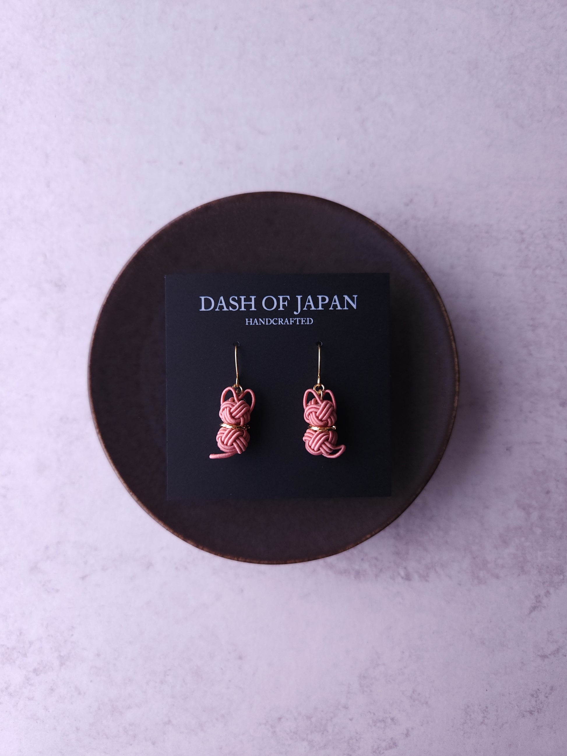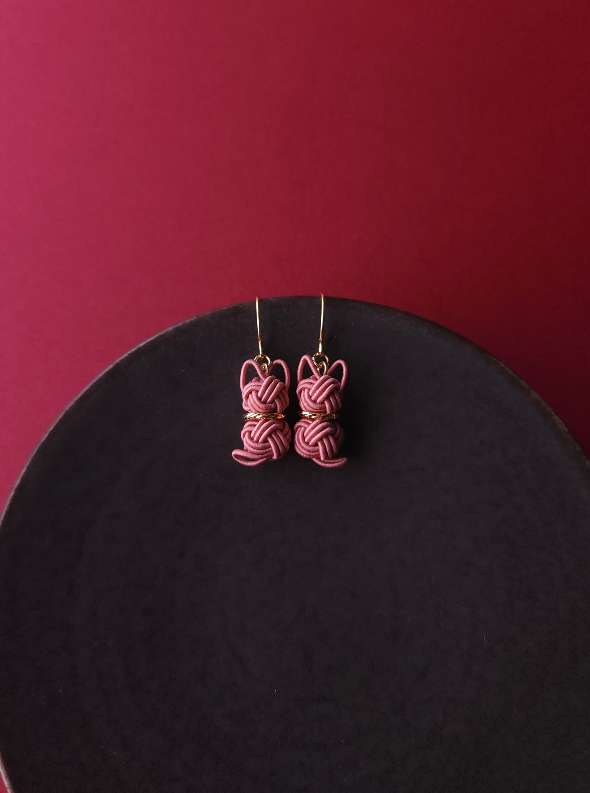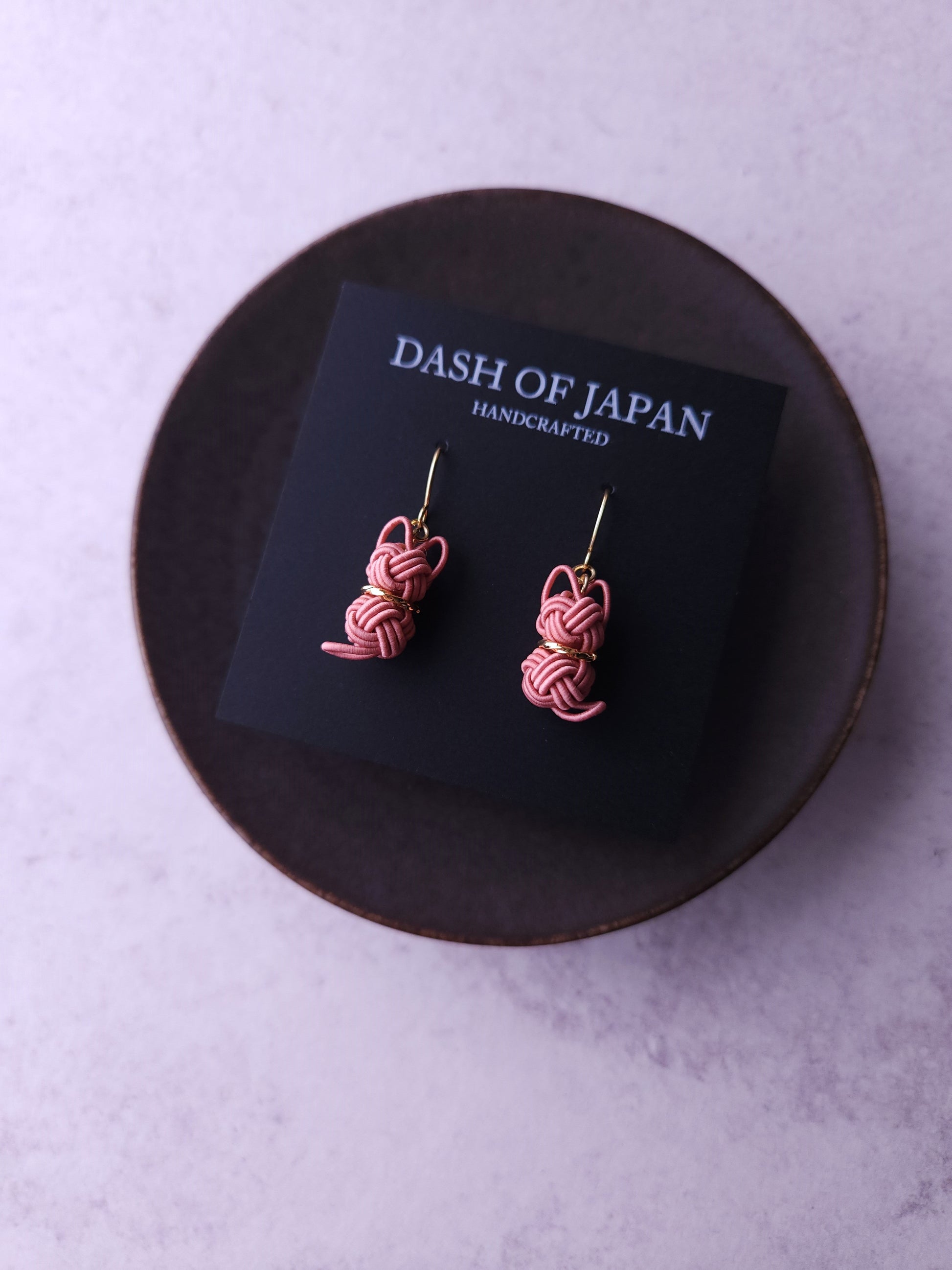 Charming Cat earrings made with Japanese Mizuhiki paper cord. Each delicate feline silhouette is expertly formed using the ancient art of Japanese Mizuhiki paper cord.