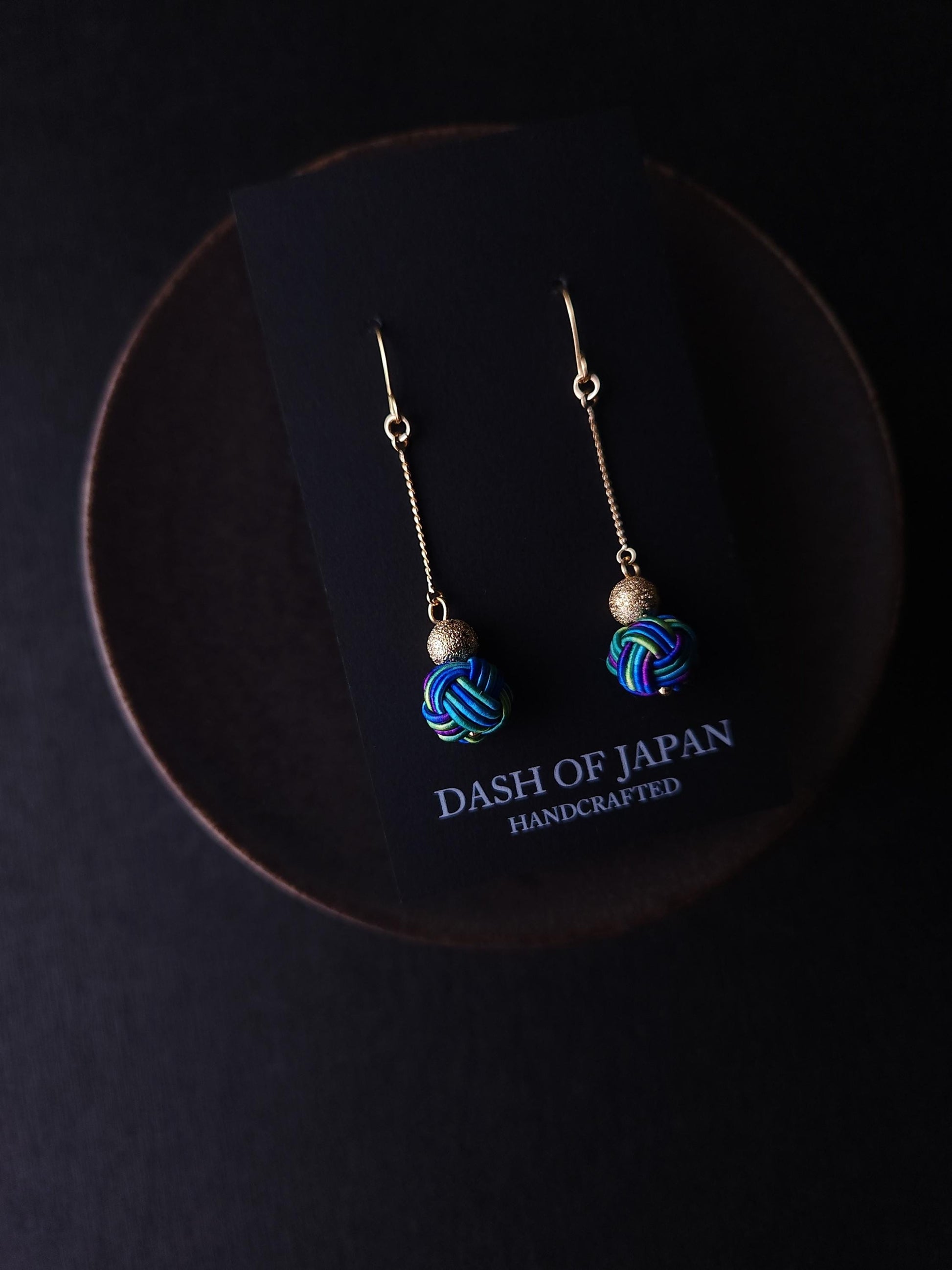 Each knots are meticulously crafted with Mizuhiki cords and adorned with sparkling metal beads and a delicate, elegant chain.