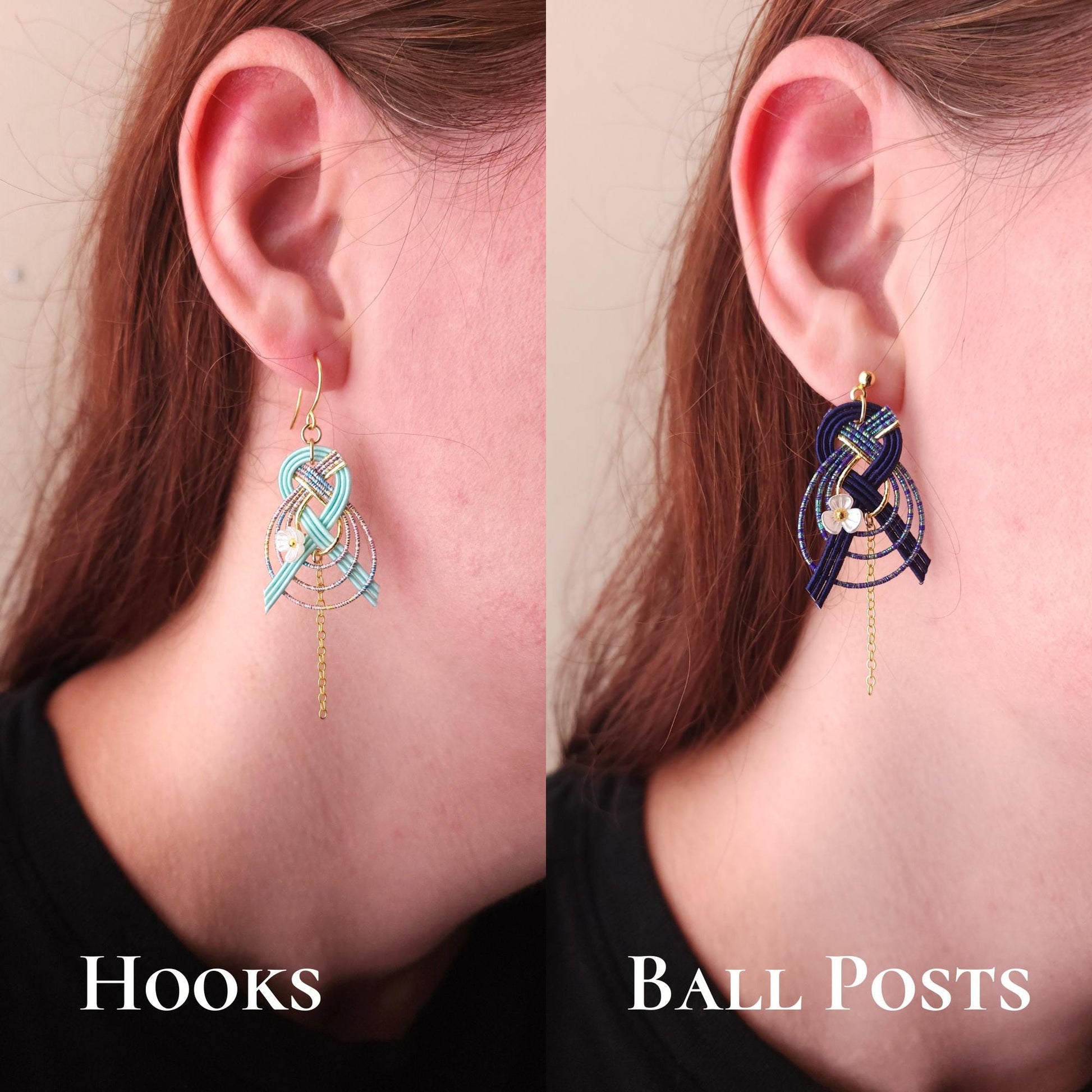 These dainty drop earrings are made with Japanese Mizuhiki Paper cord.
