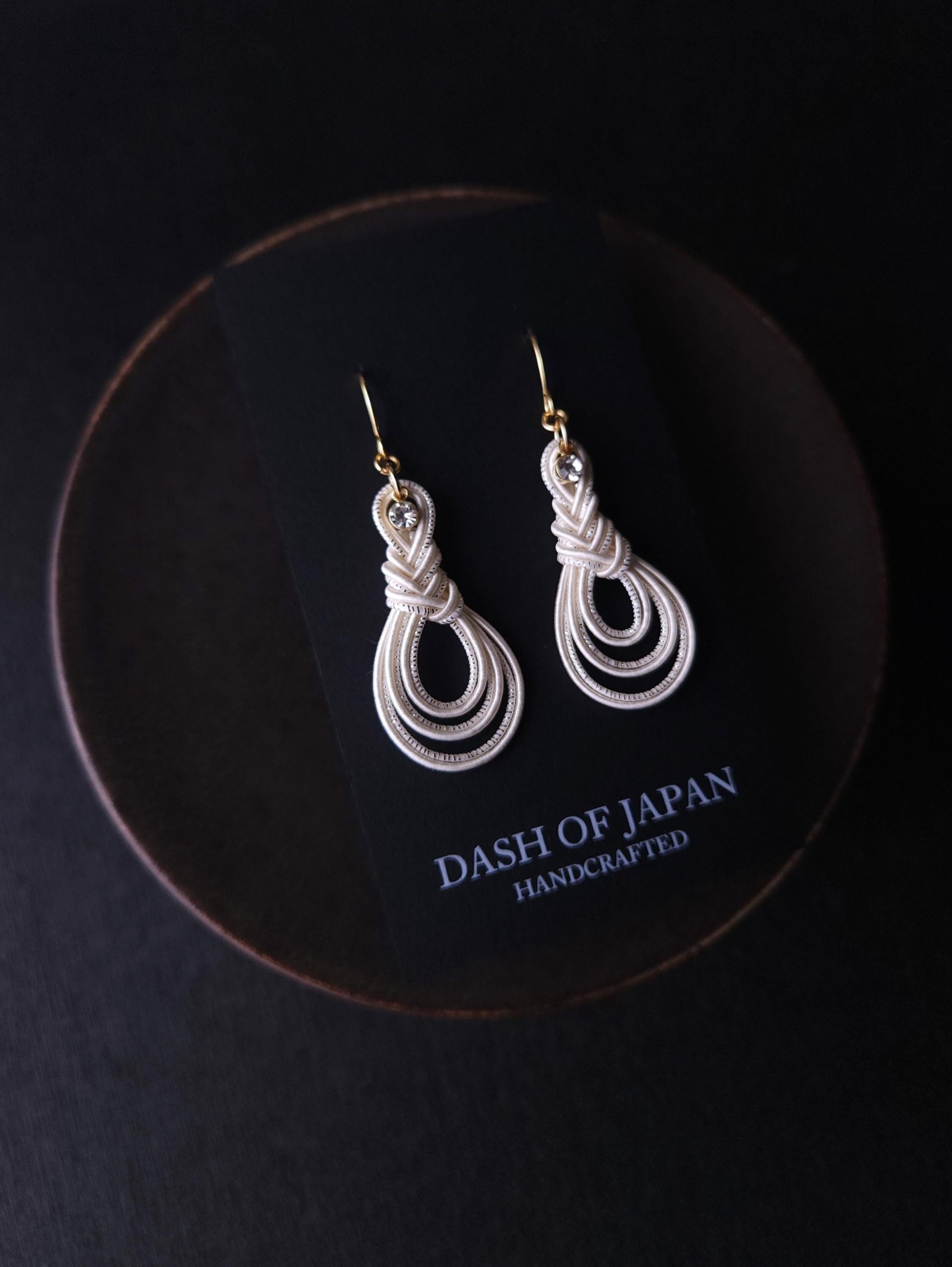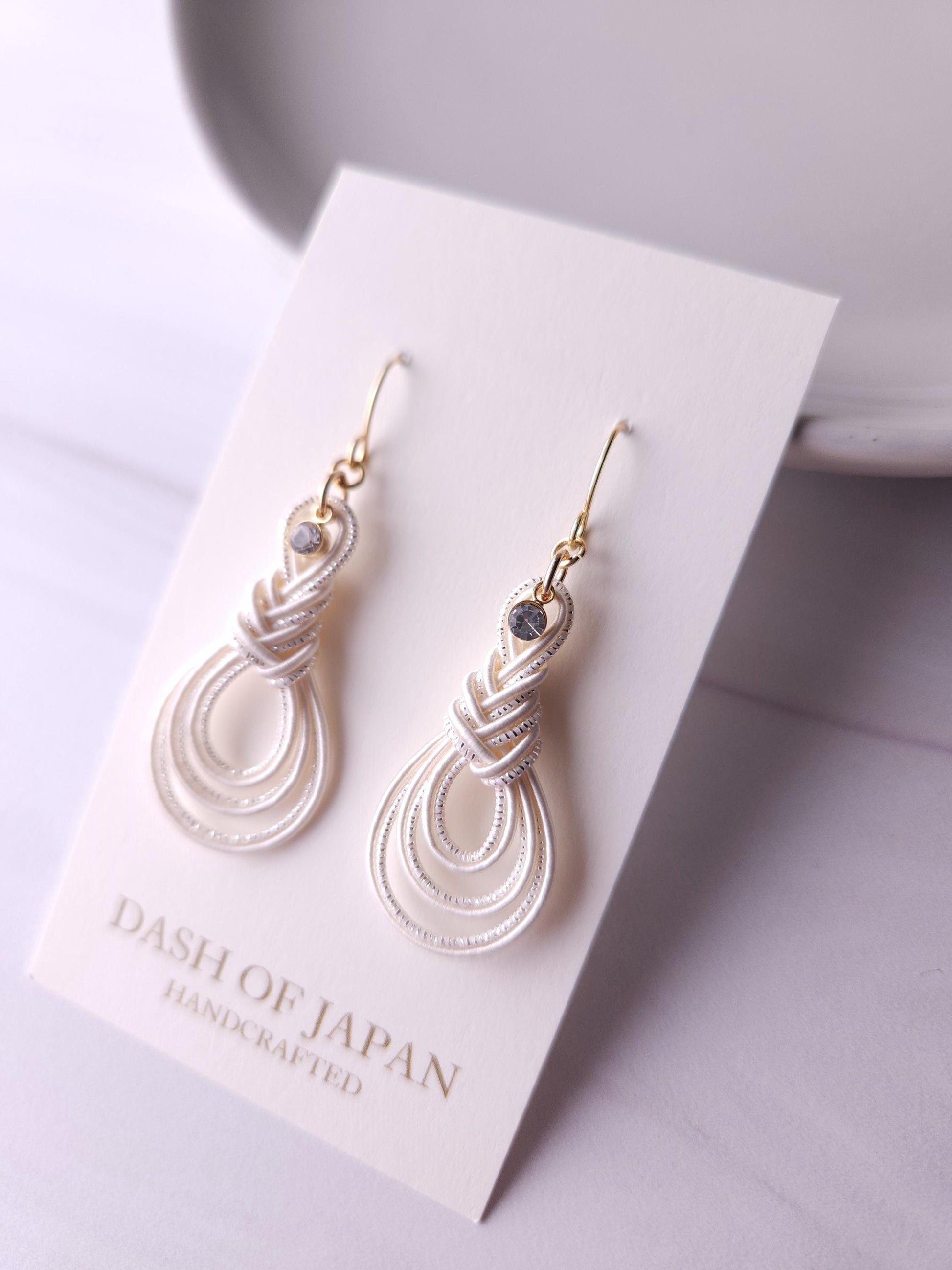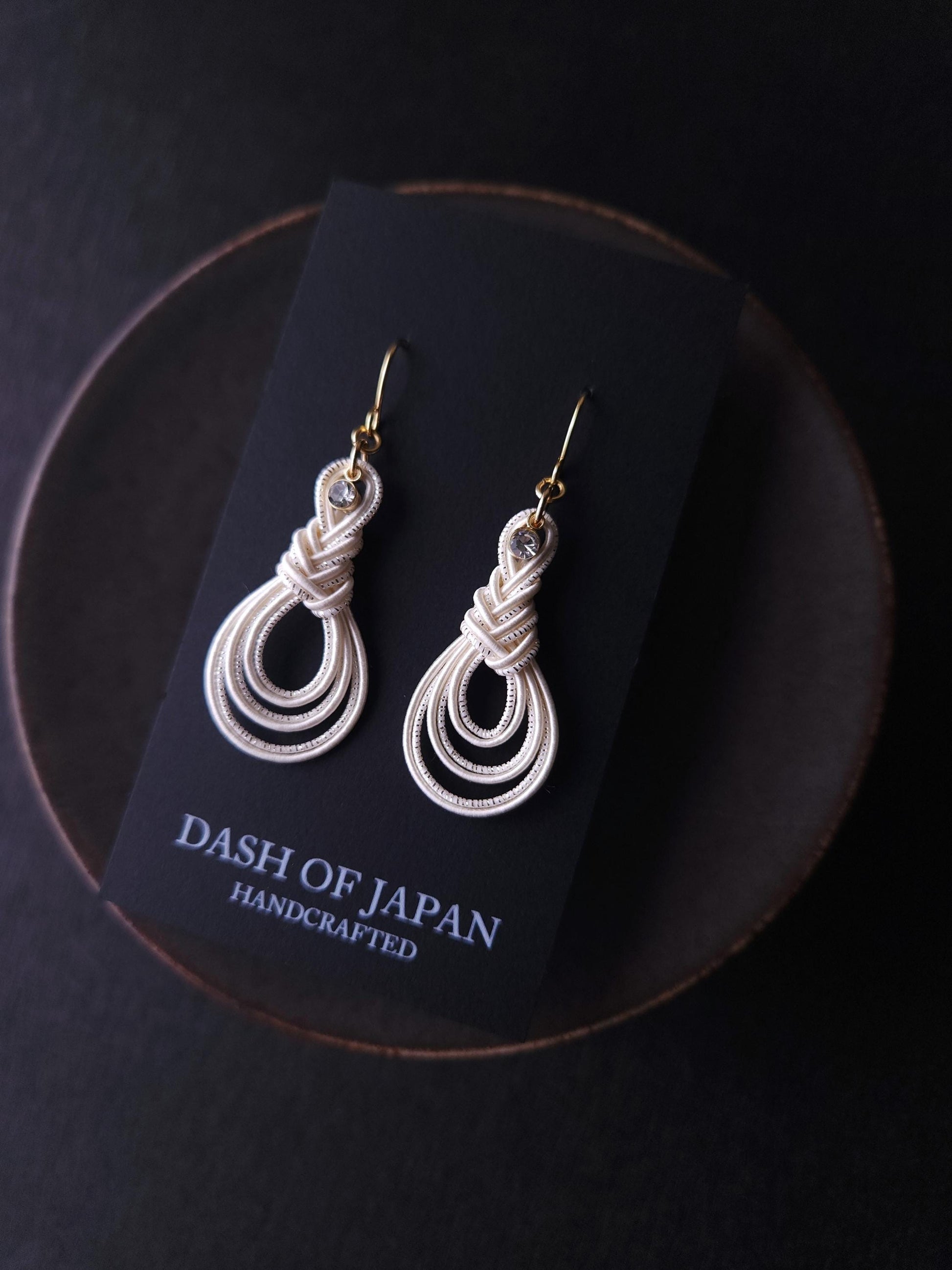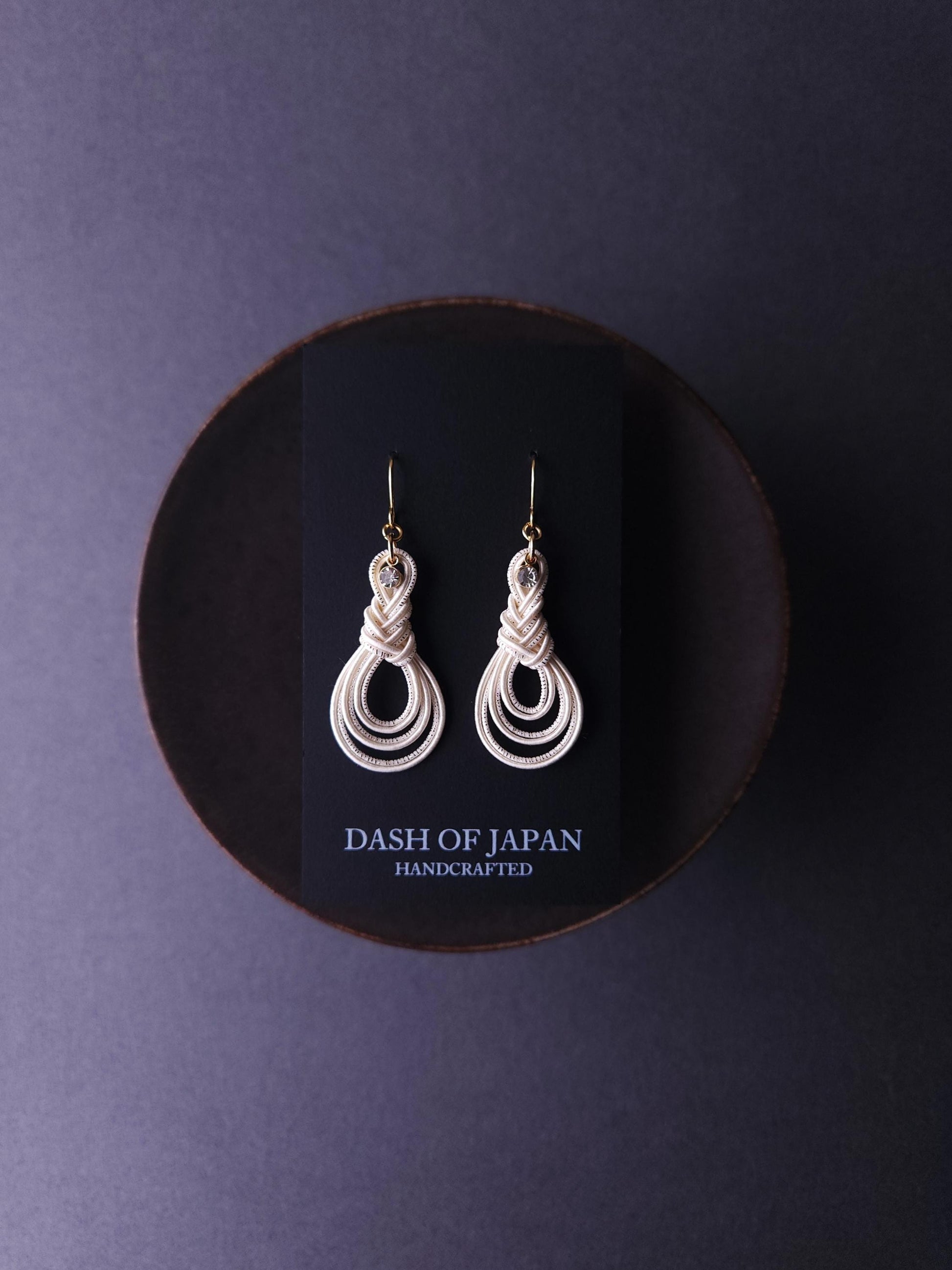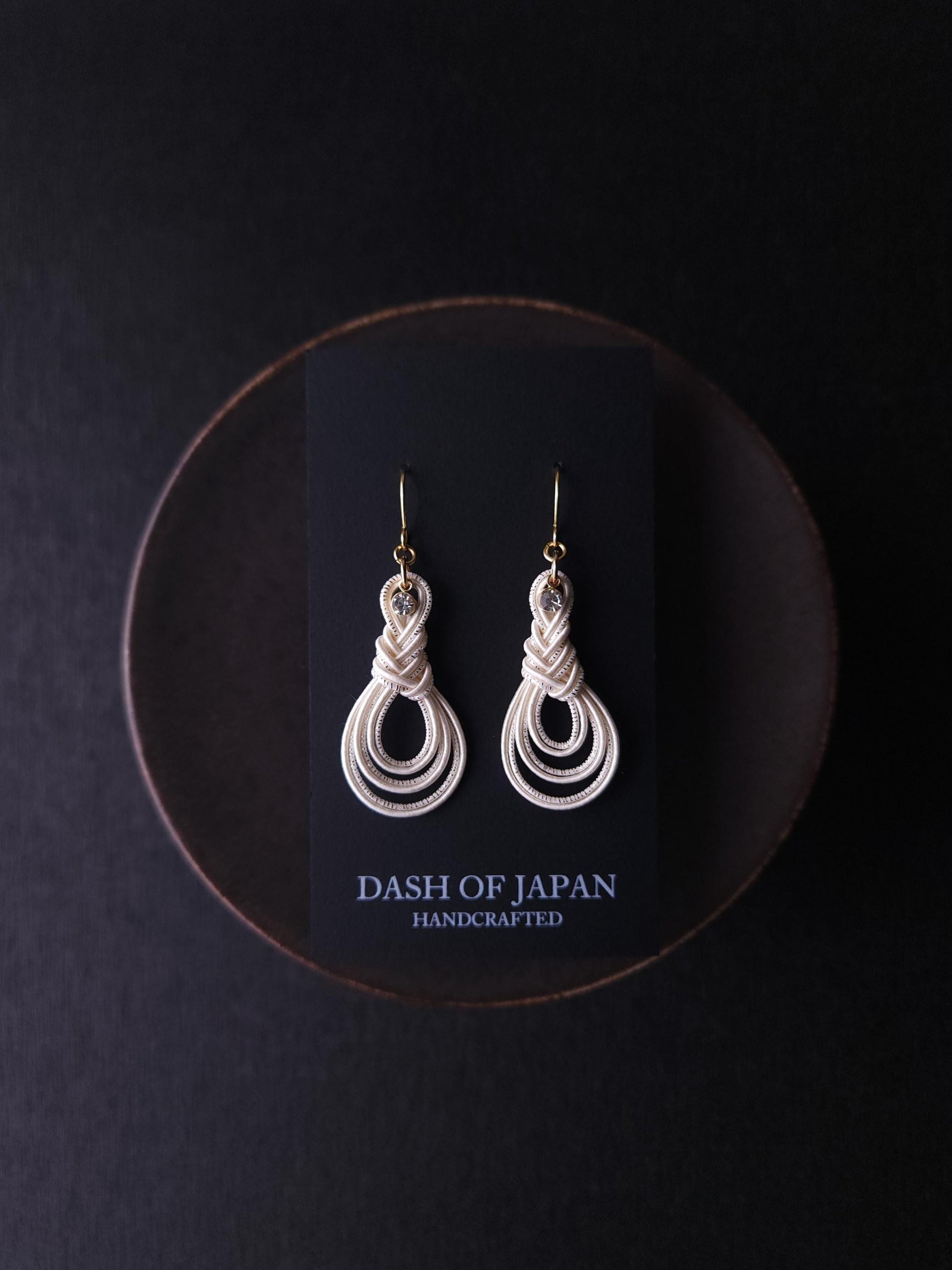 The layered, curved shape of the knot resembles the overlapping petals of a myoga bud, this elegant design is accented with a small rhinestone that adds a subtle sparkle.
