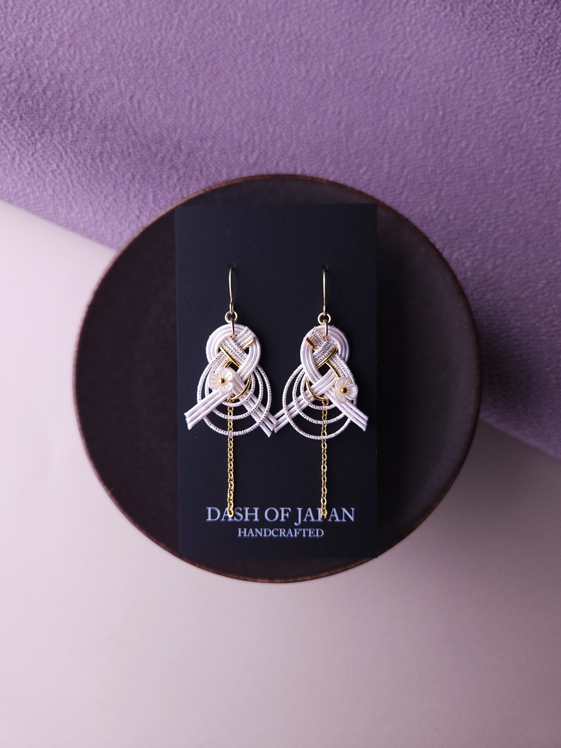 These dainty drop earrings are made with Japanese Mizuhiki Paper cord.