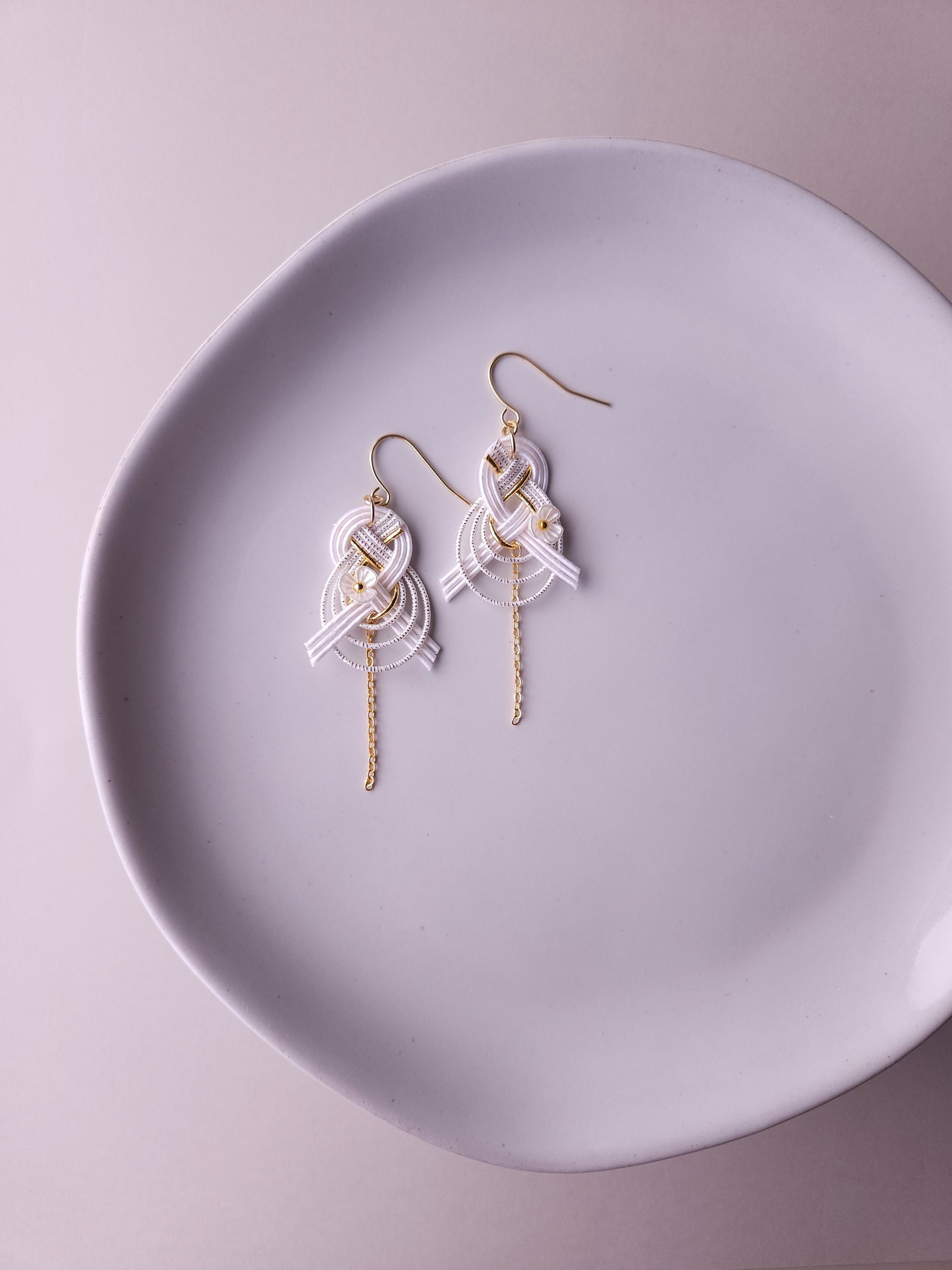 Drop Earrings made with Japanese Mizuhiki - White