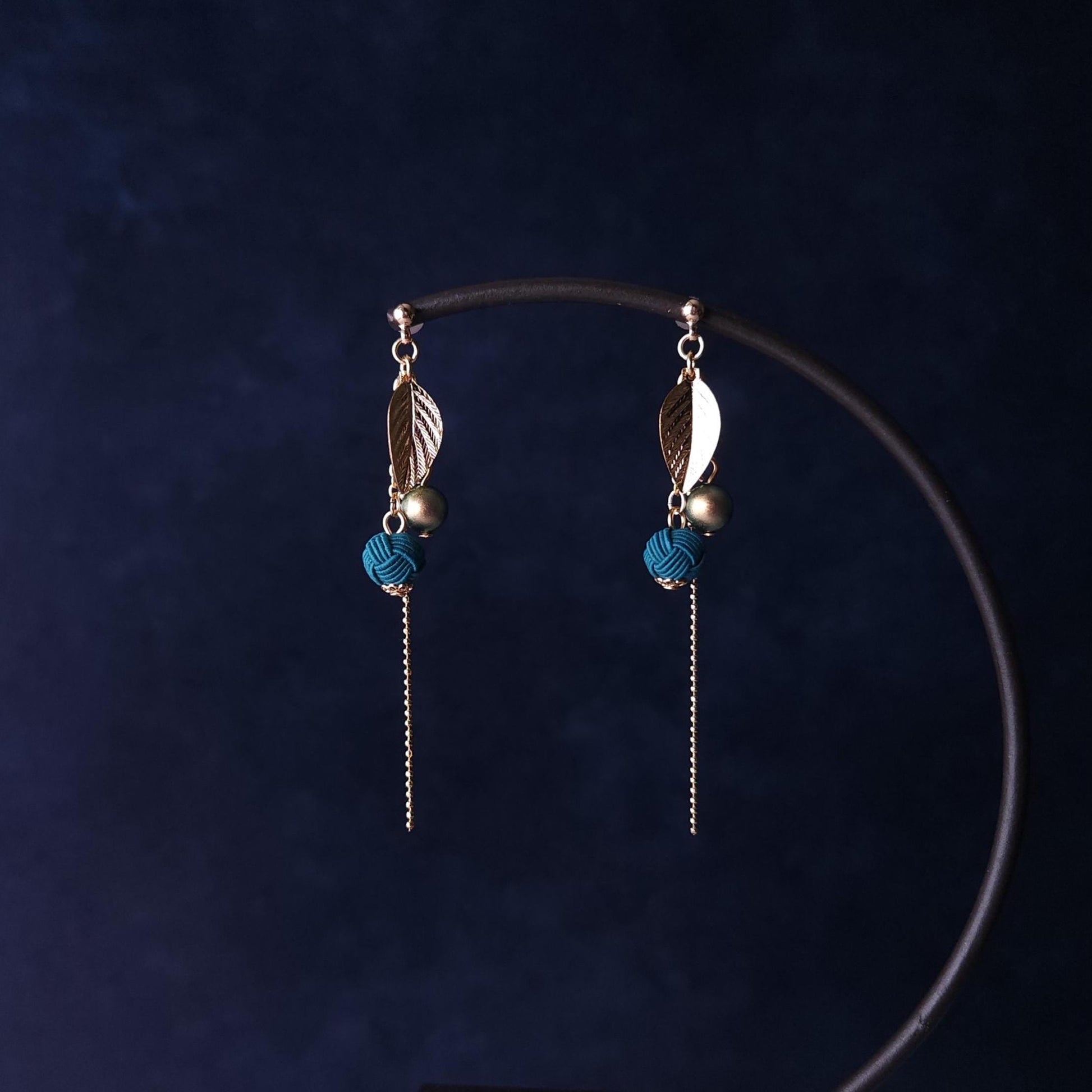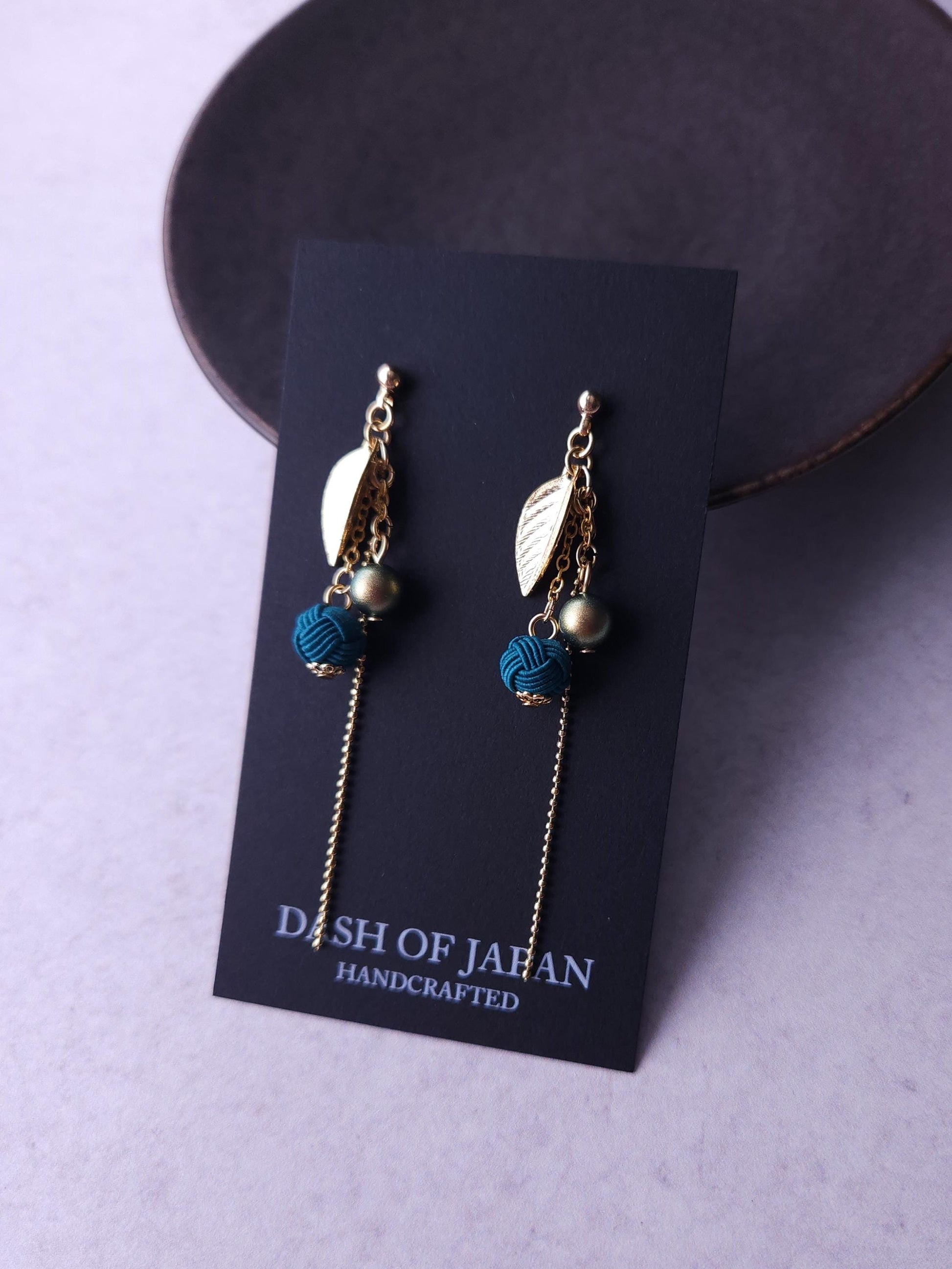 Each ball knots are meticulously handwoven using thin type of Mizuhiki, matched with metal leaf elements, glass pearl beads and shiny ball chains.