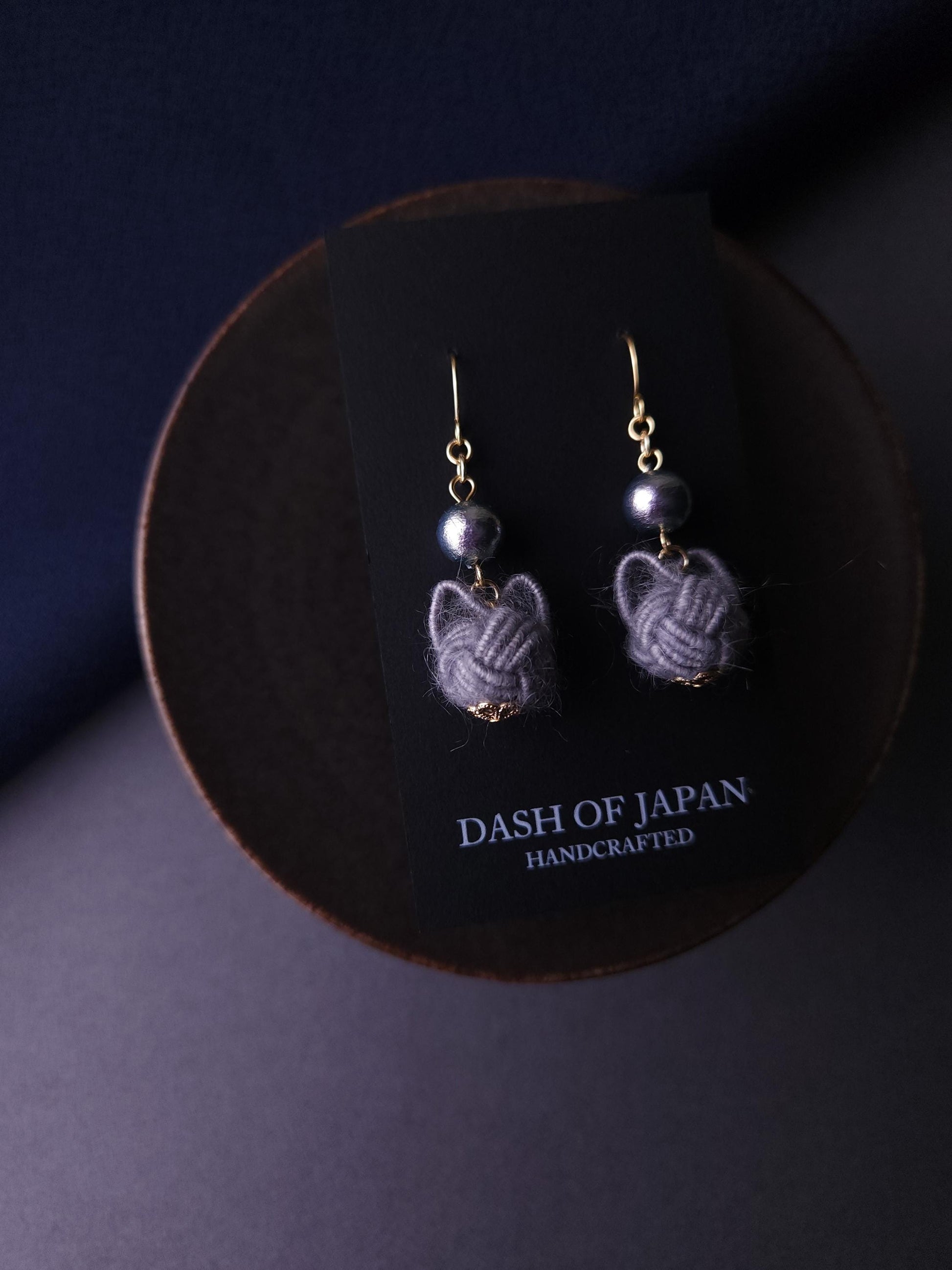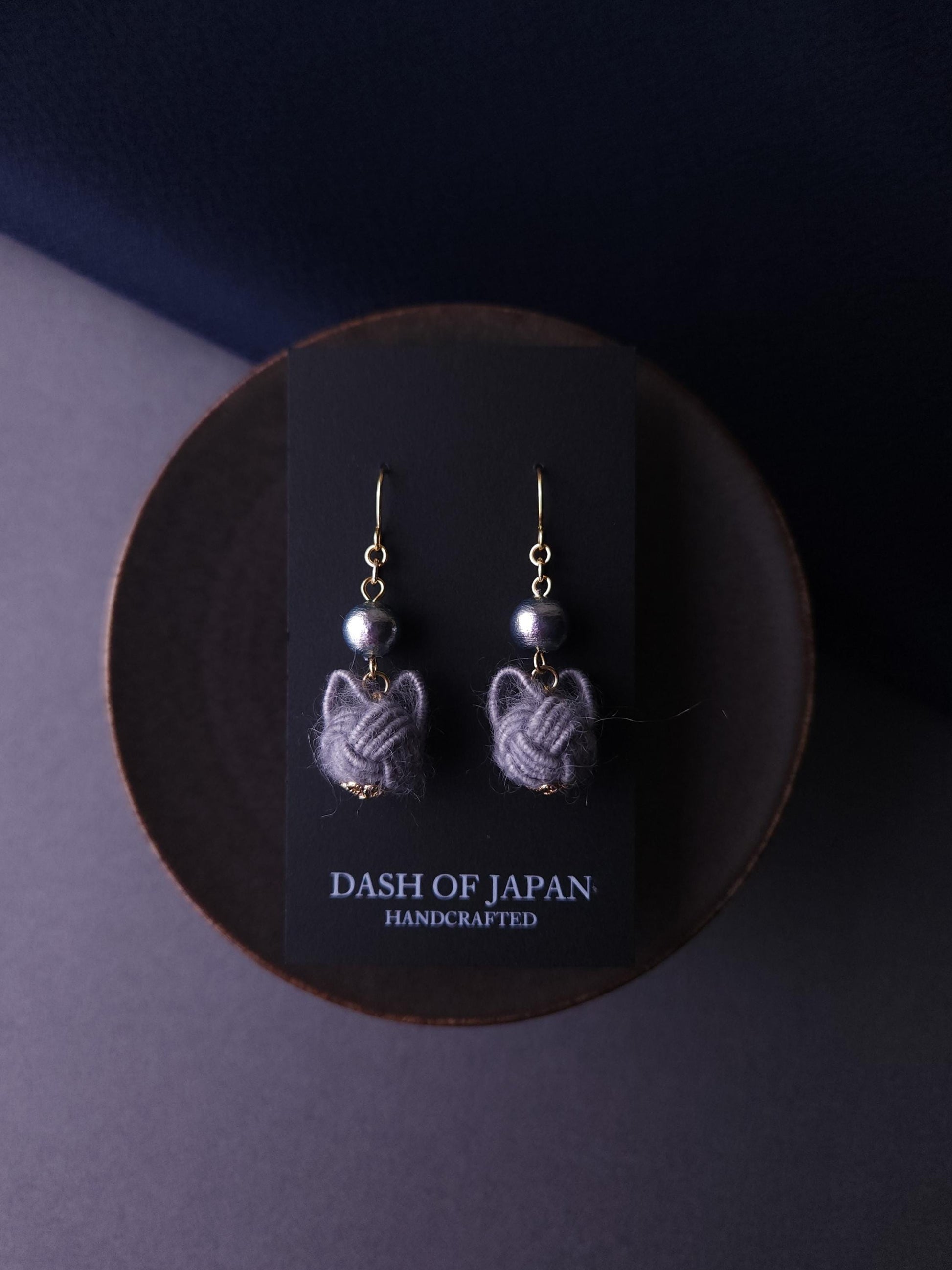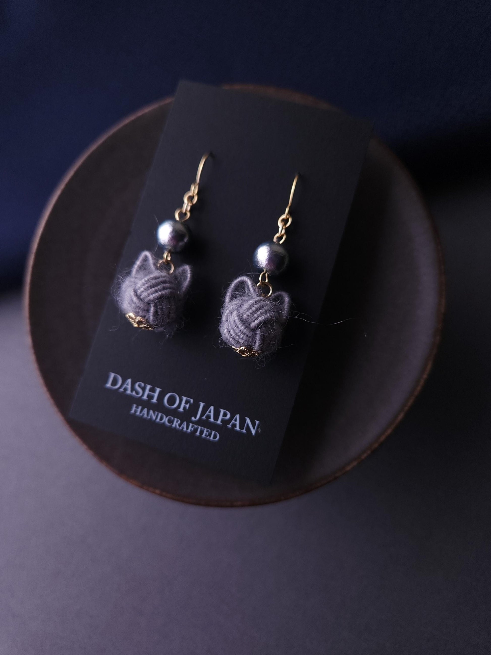 Handcrafted with a unique Mizuhiki cord that resembles yarn, make soft and fluffy cats. The adorable cats are elegantly paired with cotton pearl beads (Compressed Cotton beads). Very lightweight and comfortable to wear all day long.