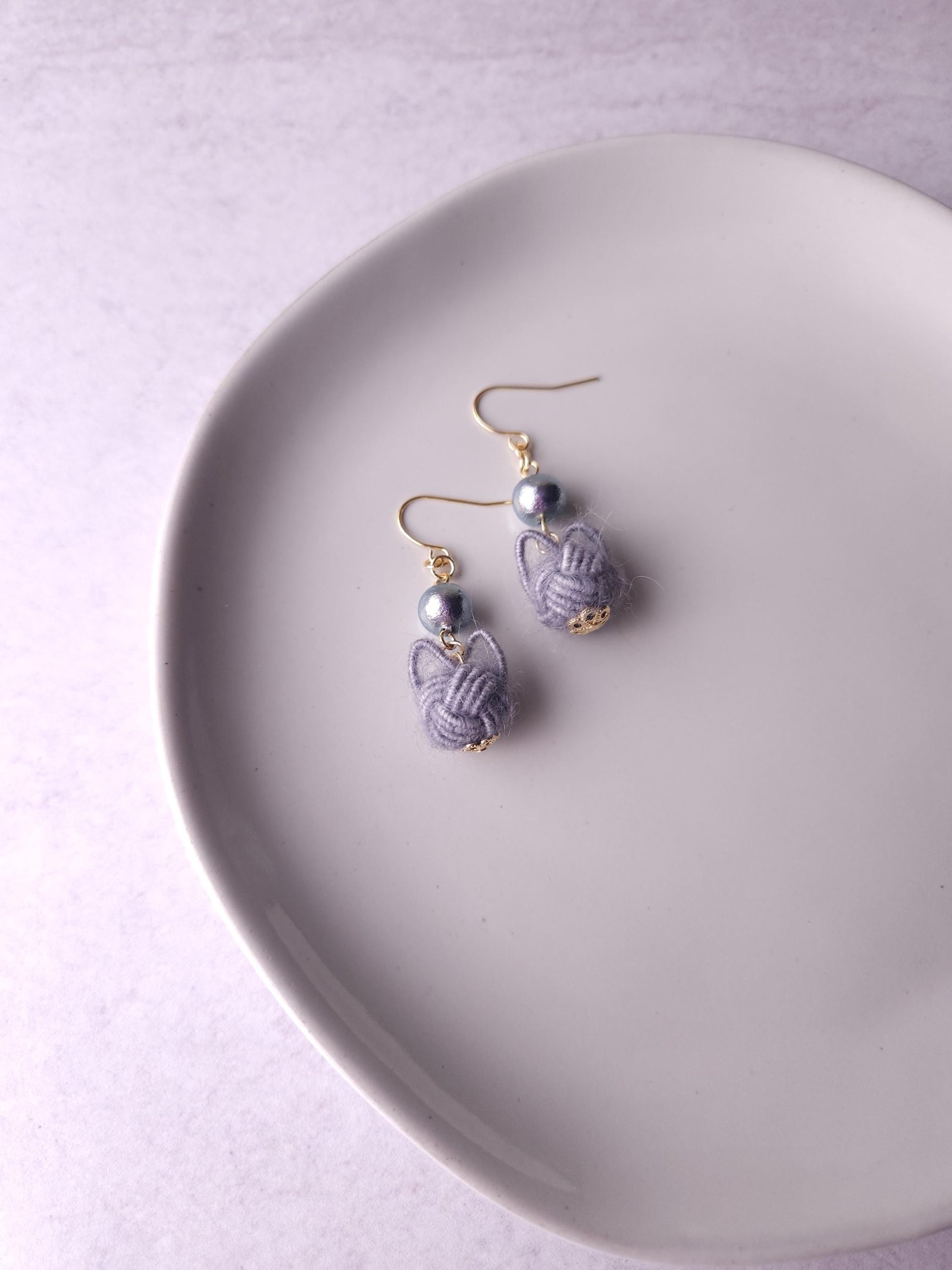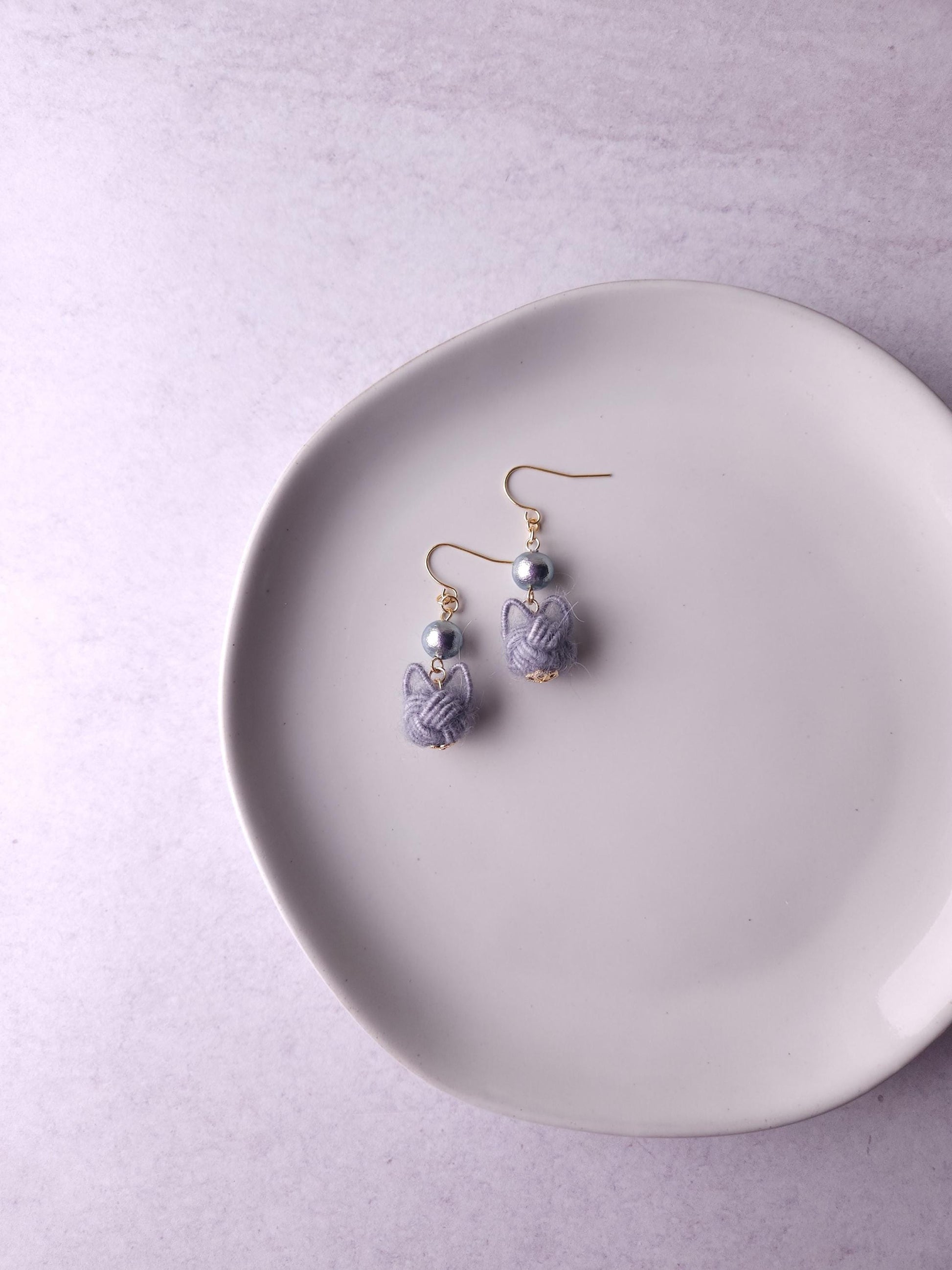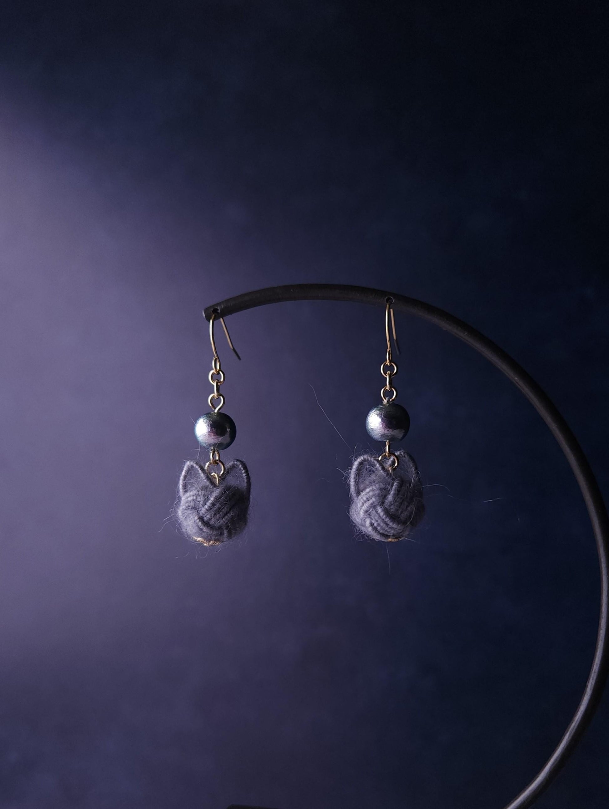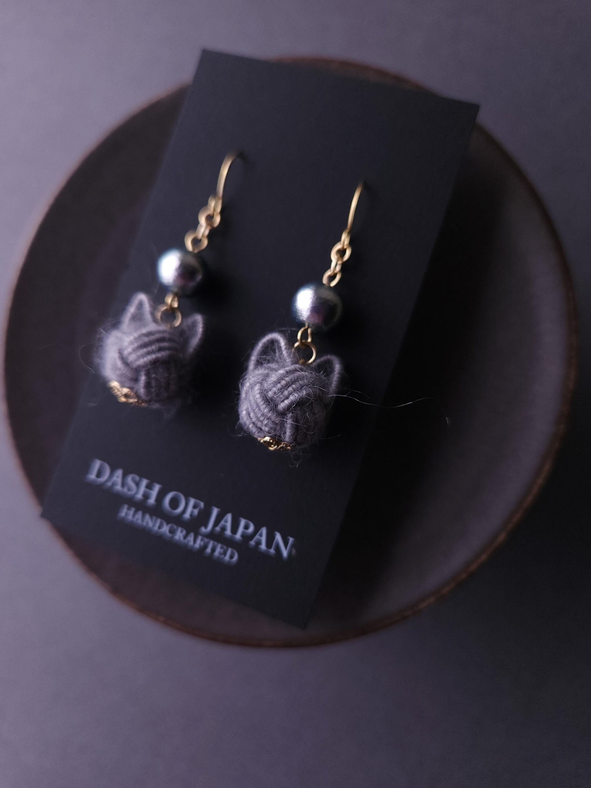 Handcrafted with a unique Mizuhiki cord that resembles yarn, make soft and fluffy cats. The adorable cats are elegantly paired with cotton pearl beads (Compressed Cotton beads). Very lightweight and comfortable to wear all day long.
