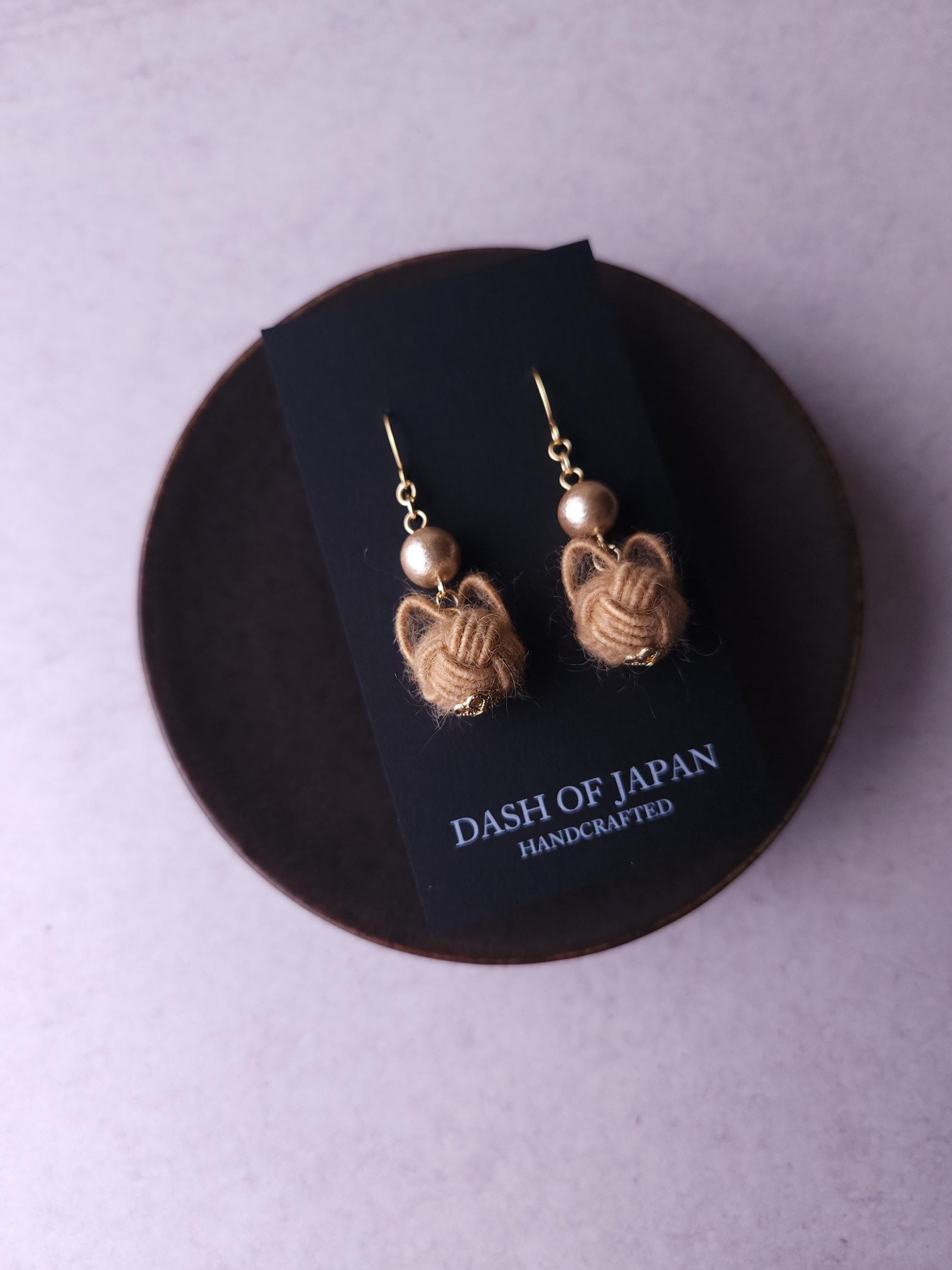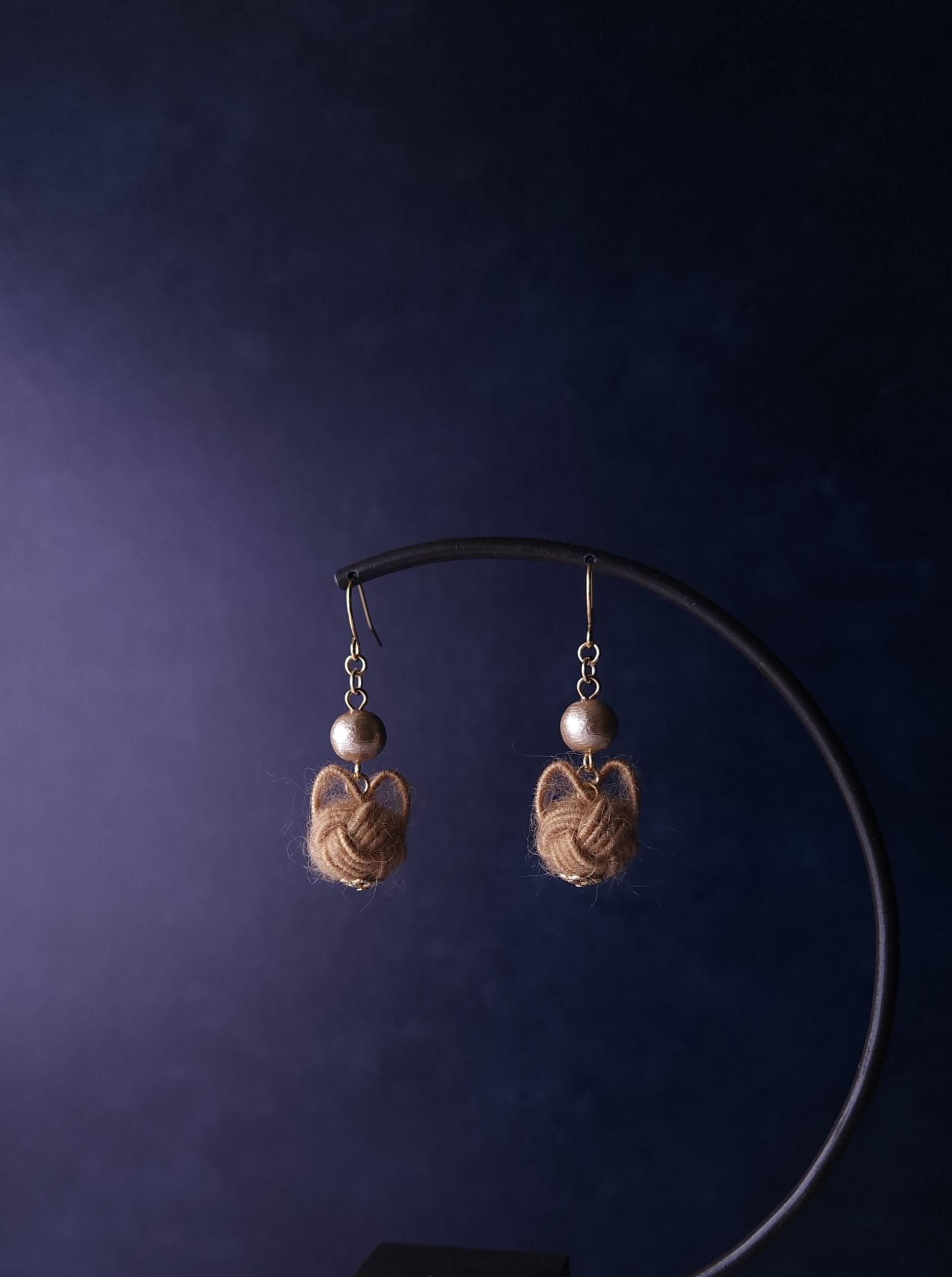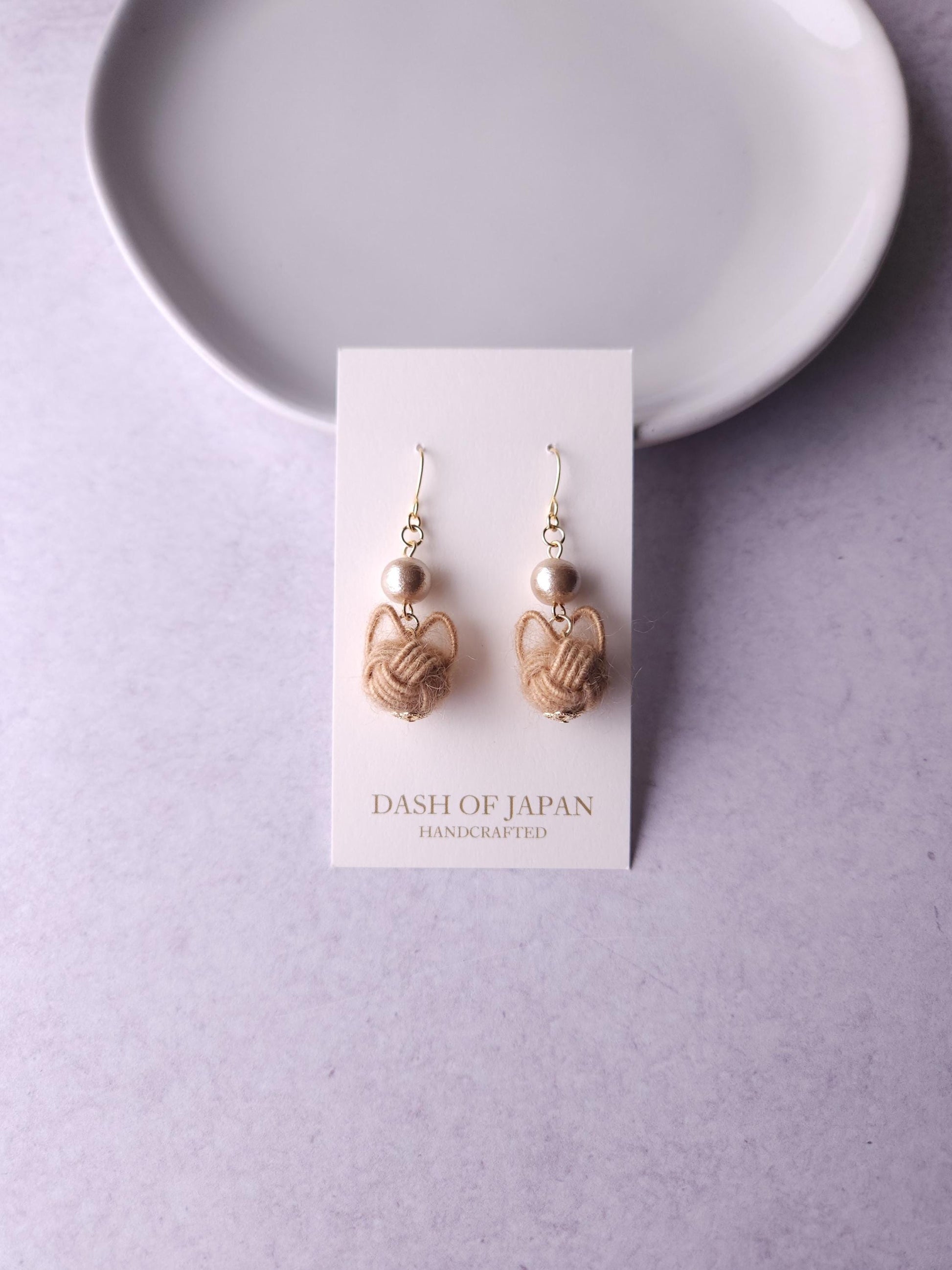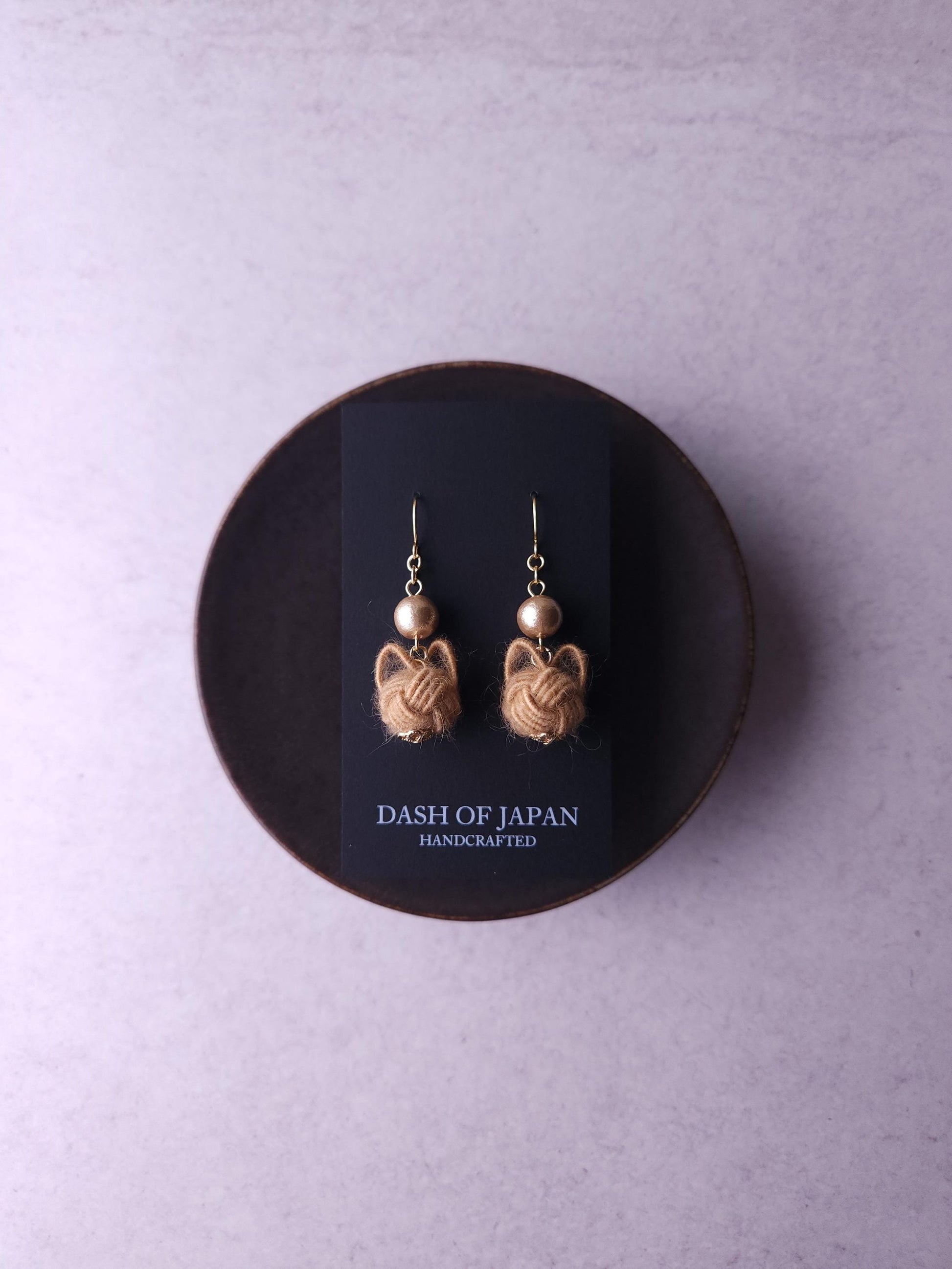 Handcrafted with a unique Mizuhiki cord that resembles yarn, make soft and fluffy cats. The adorable cats are elegantly paired with cotton pearl beads (Compressed Cotton beads). Very lightweight and comfortable to wear all day long.