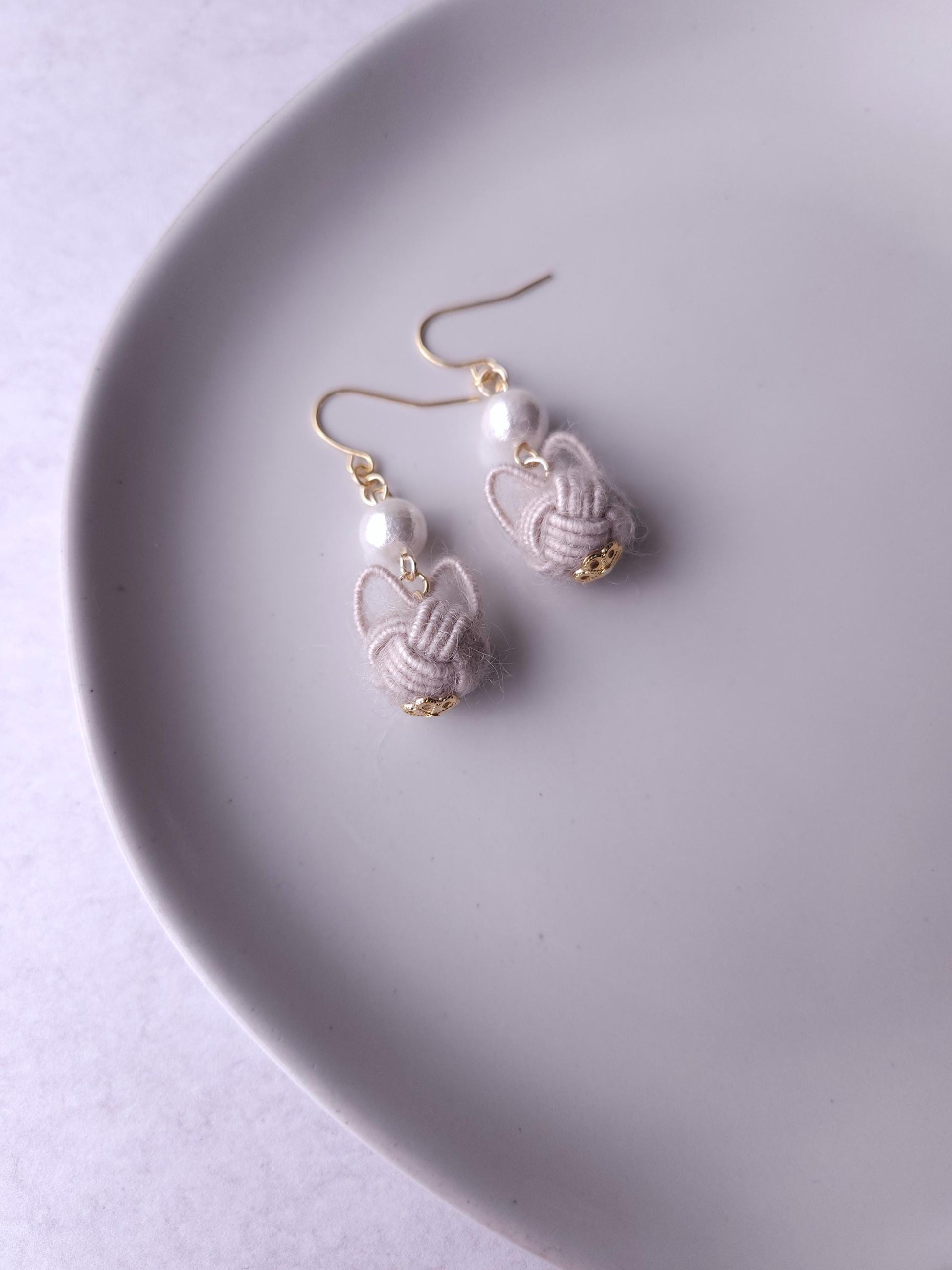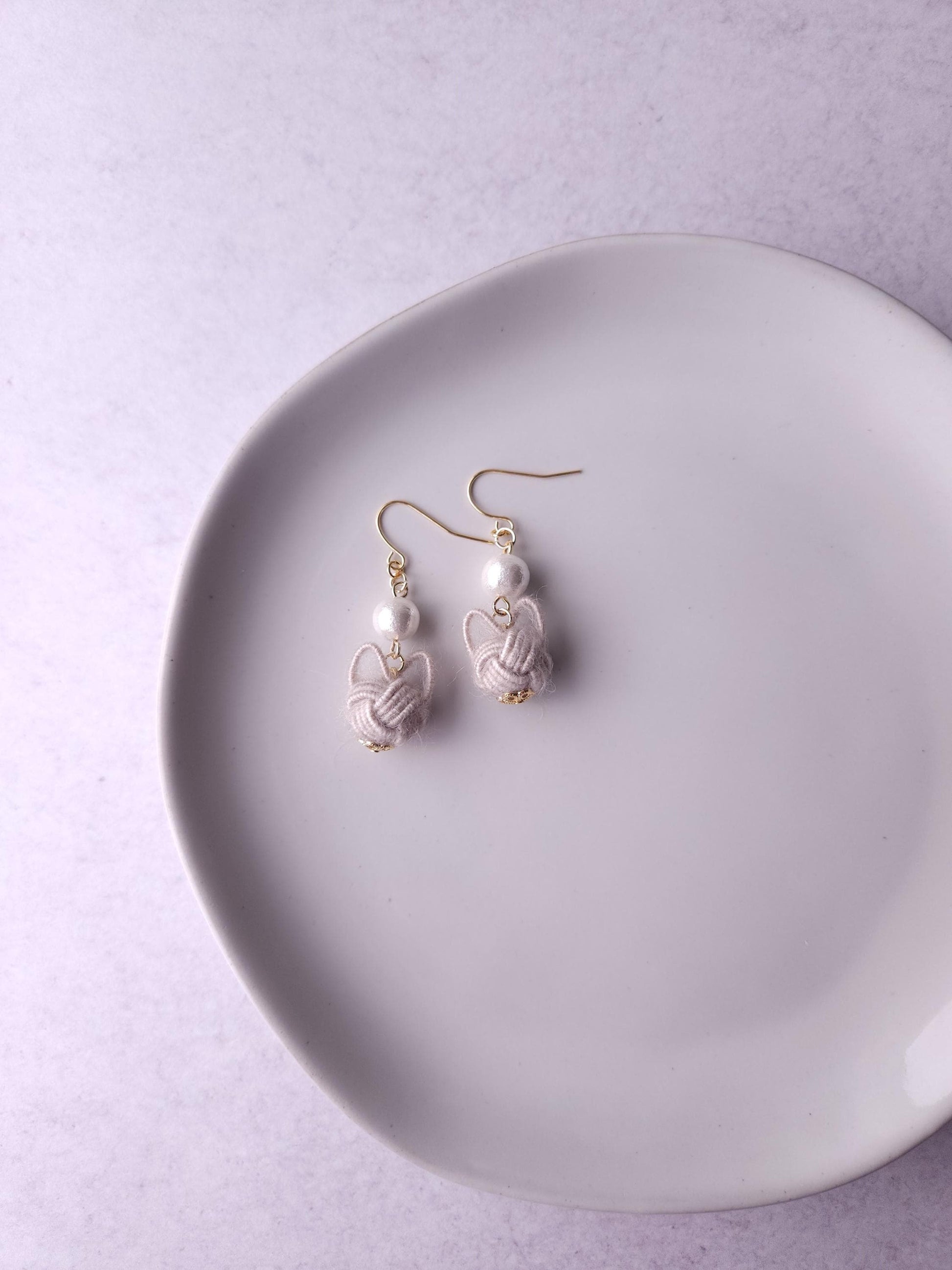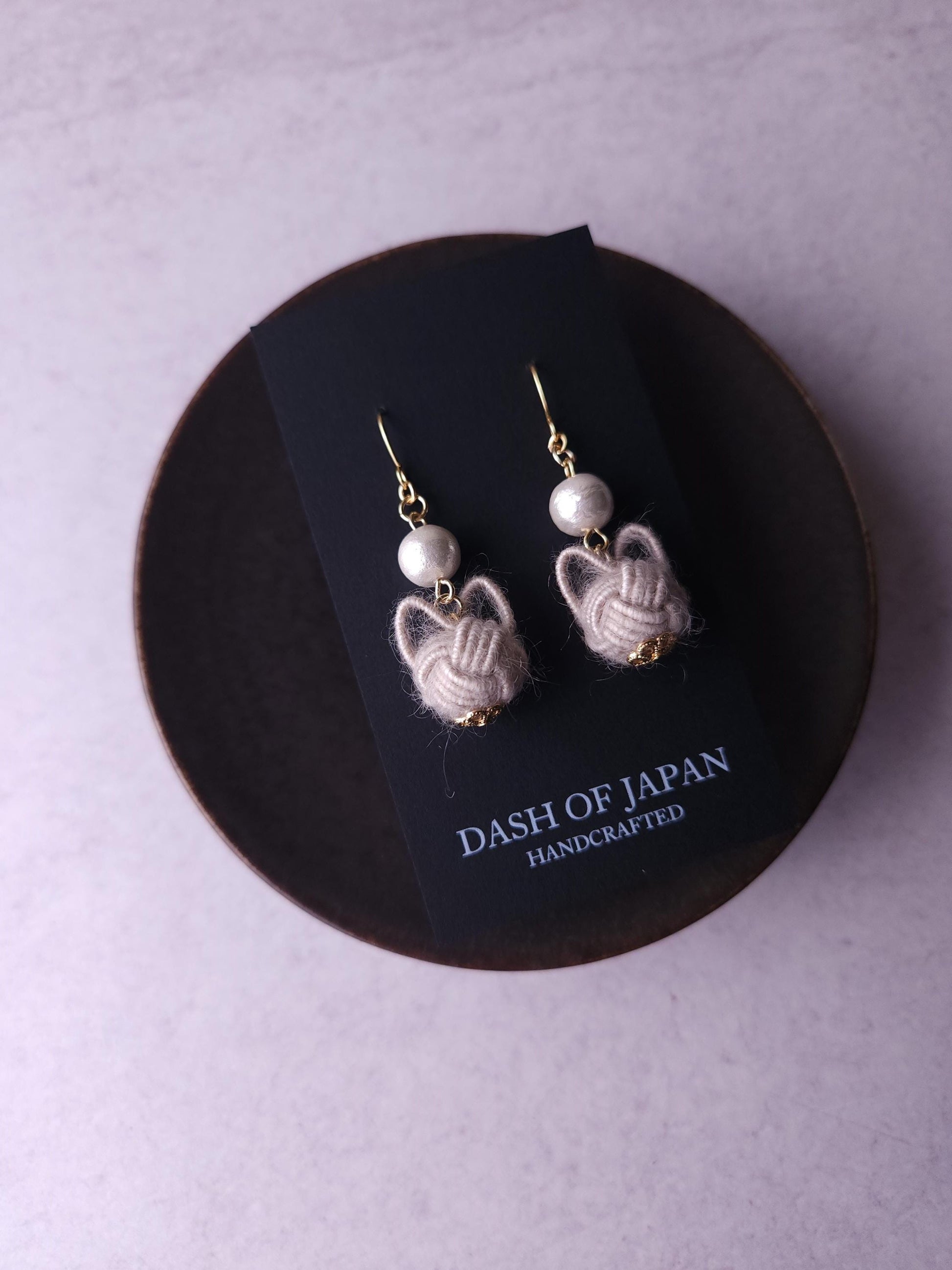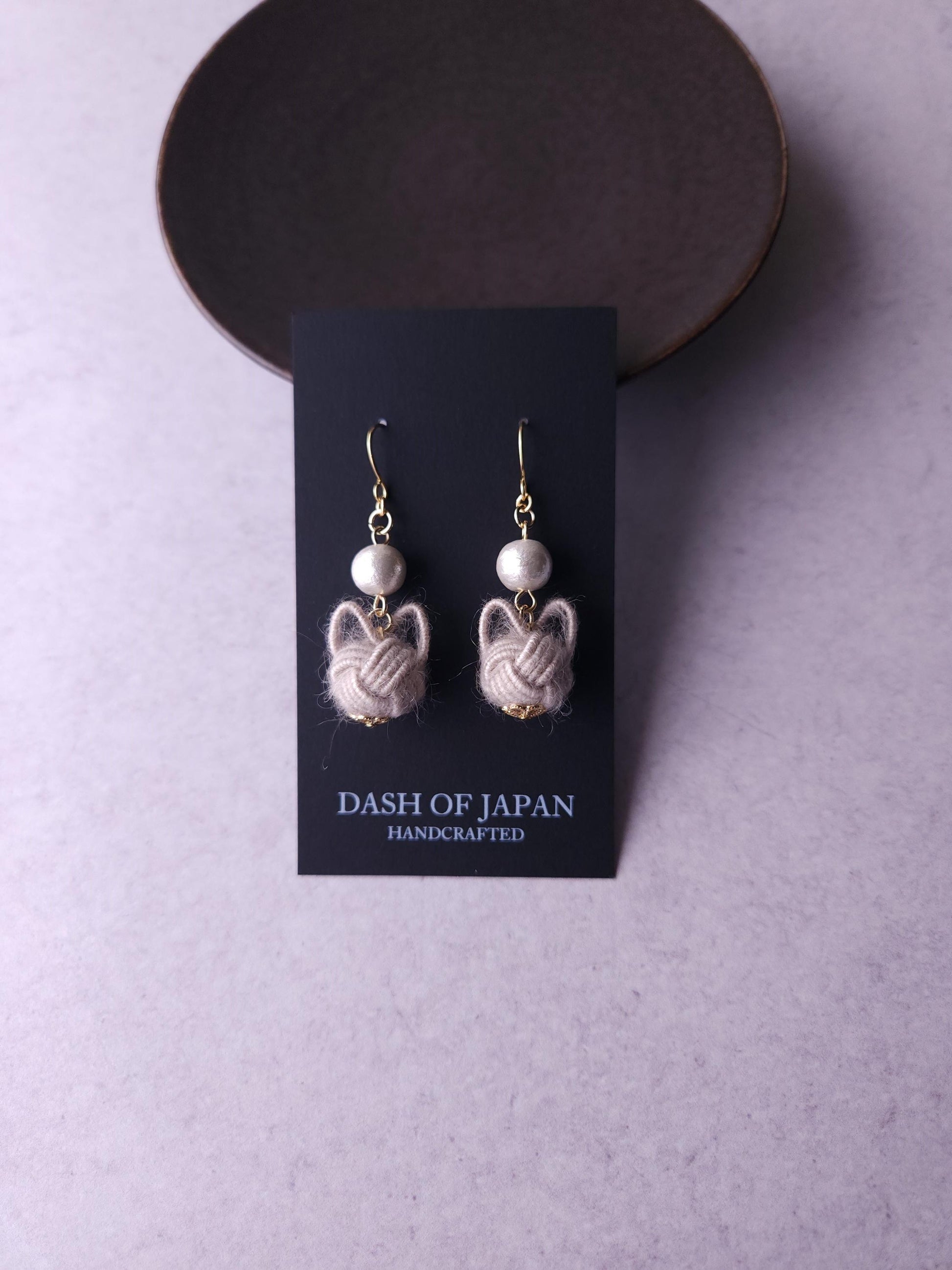 Handcrafted with a unique Mizuhiki cord that resembles yarn, make soft and fluffy cats. The adorable cats are elegantly paired with cotton pearl beads (Compressed Cotton beads). Very lightweight and comfortable to wear all day long.