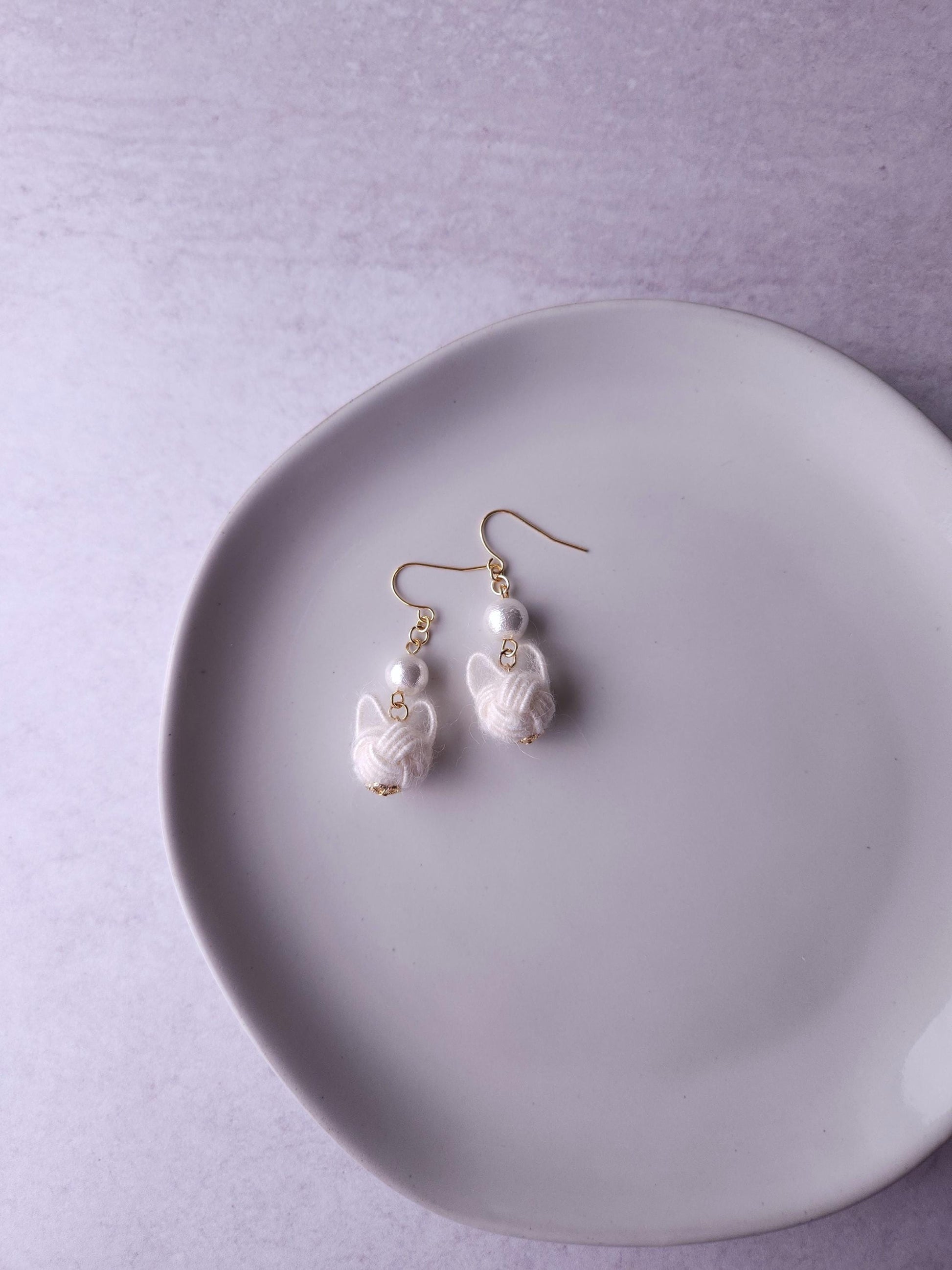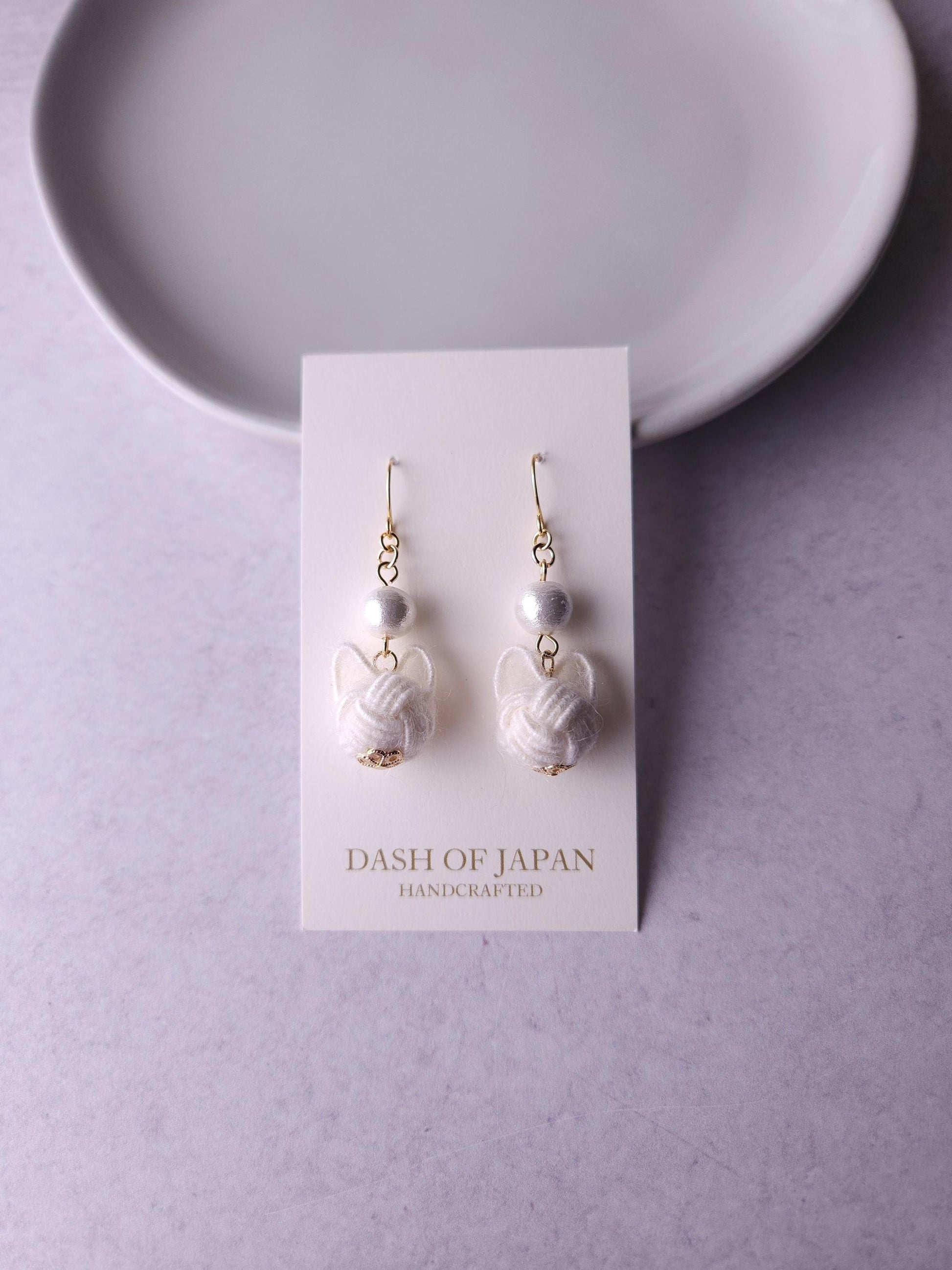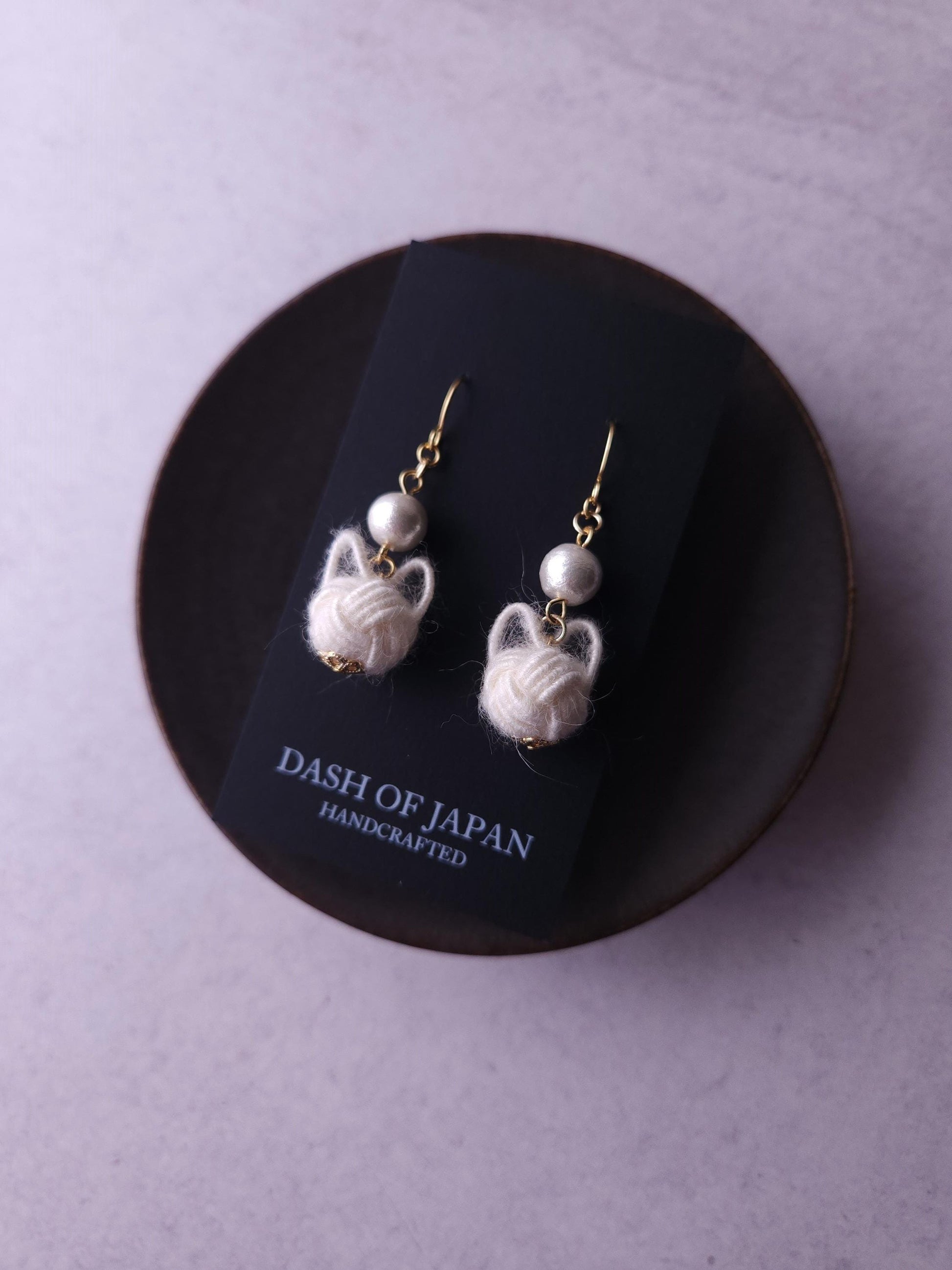 Handcrafted with a unique Mizuhiki cord that resembles yarn, make soft and fluffy cats. The adorable cats are elegantly paired with cotton pearl beads (Compressed Cotton beads). Very lightweight and comfortable to wear all day long.
