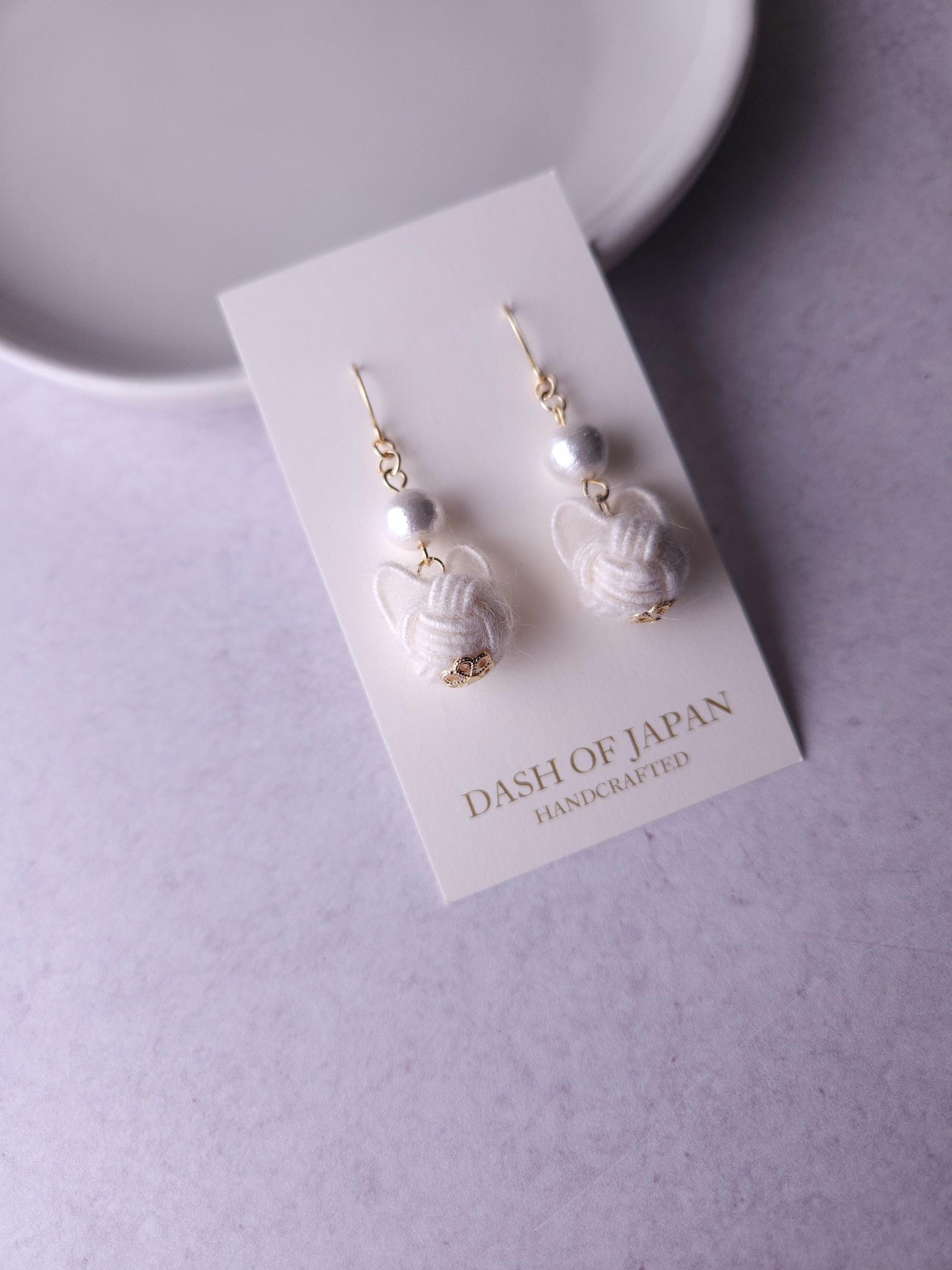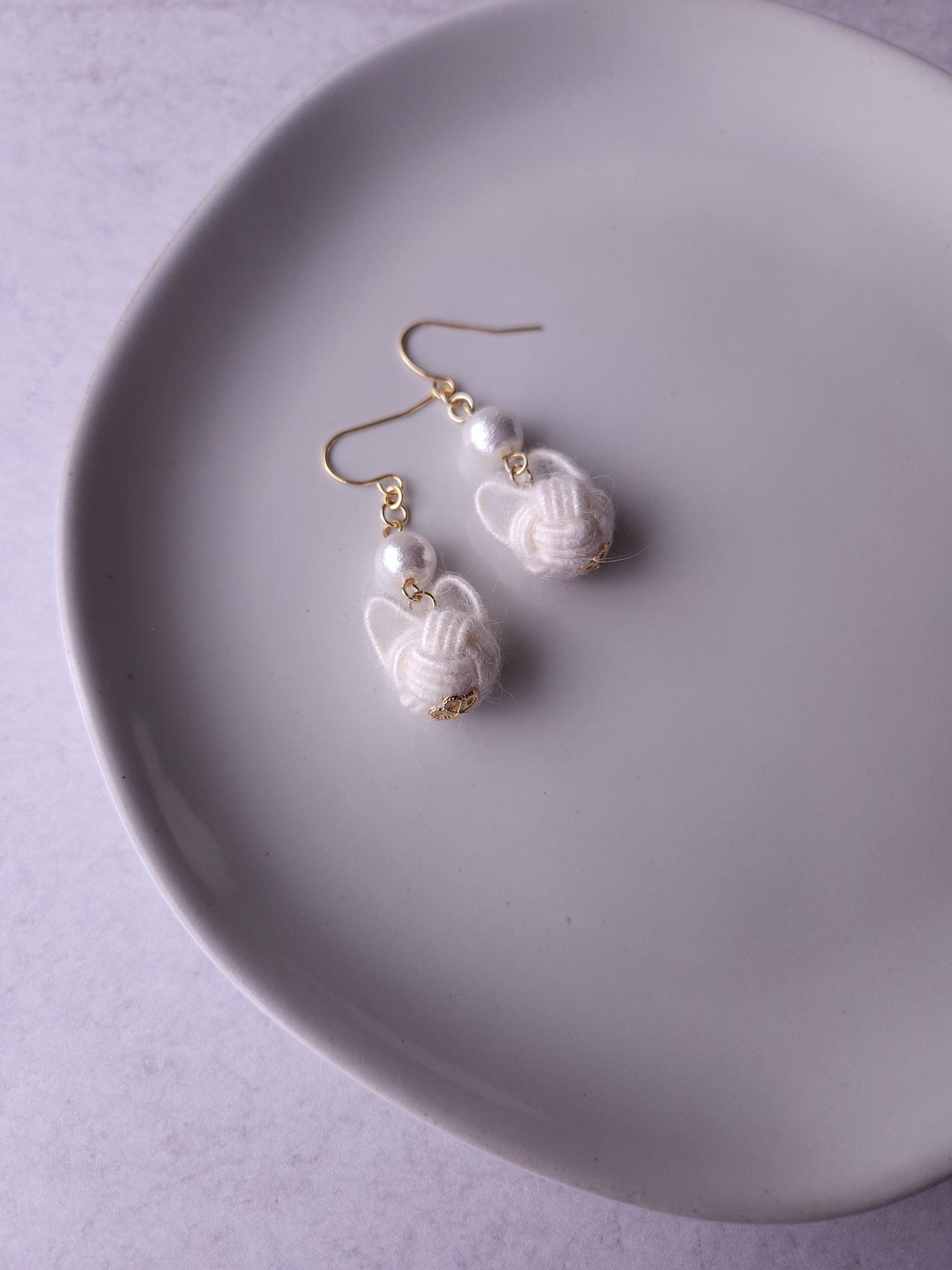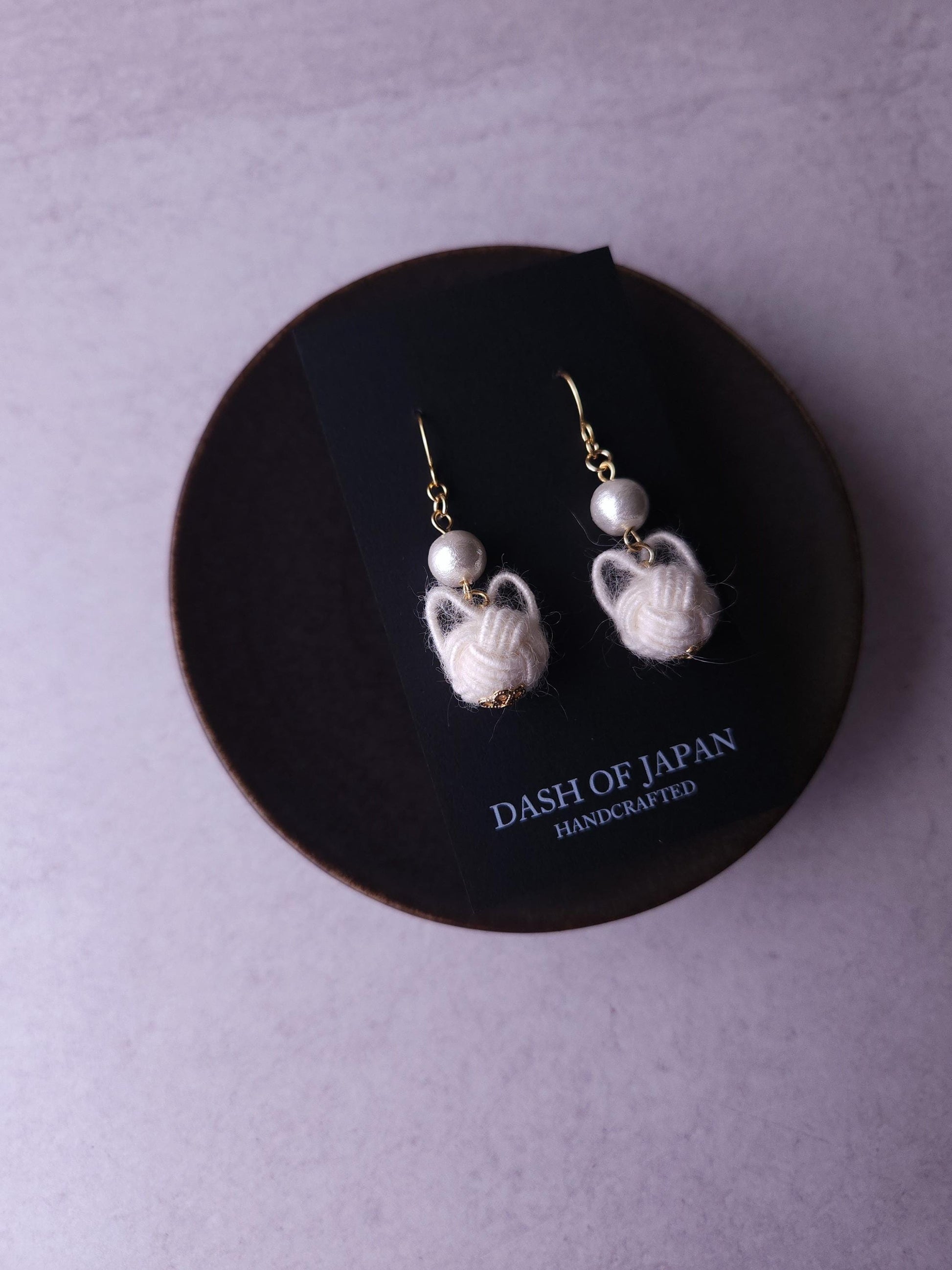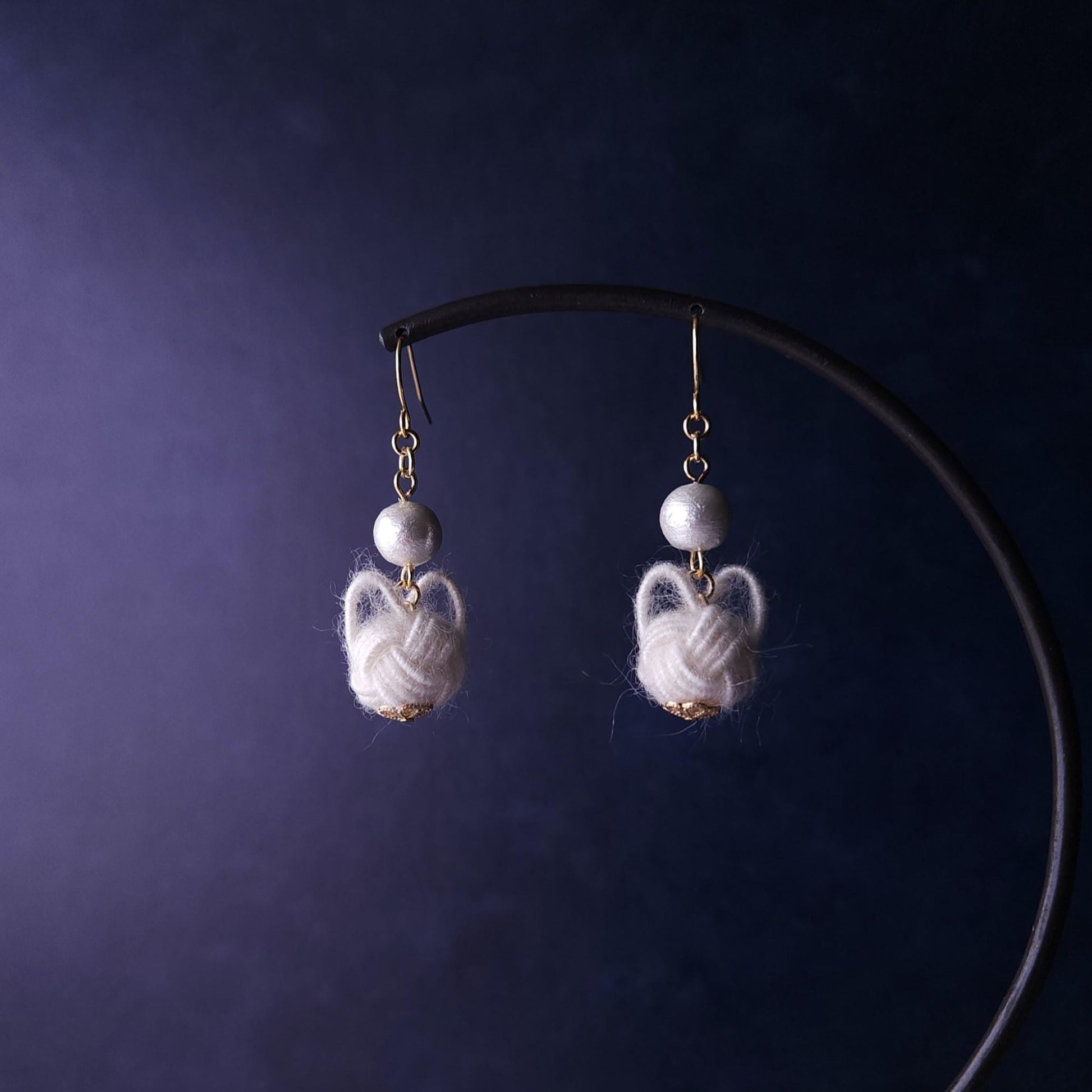 Handcrafted with a unique Mizuhiki cord that resembles yarn, make soft and fluffy cats. The adorable cats are elegantly paired with cotton pearl beads (Compressed Cotton beads). Very lightweight and comfortable to wear all day long.