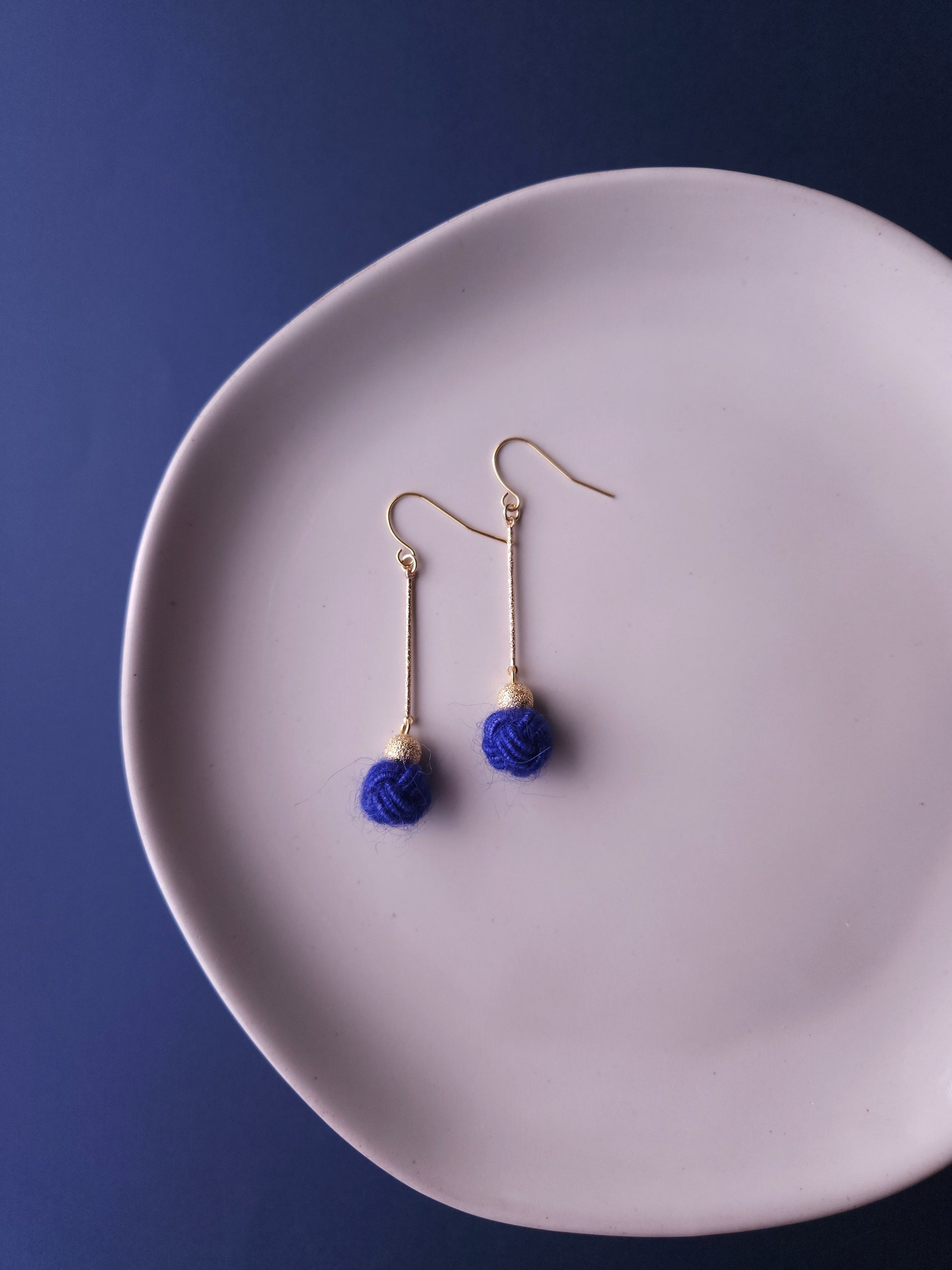 These earrings are meticulously crafted with unique Mizuhiki used with Mohair.