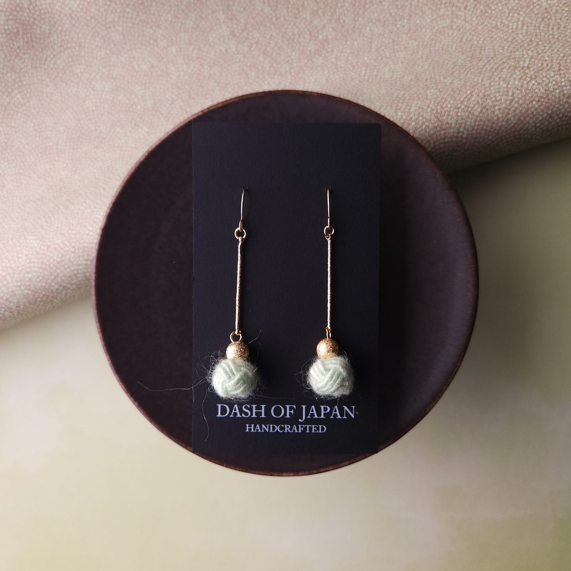 These earrings are meticulously crafted with unique Mizuhiki used with Mohair.