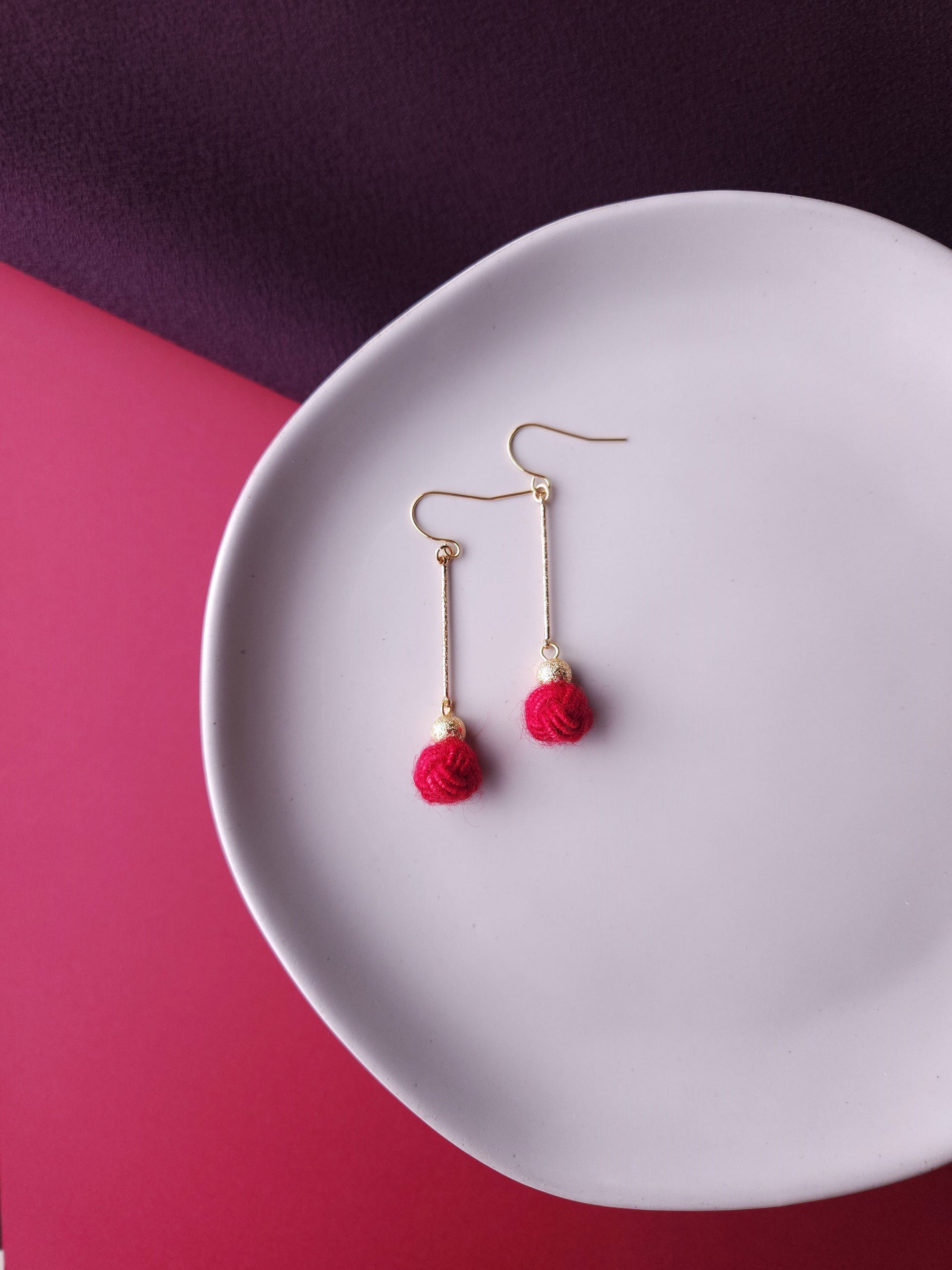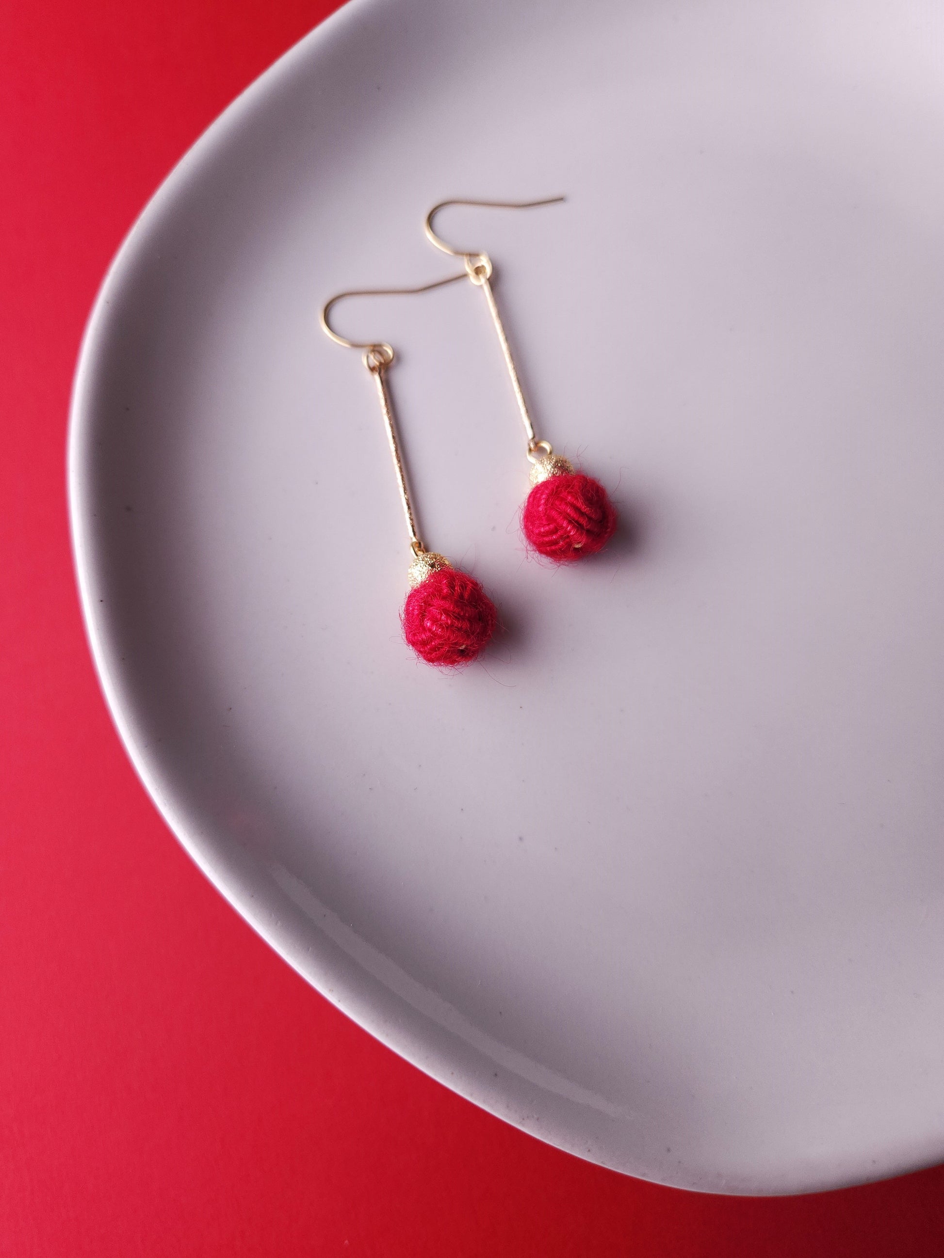 The soft, fluffy texture of Mohair resembles a yarn ball, giving these earrings a charming and intriguing appearance.