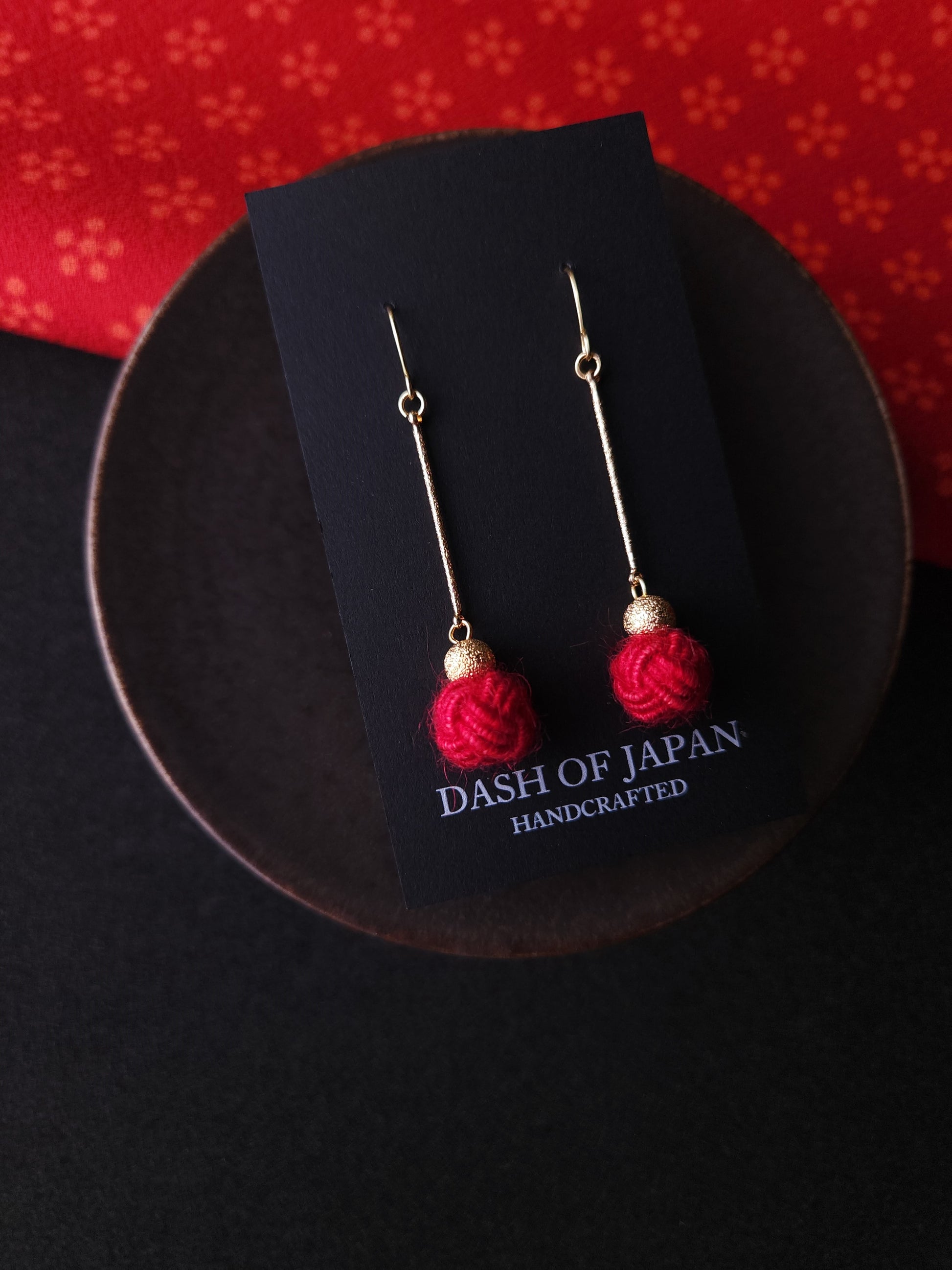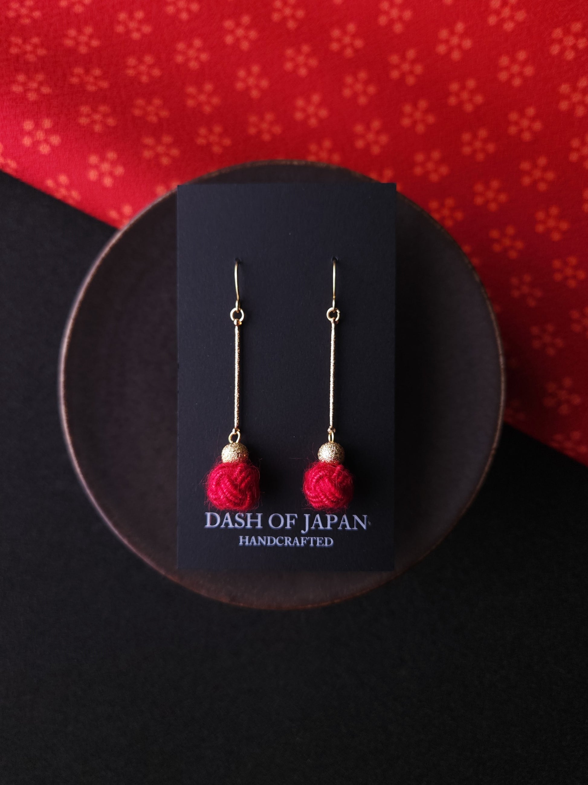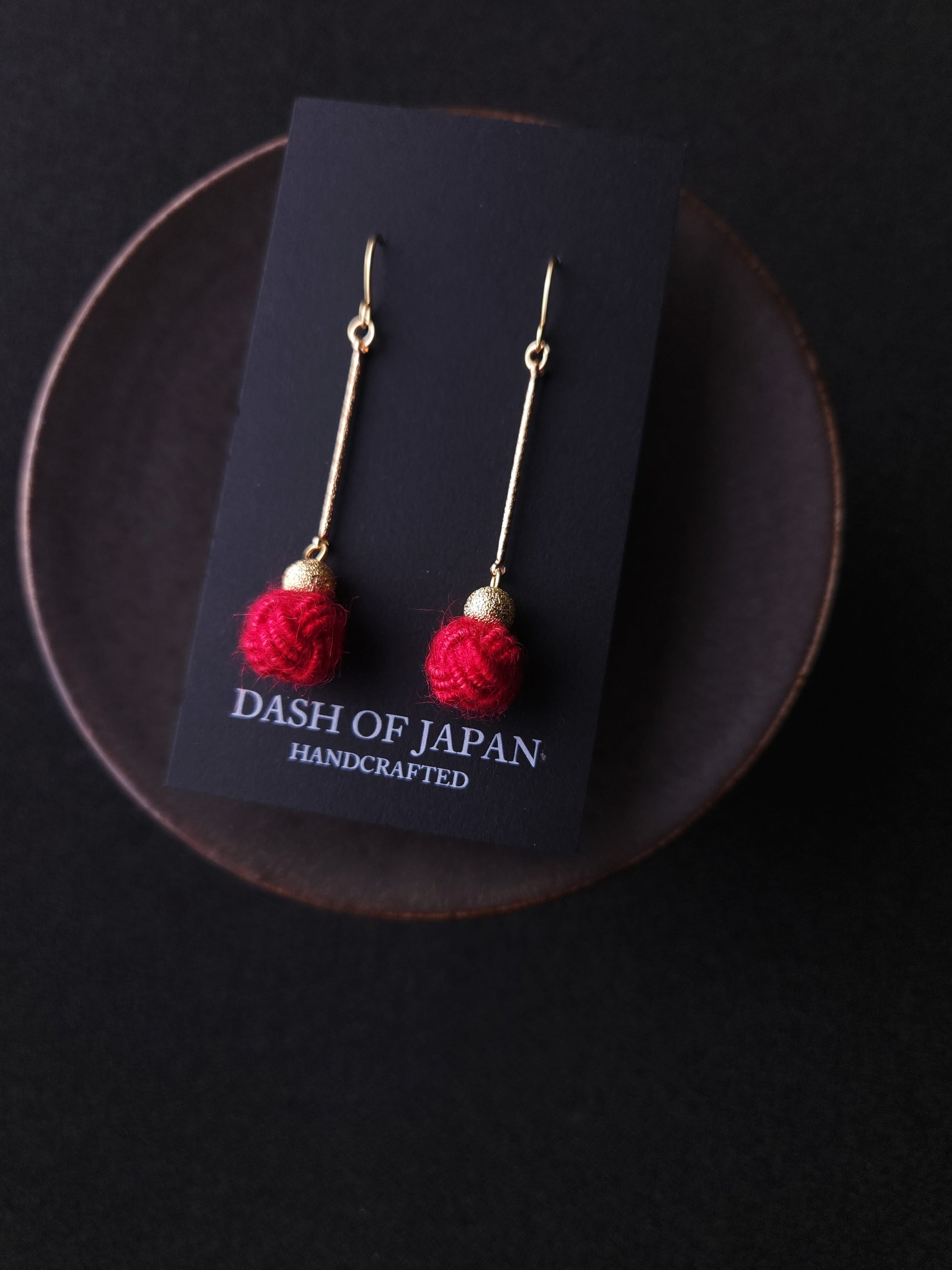 These earrings are meticulously crafted with unique Mizuhiki used with Mohair.