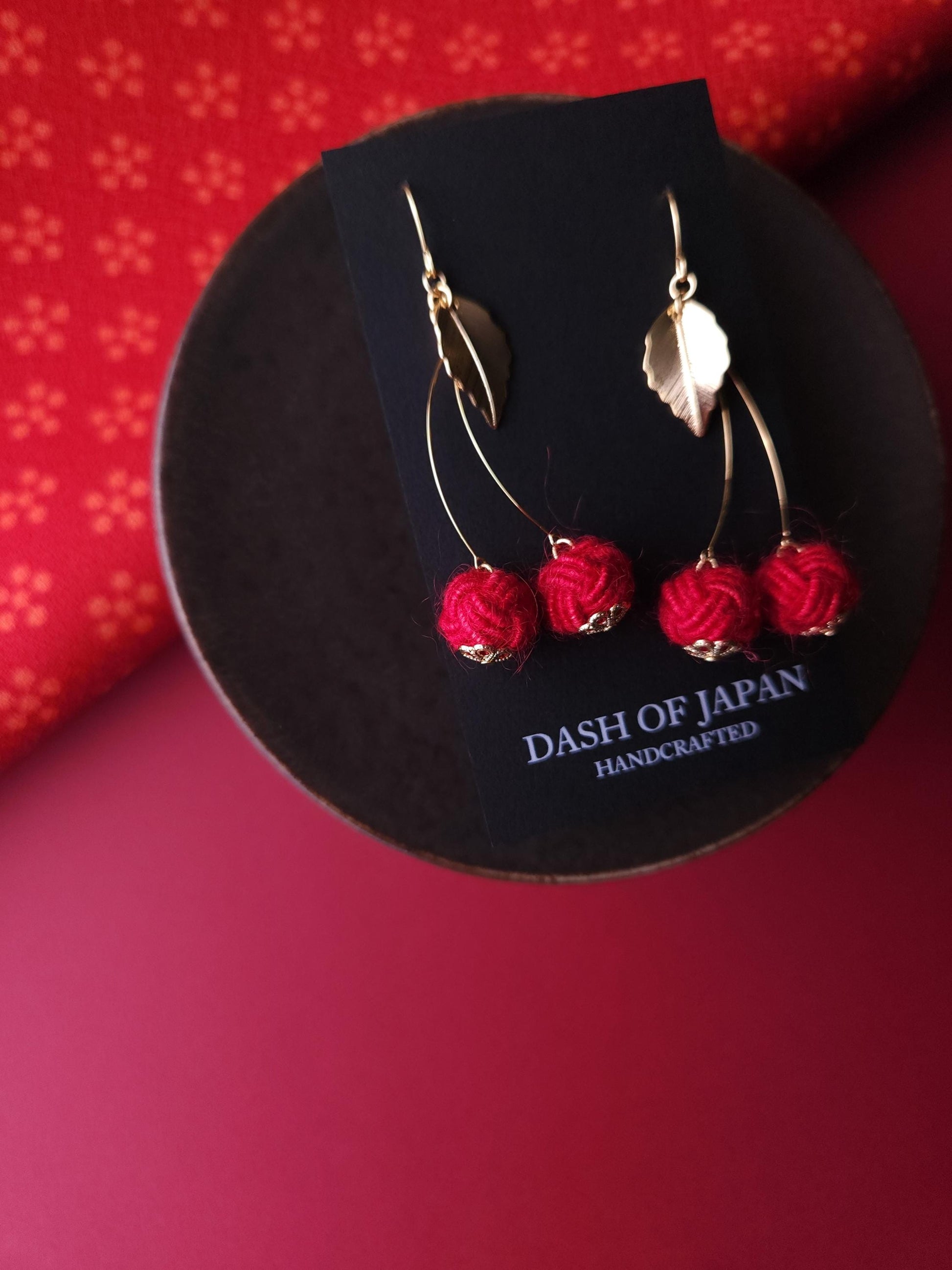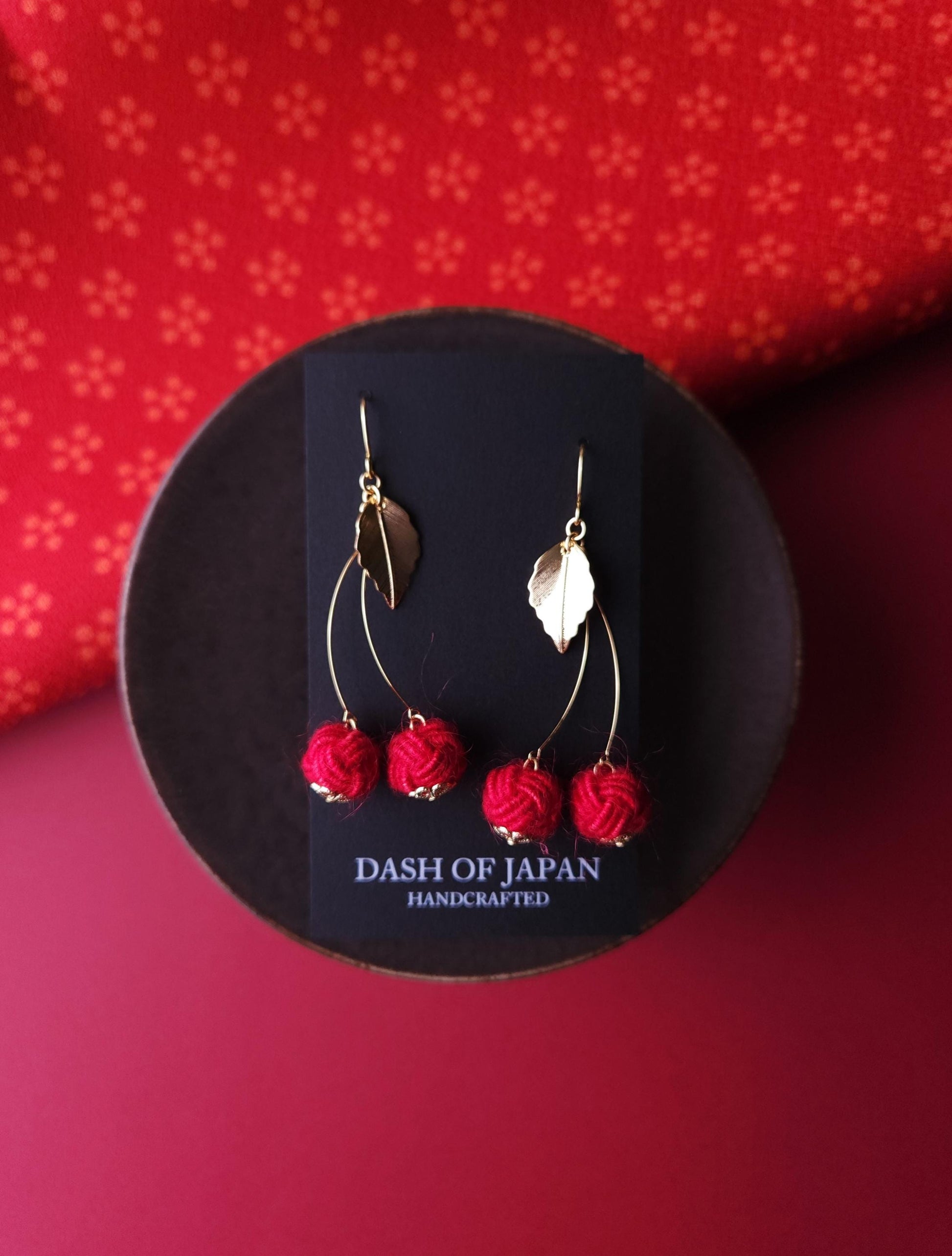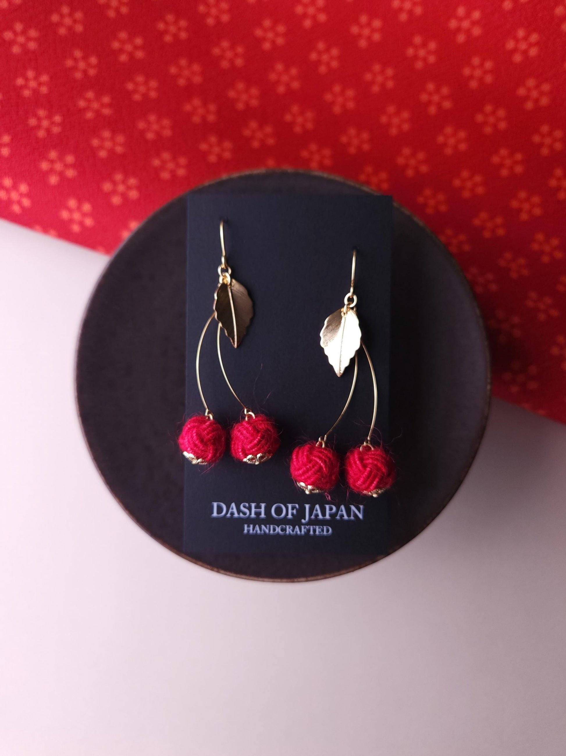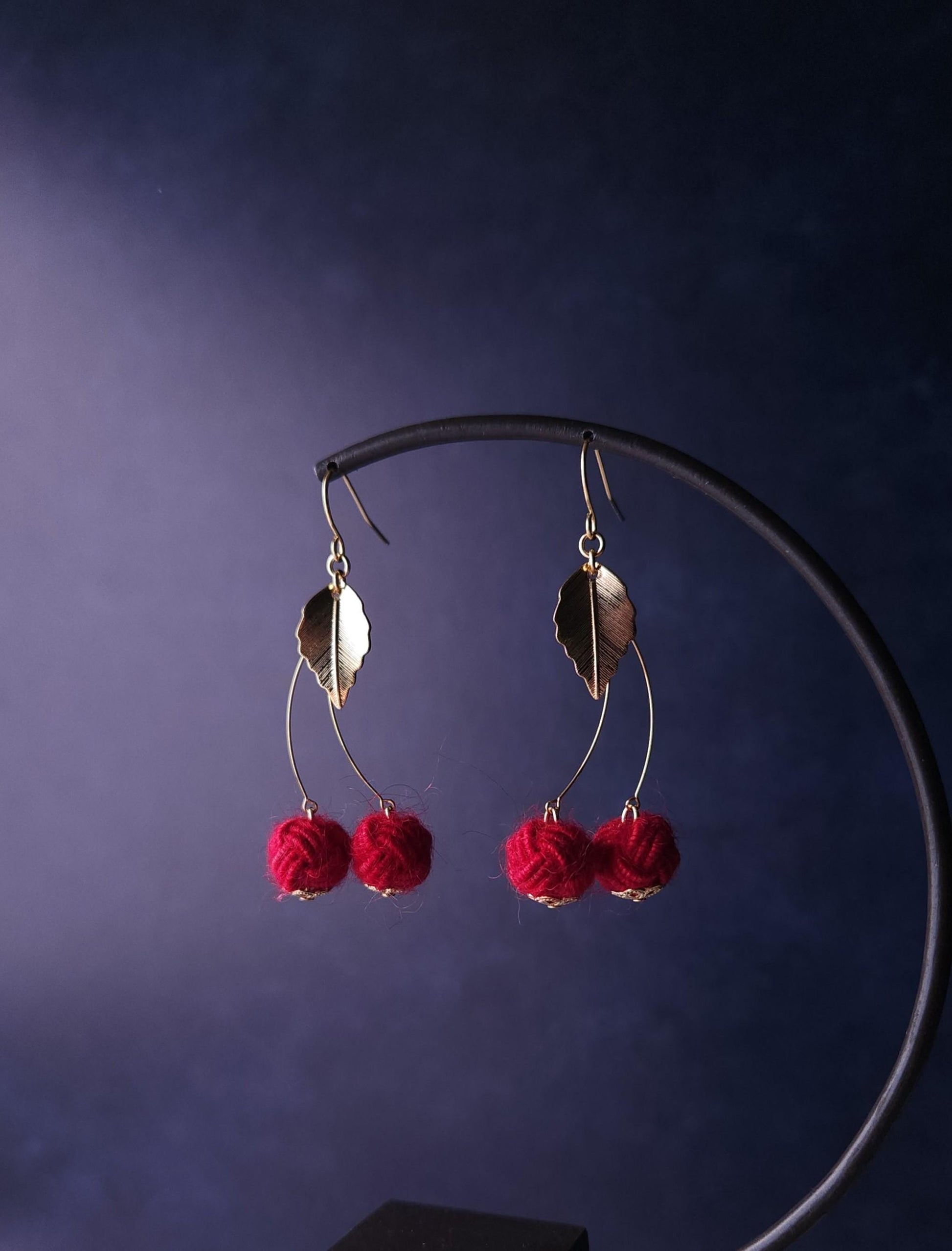 A sweet little nod to nature-these cherry-inspired earrings feature fuzzy mohair yarn "fruits" paired with delicate gold leaf charms.