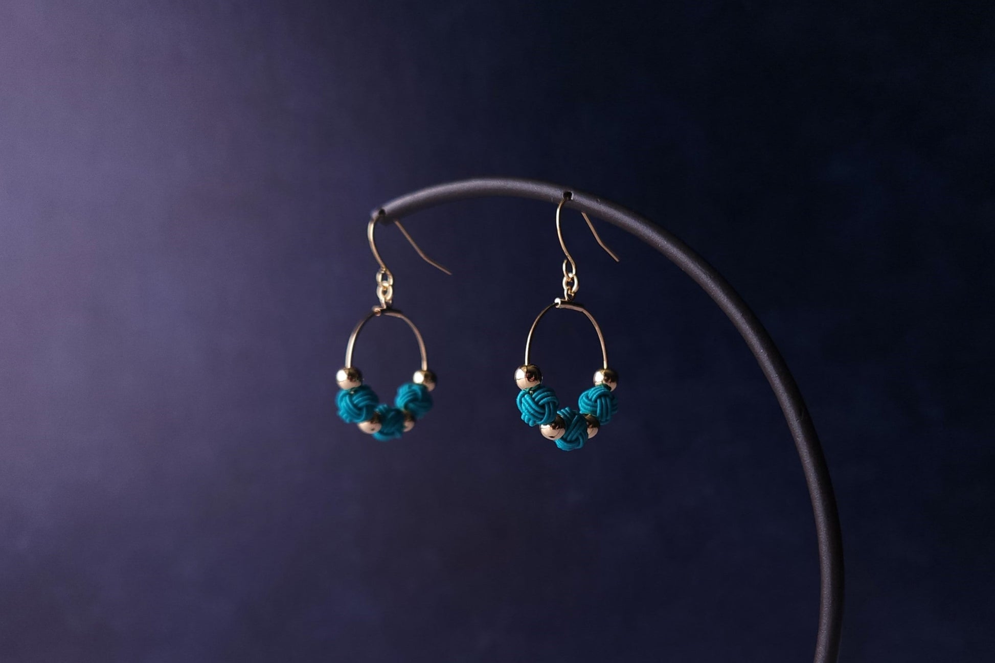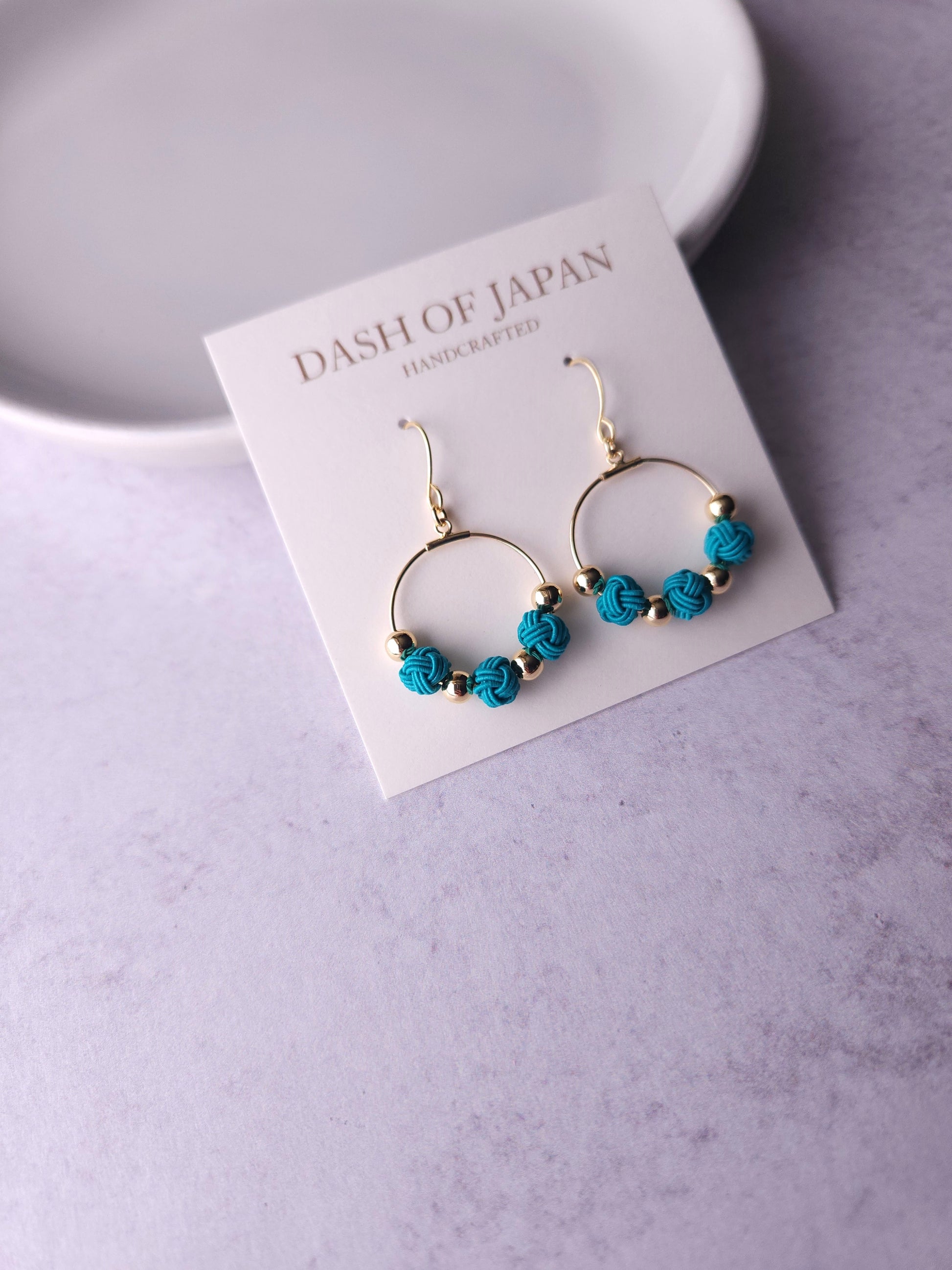Each tiny knots are carefully handwoven with thin type of Mizuhiki and matched with metal beads.