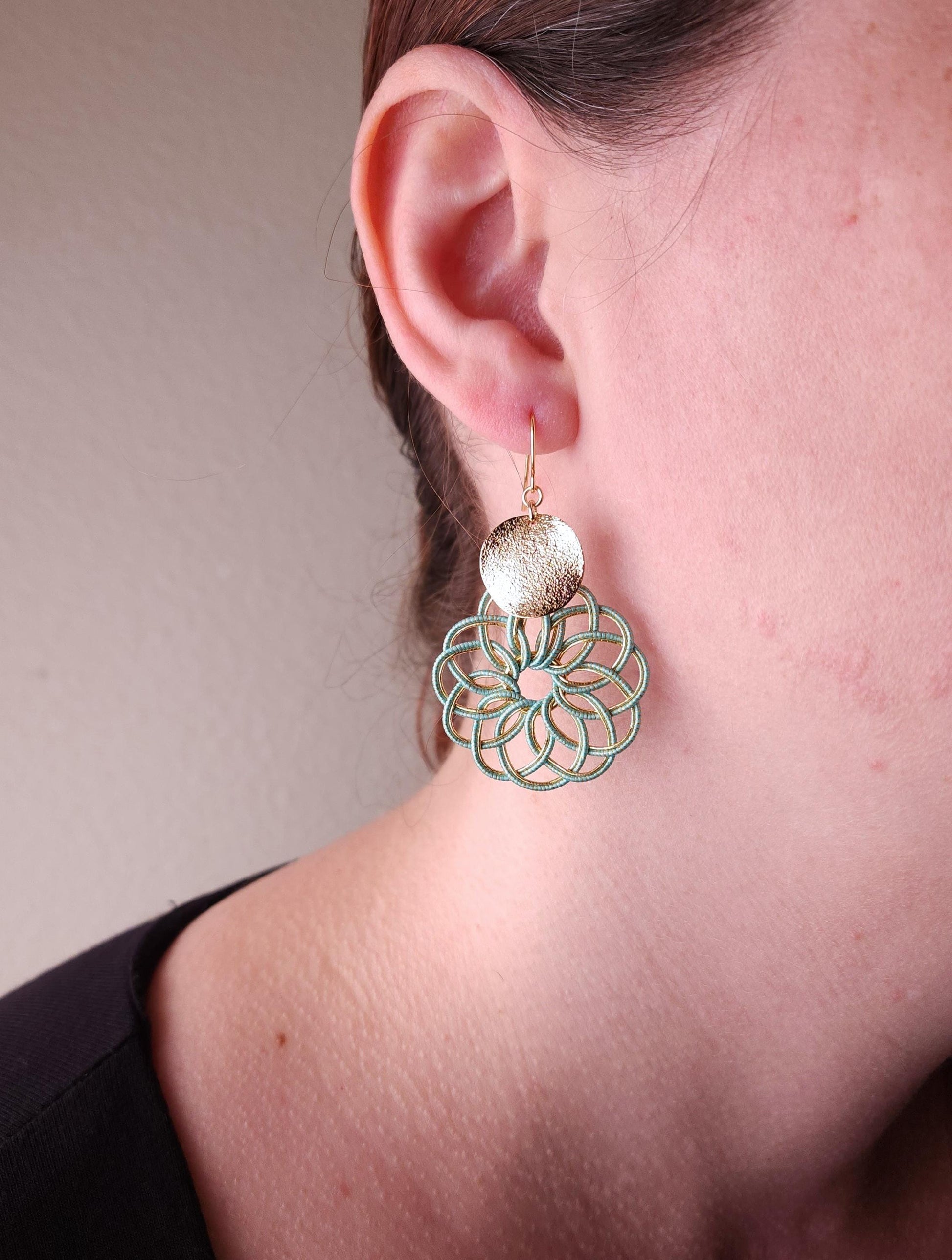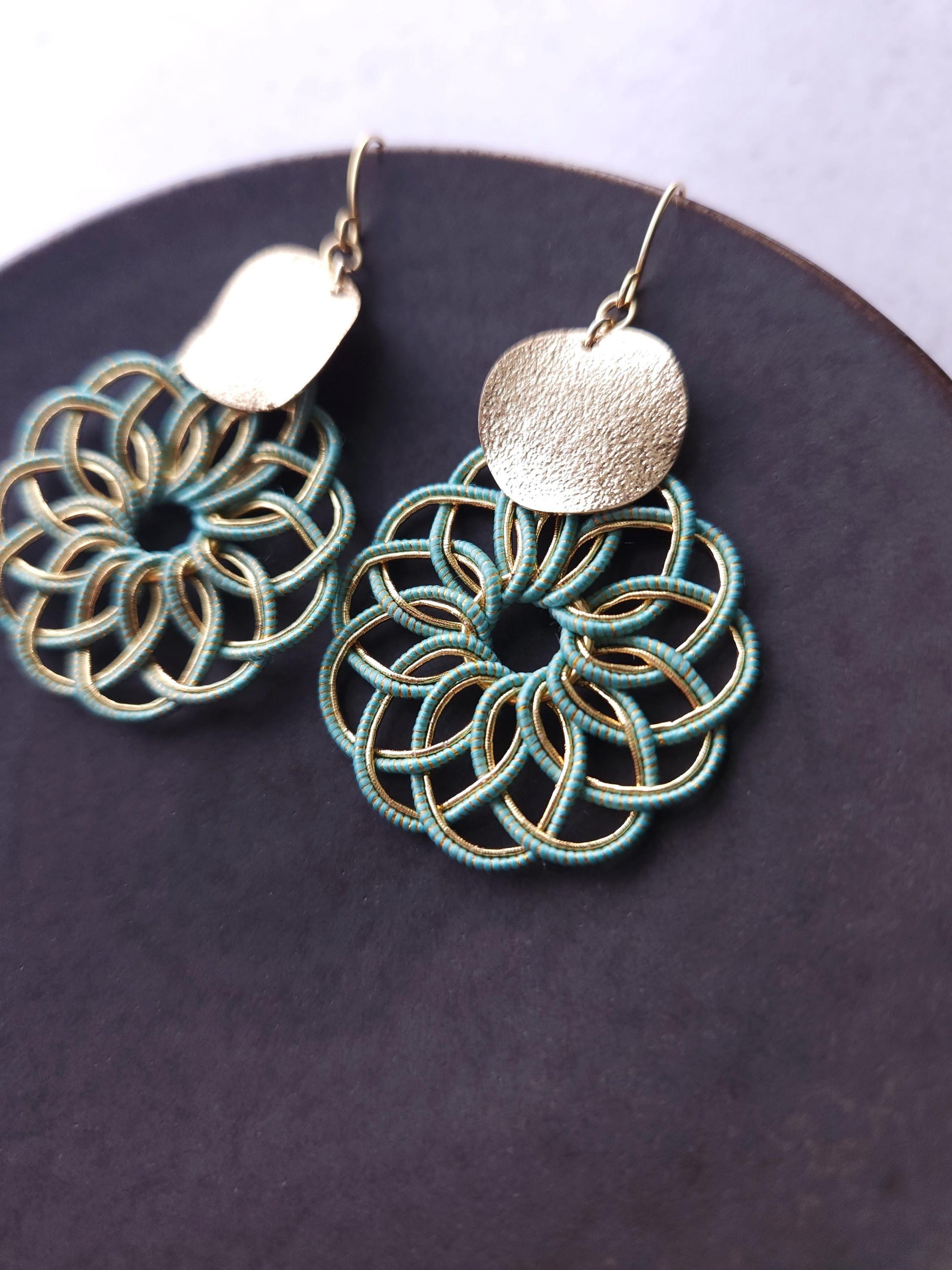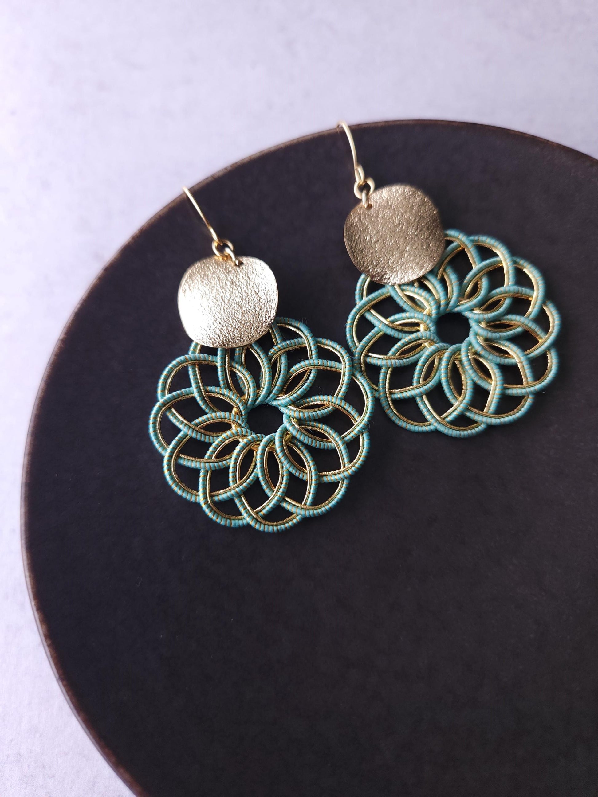 Each pieces are carefully handwoven into infinity Mandala knots with Mizuhiki and matched with textured gold-plated discs, enhancing the lightweight yet eye-catching design. Perfect for special occasions or adding a unique flair to your everyday style, these earrings blend Japanese craftsmanship with contemporary elegance.