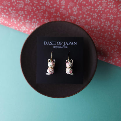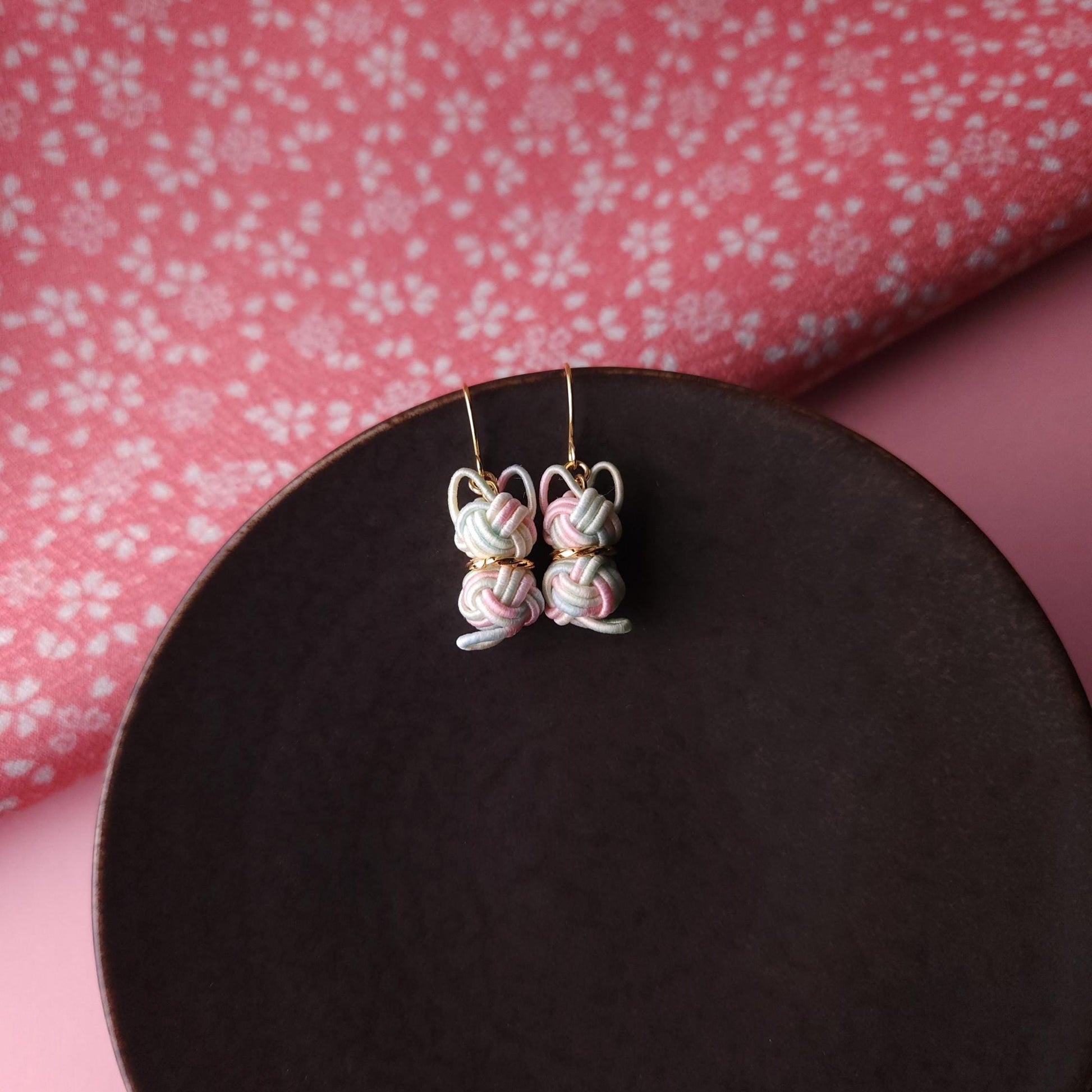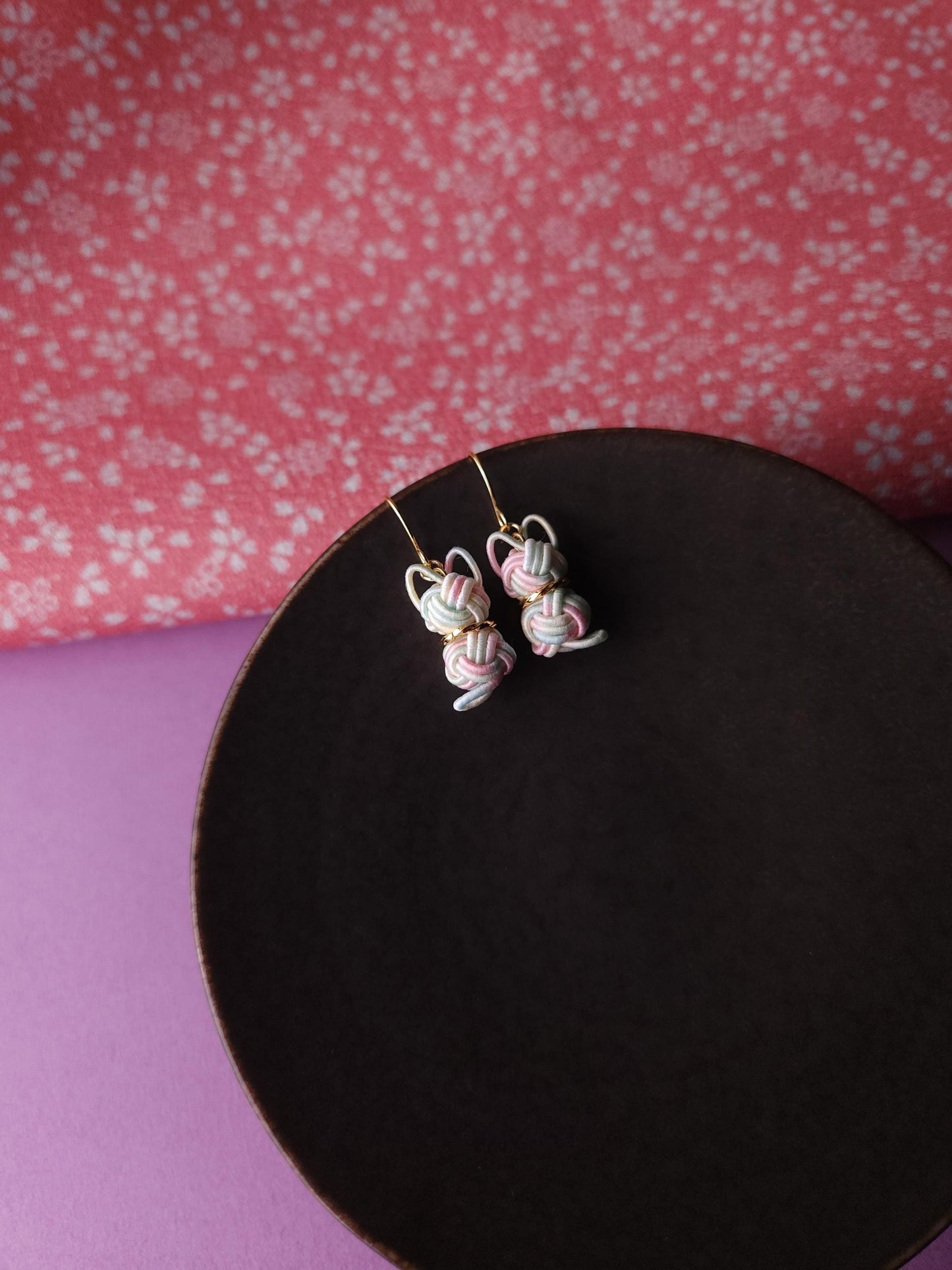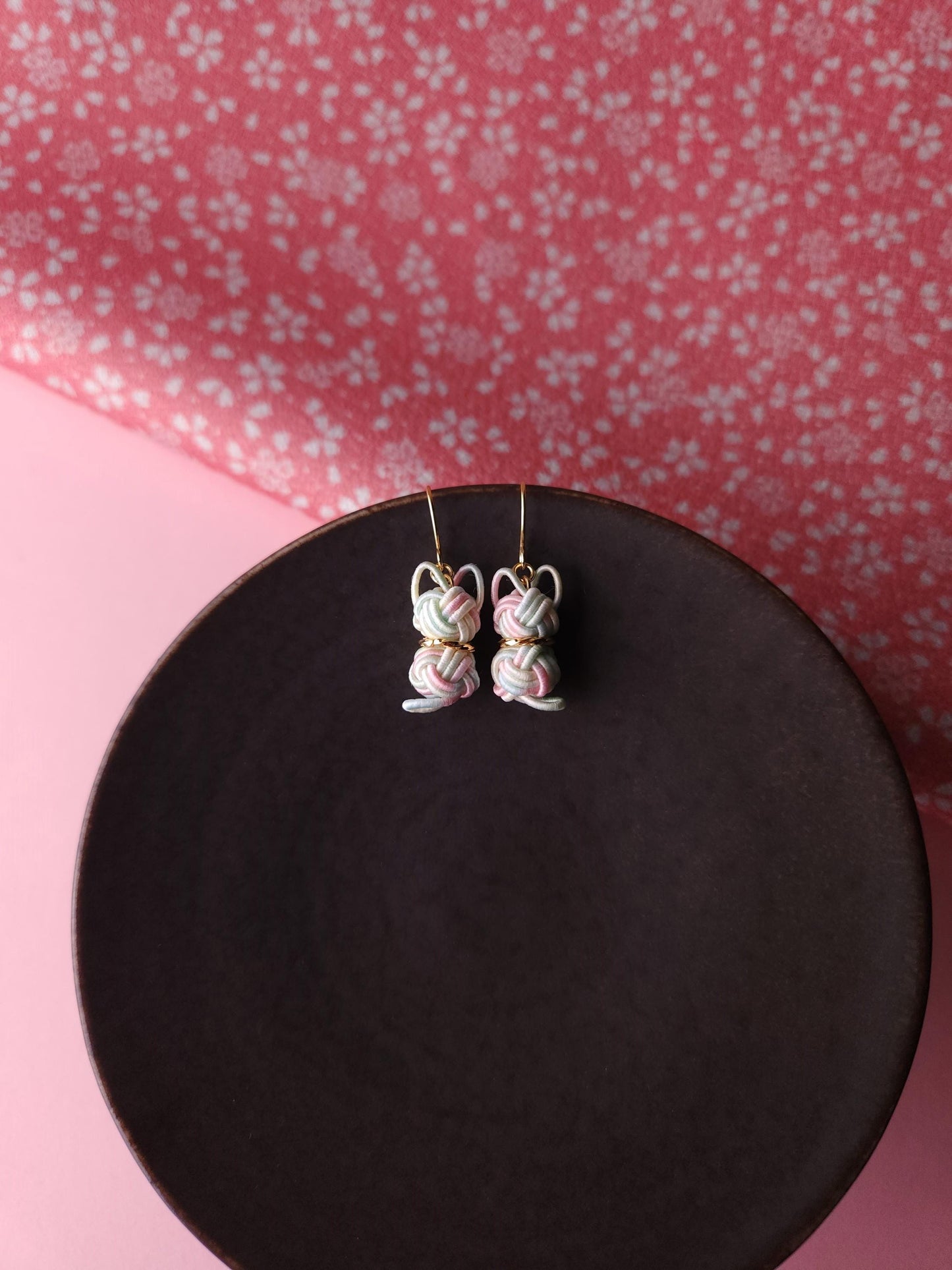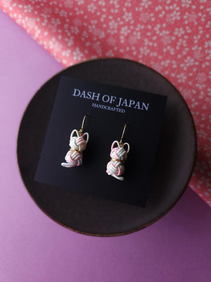 Charming Cat earrings made with Japanese Mizuhiki paper cord. Each delicate feline silhouette is expertly formed using the ancient art of Japanese Mizuhiki paper cord.