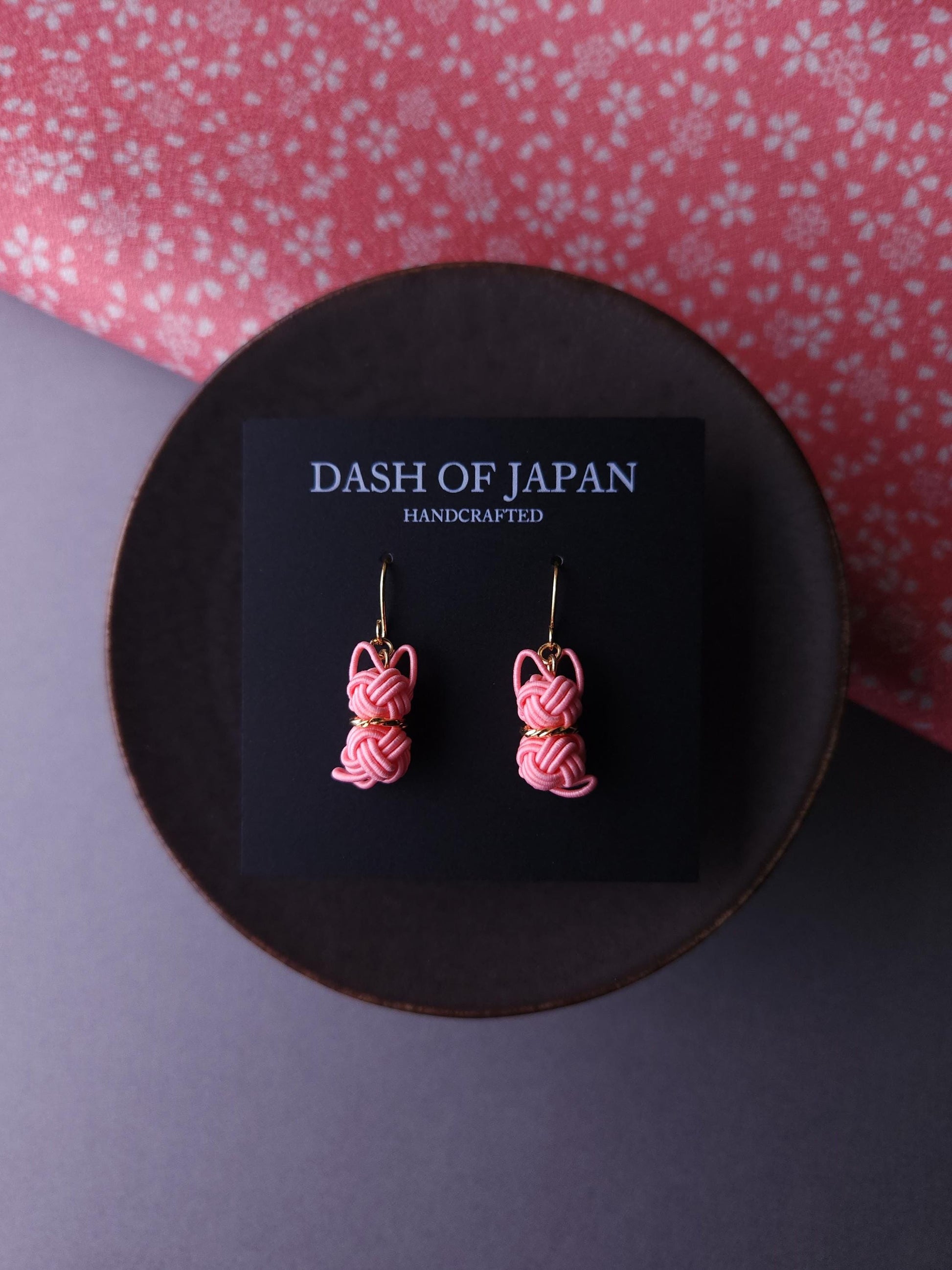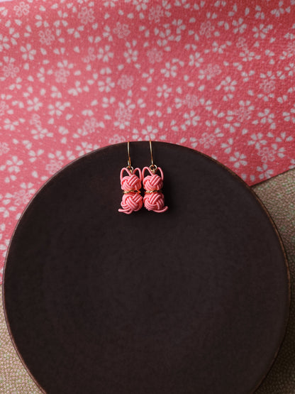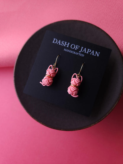 Charming Cat earrings made with Japanese Mizuhiki paper cord. Each delicate feline silhouette is expertly formed using the ancient art of Japanese Mizuhiki paper cord.