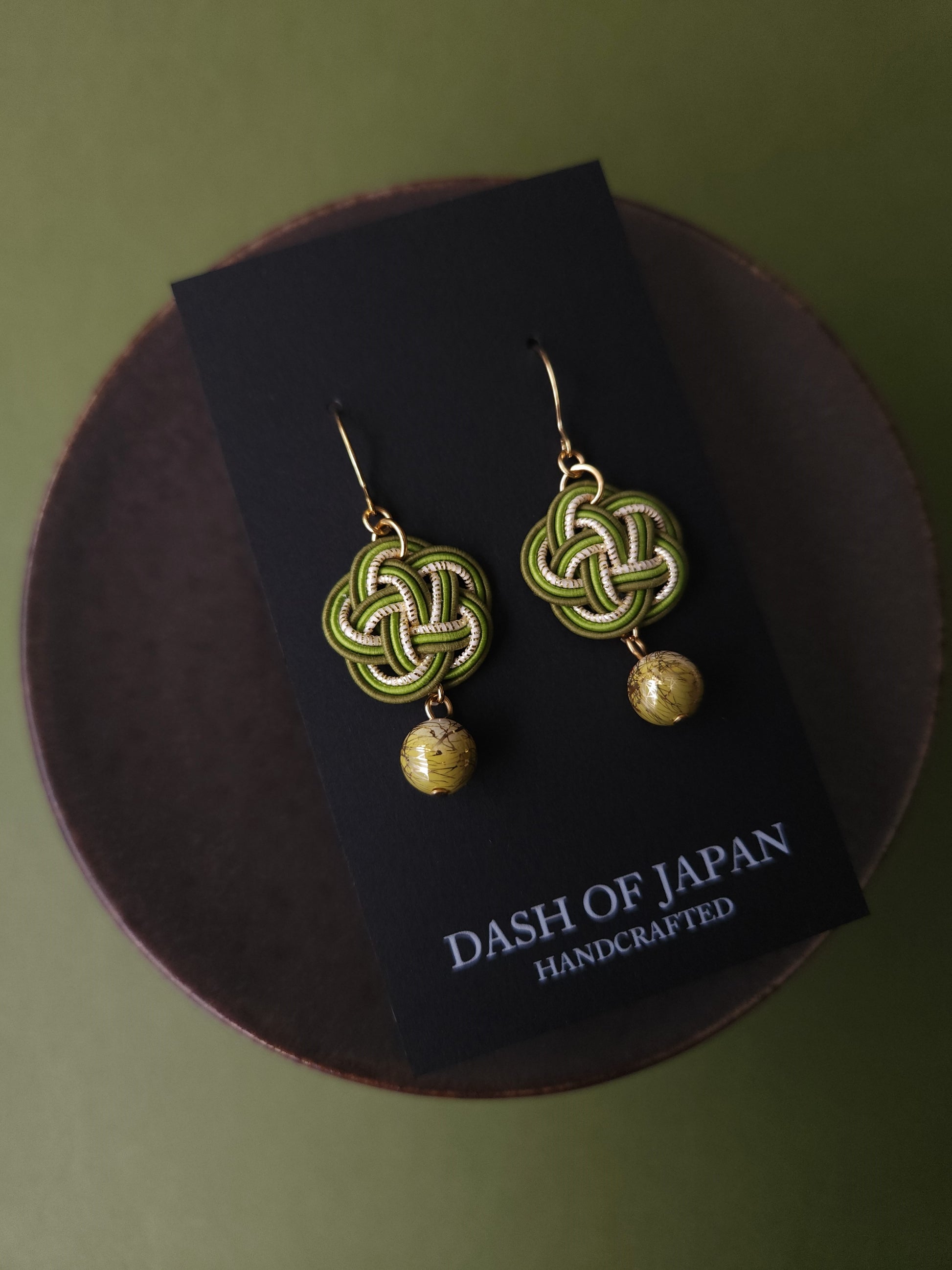 These earrings are handwoven using a paper cord called Mizuhiki and matched with Japanese Cotton Pearls ( Compressed Cotton Pearls).