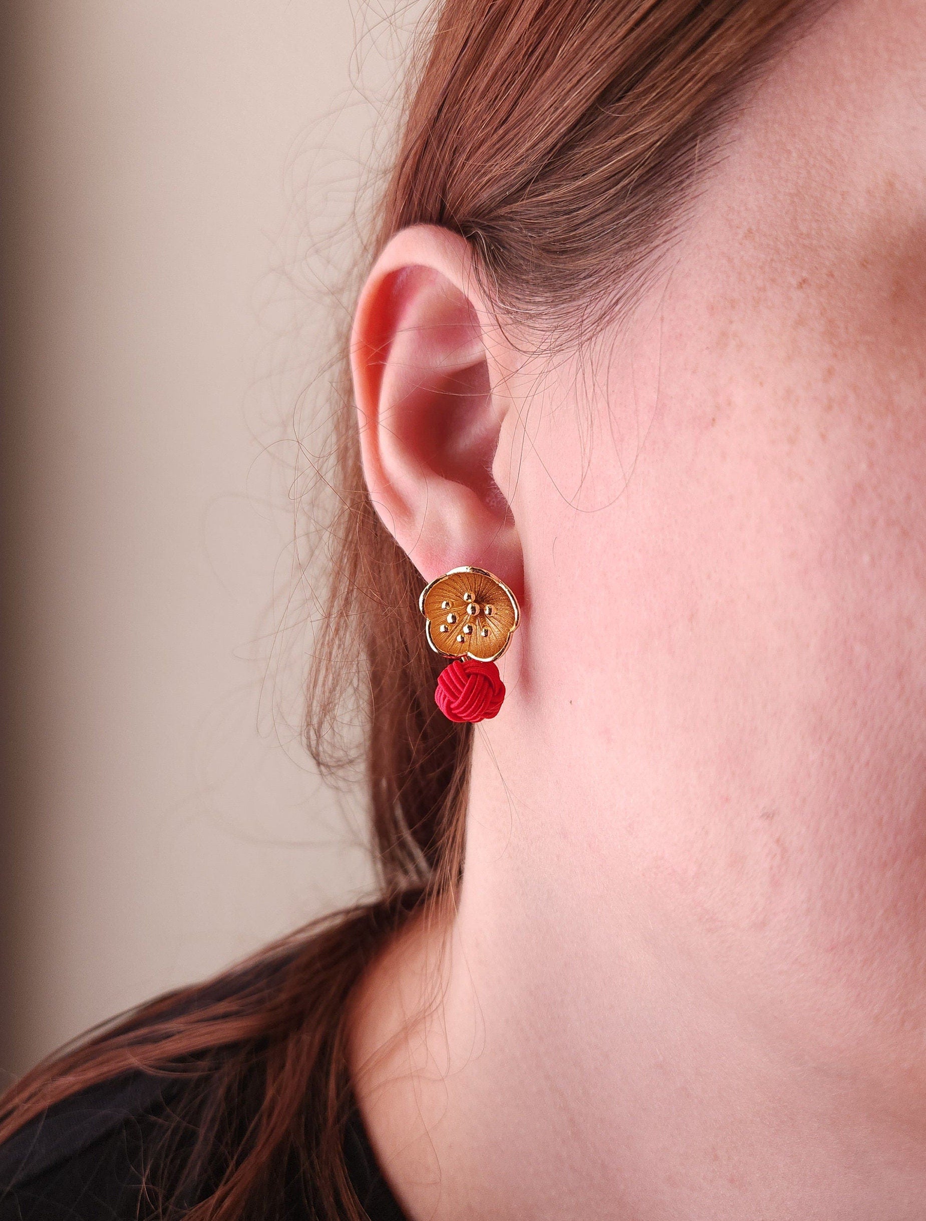 These earrings are made of Japanese paper cord called Mizuhiki.