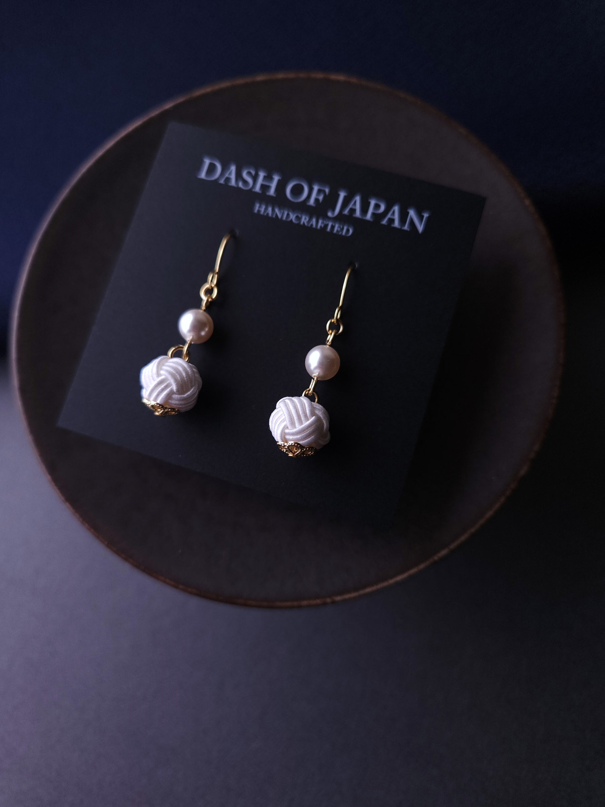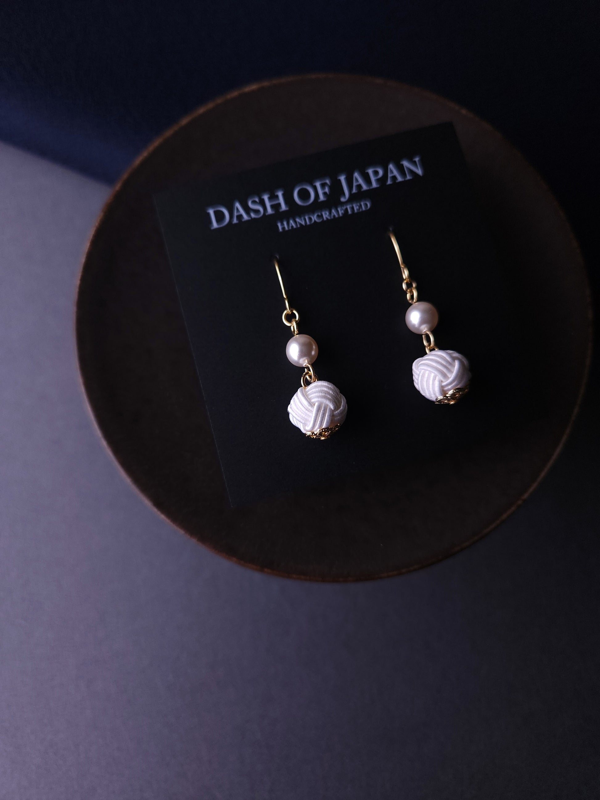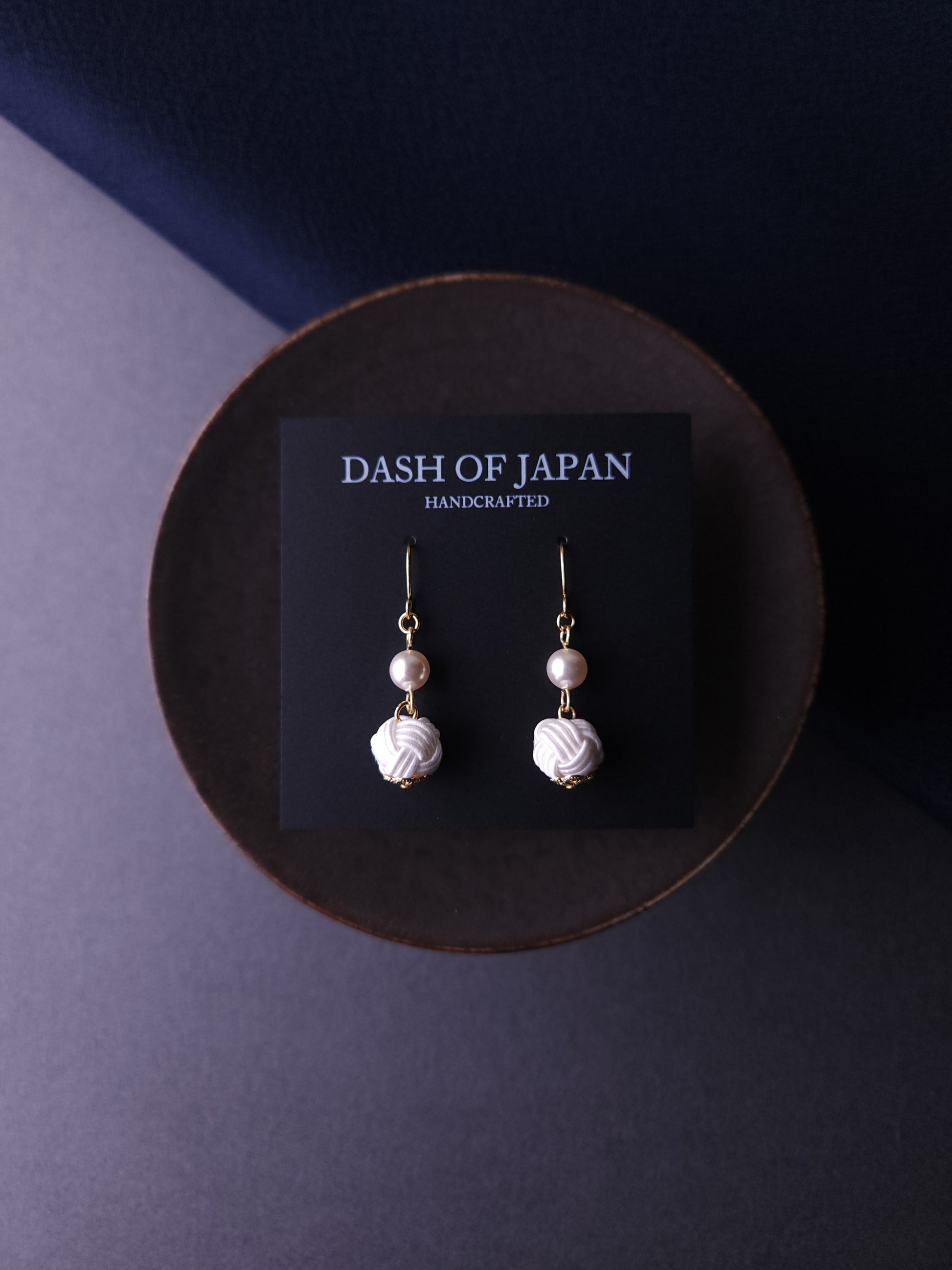 Each knots are meticulously handwoven with Mizuhiki and paired with a luminous Swarovski crystal pearl bead.