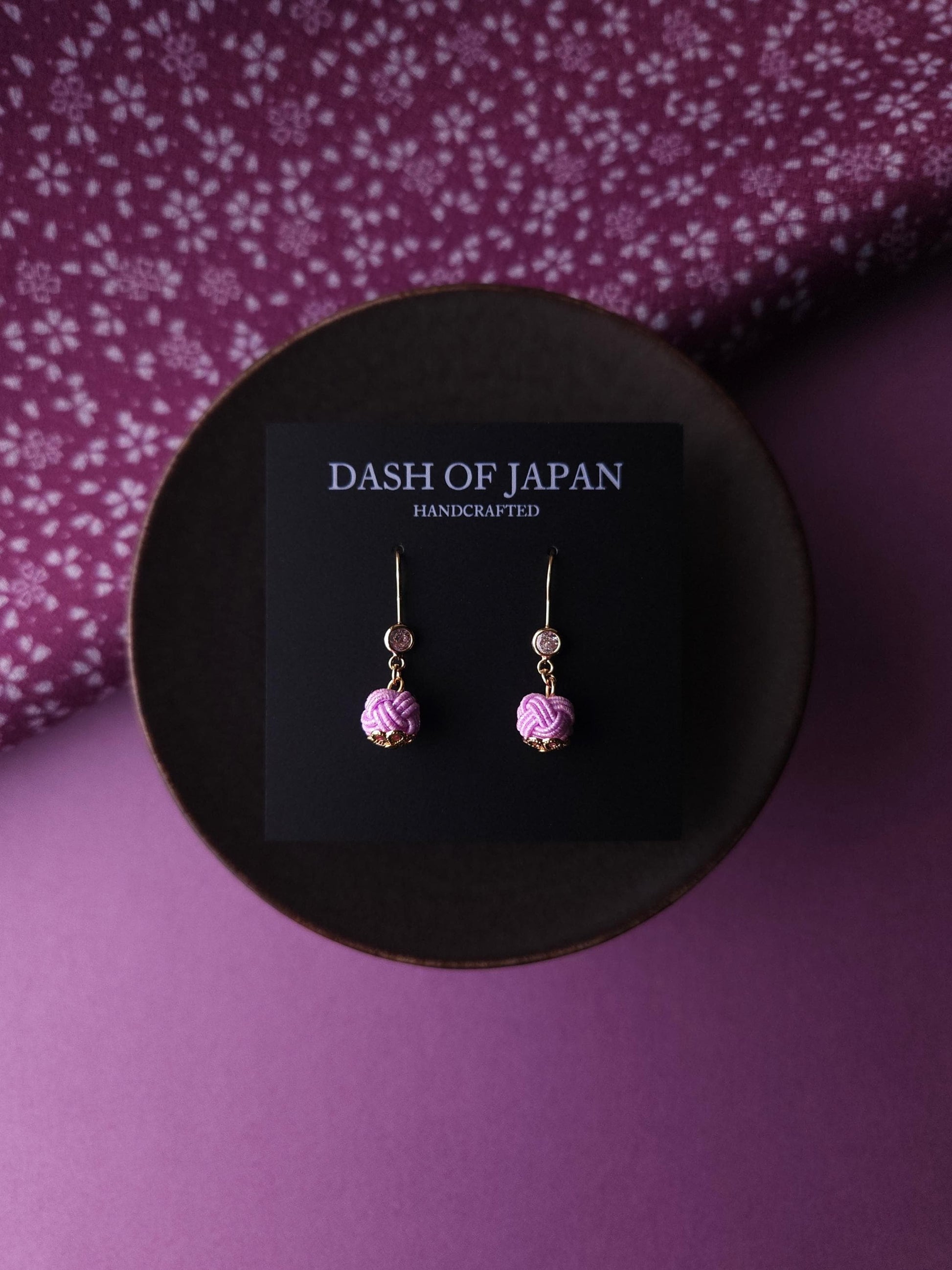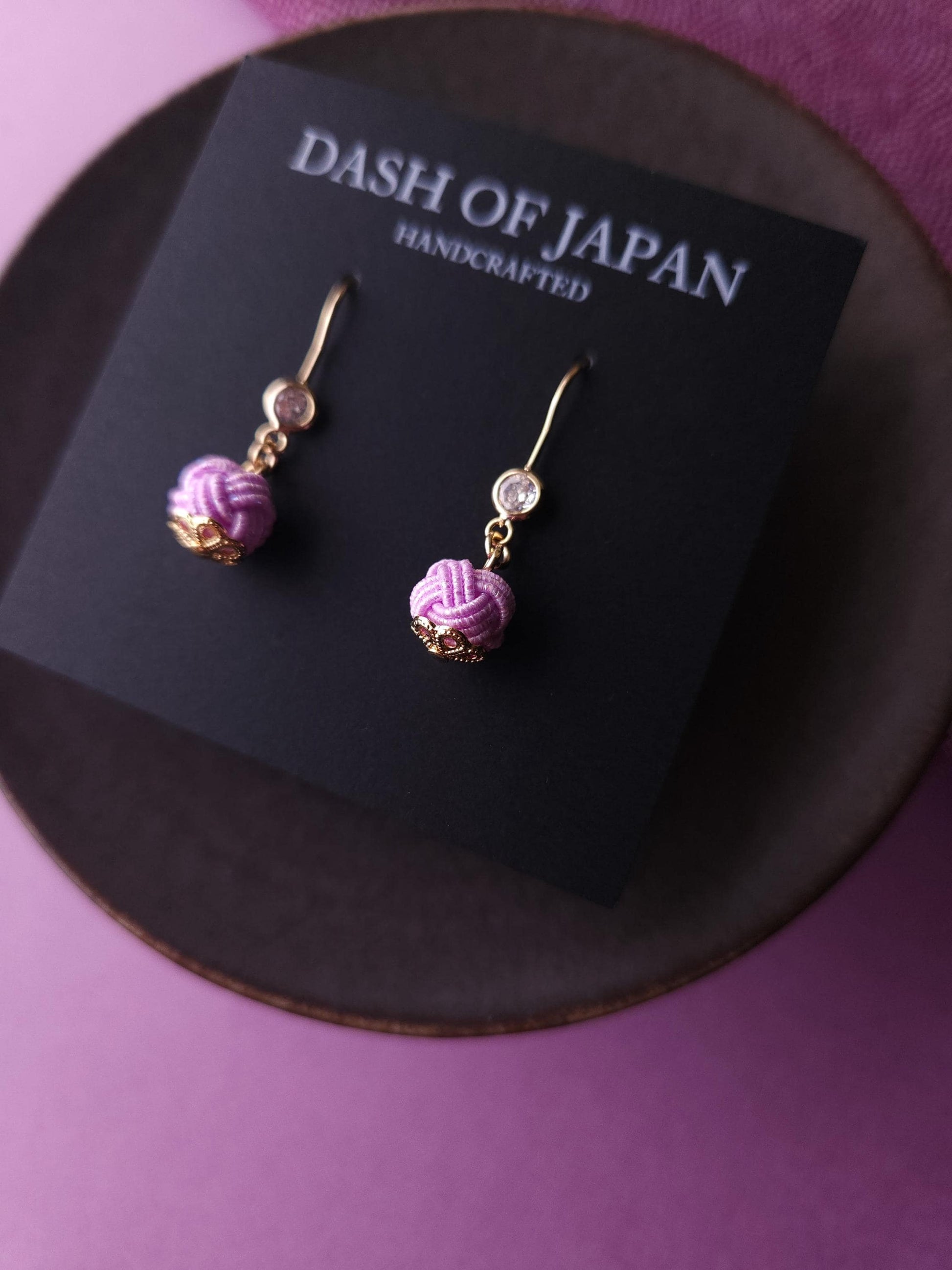 Each knots are meticulously handwoven with Japanese Mizuhiki. The shimmering gold-tone metal beautifully complements the intricate knotwork, creating a refined yet eye-catching design.