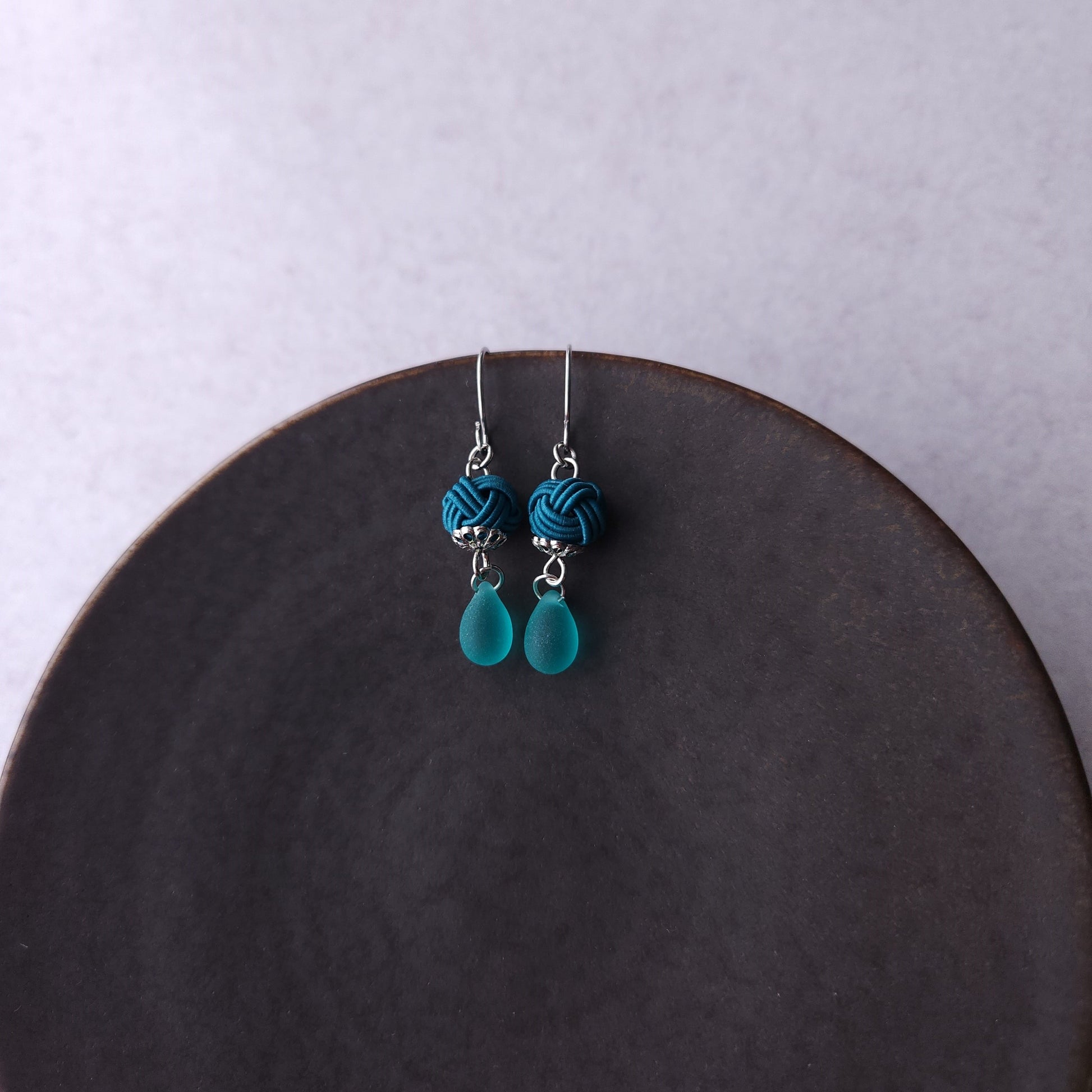 Each knots are meticulously handwoven with Mizuhiki and matched with Czech glass teardrop beads.